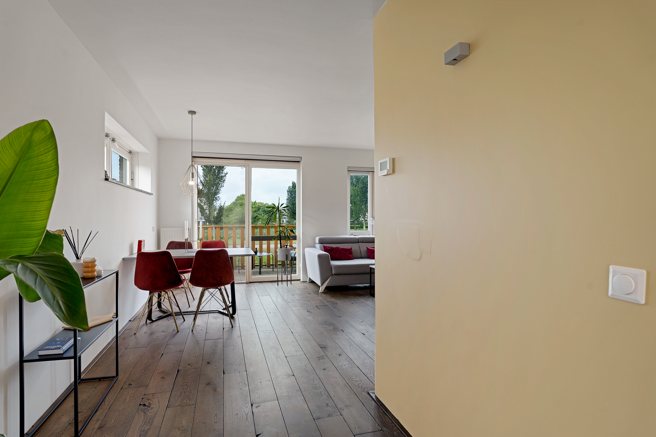 Modern eindappartement met twee woonlagen, balkon en parkeerplaats