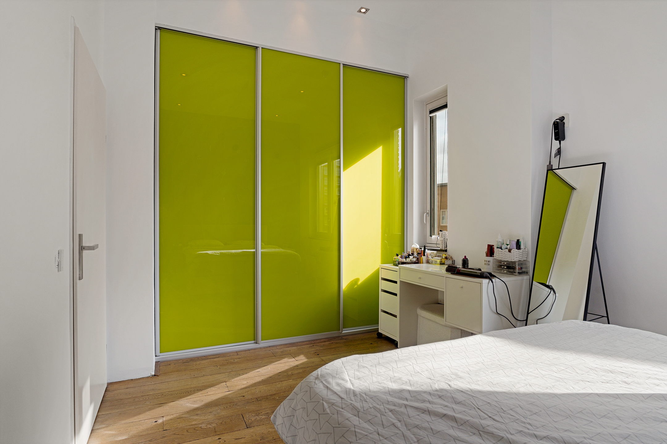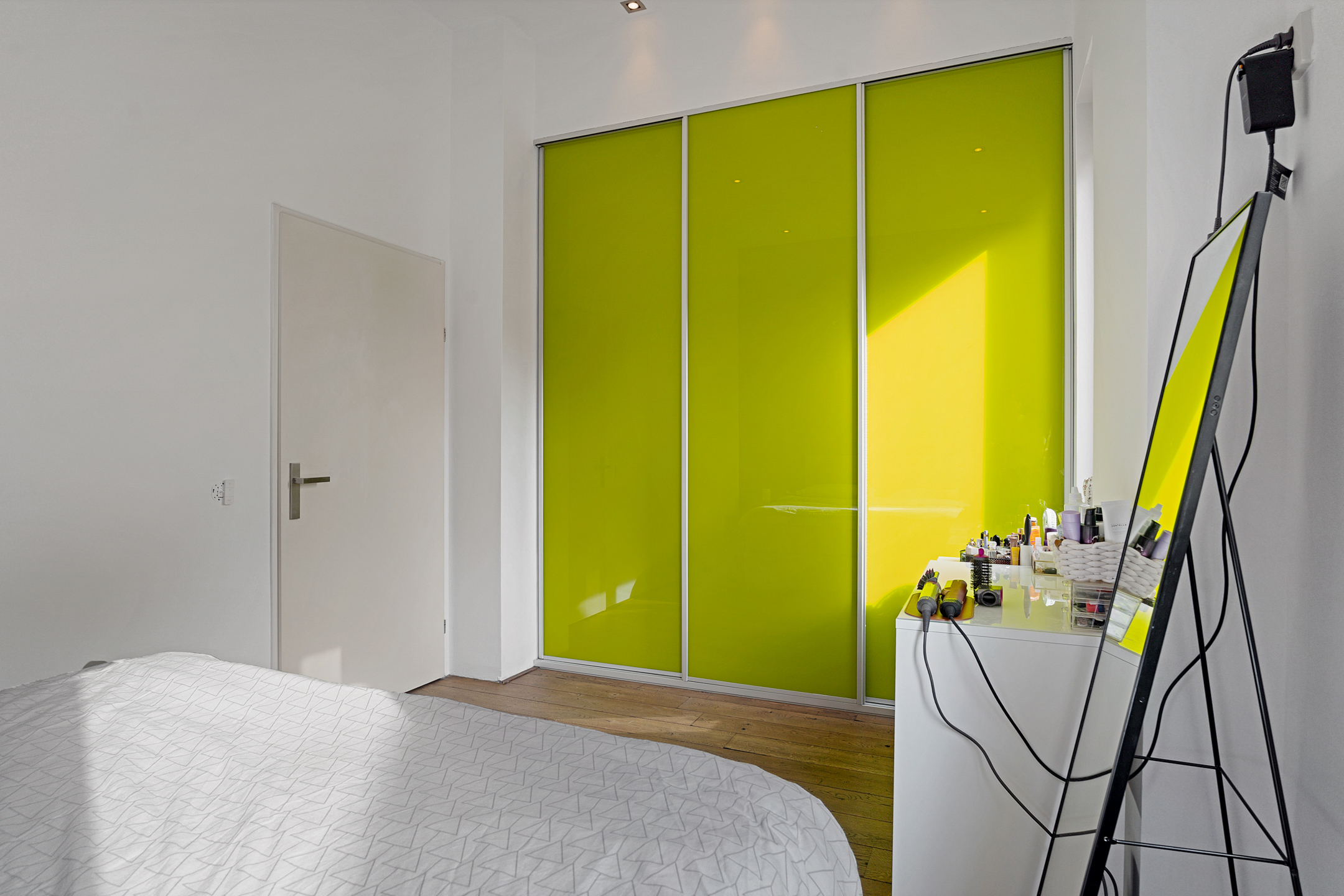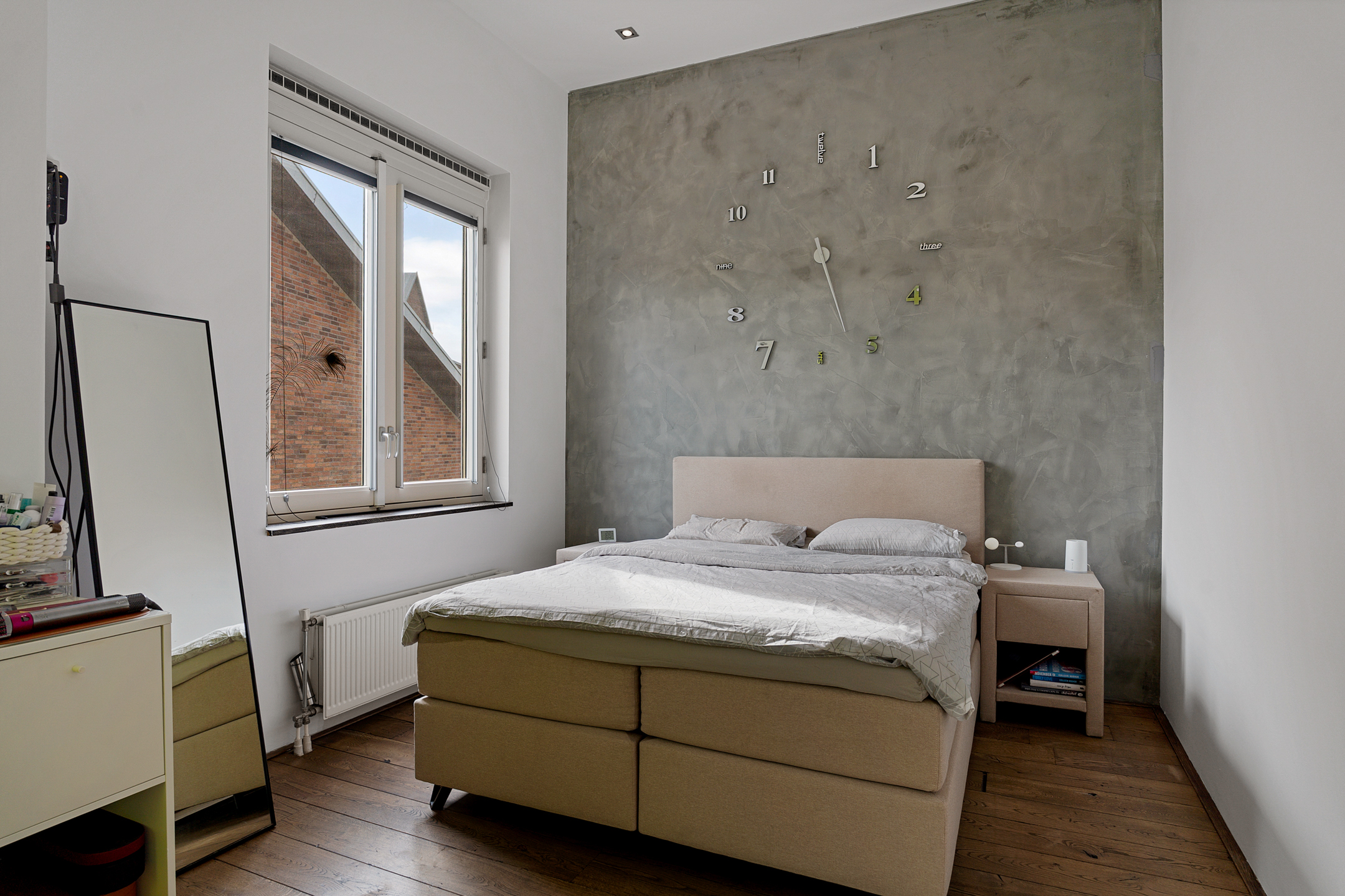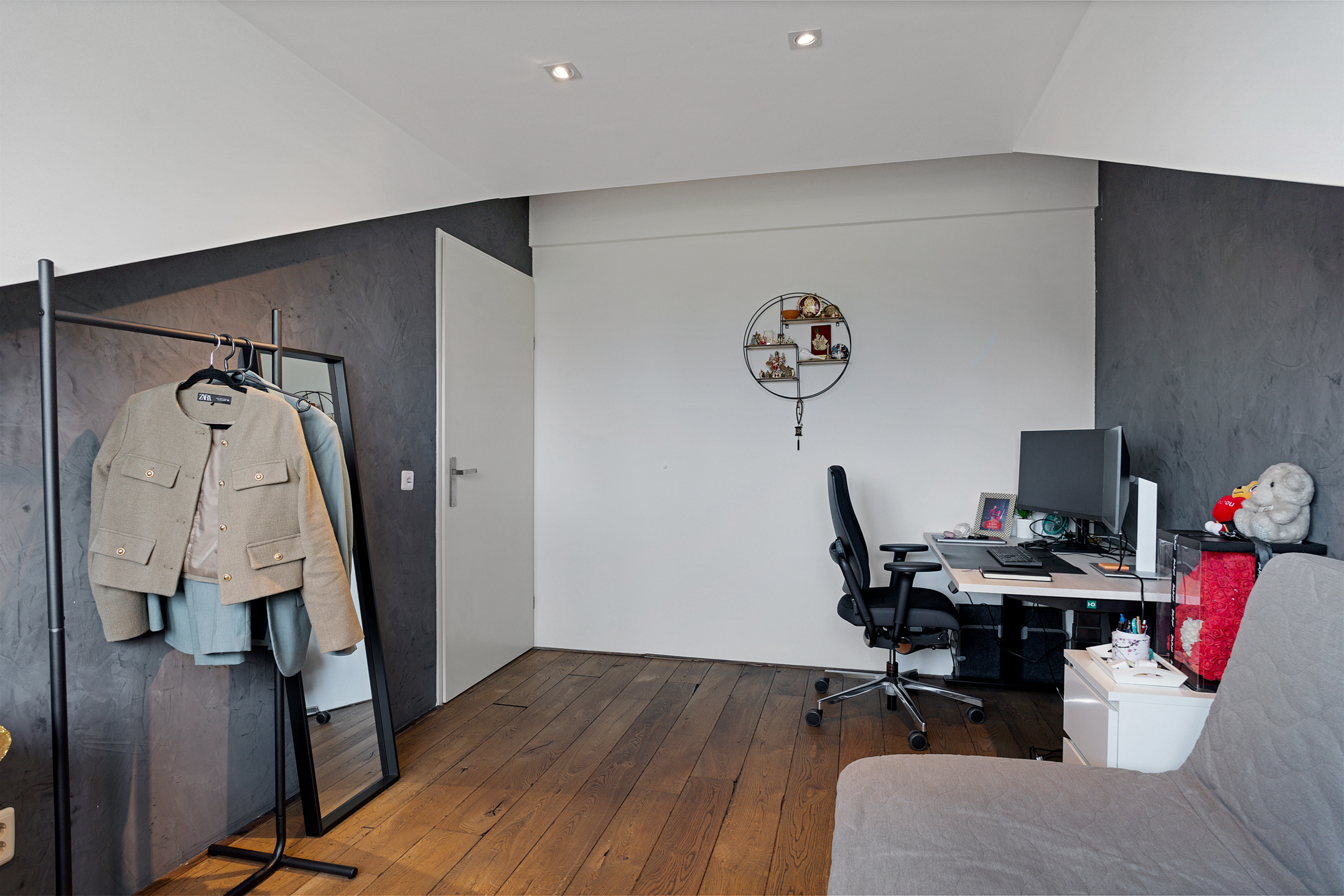 Op de eerste verdieping bevinden zich twee ruime slaapkamers. De hoofdslaapkamer aan de voorzijde heeft een prettige plafondhoogte en een grote vaste kastenwand. De tweede slaapkamer aan de achterzijde is eveneens licht en praktisch in te delen.