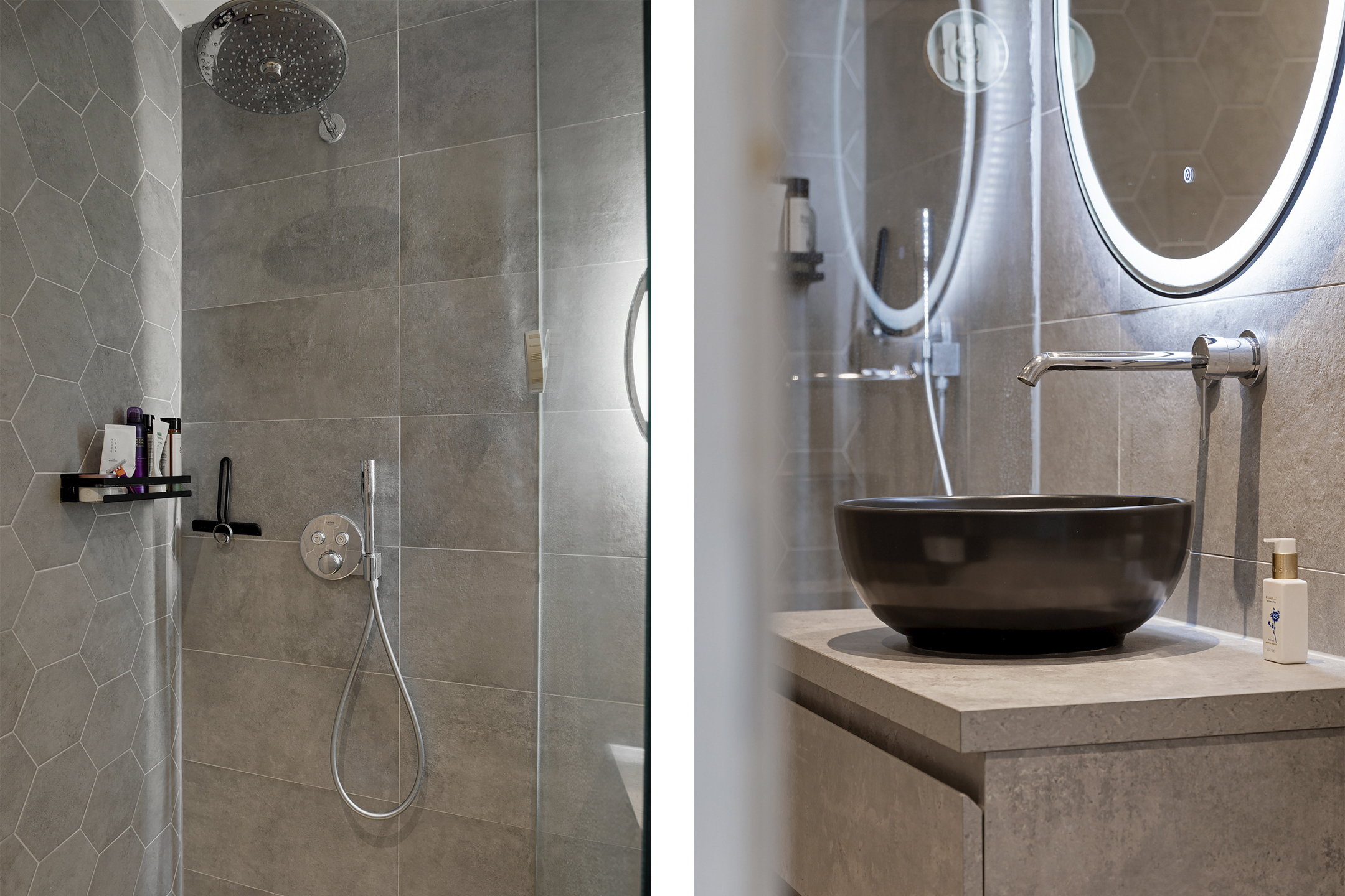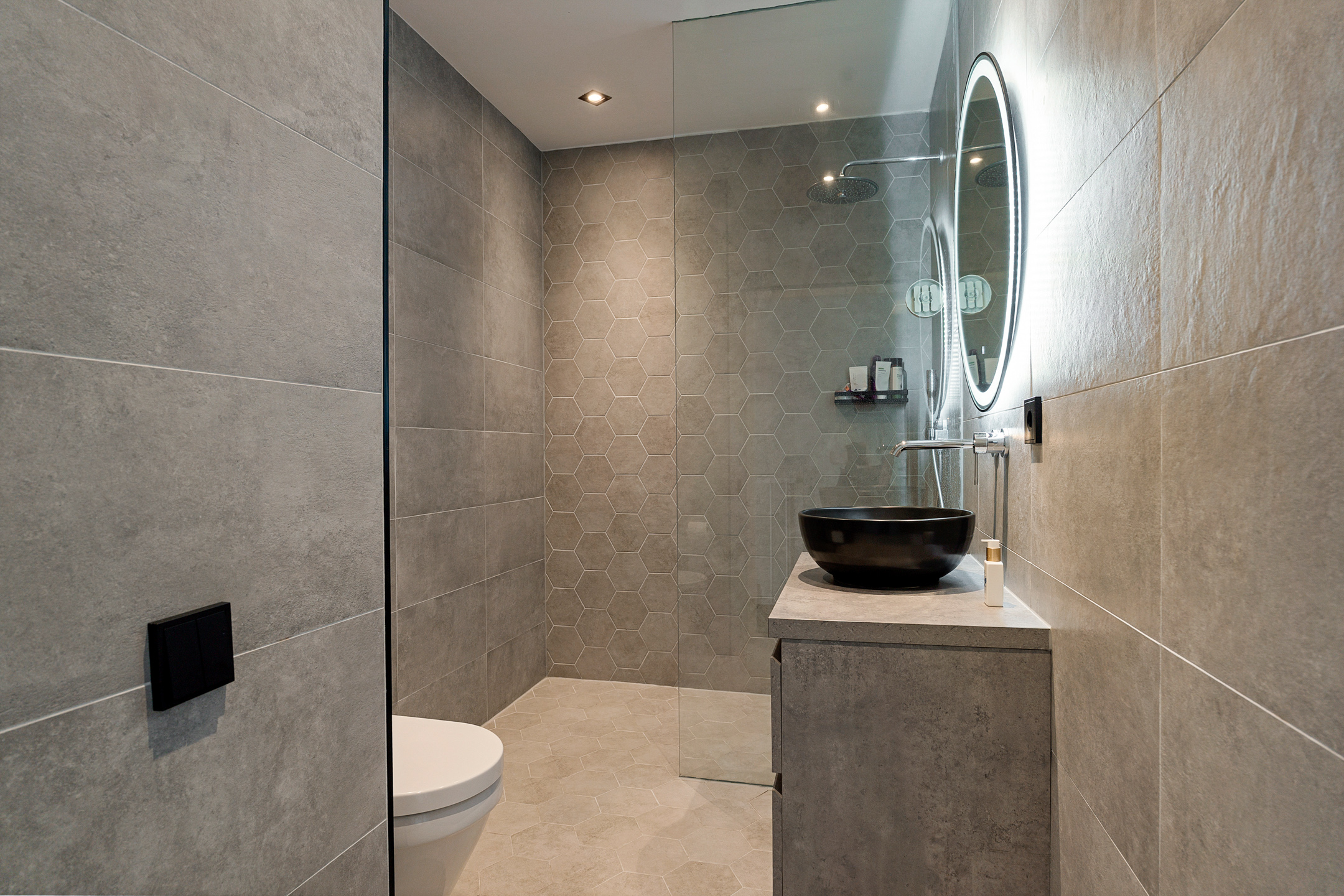 De moderne badkamer (2021) is stijlvol afgewerkt met een inloopdouche, wastafelmeubel, tweede toilet, verwarmde spiegel en fraaie betegeling tot aan het plafond. Ook deze ruimte is tot in de puntjes verzorgd en direct te gebruiken.
