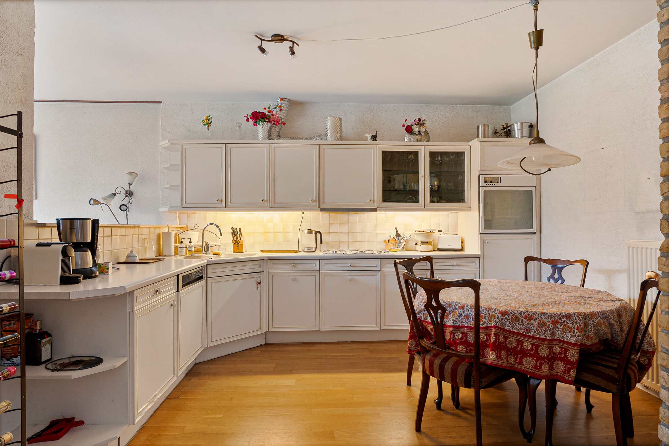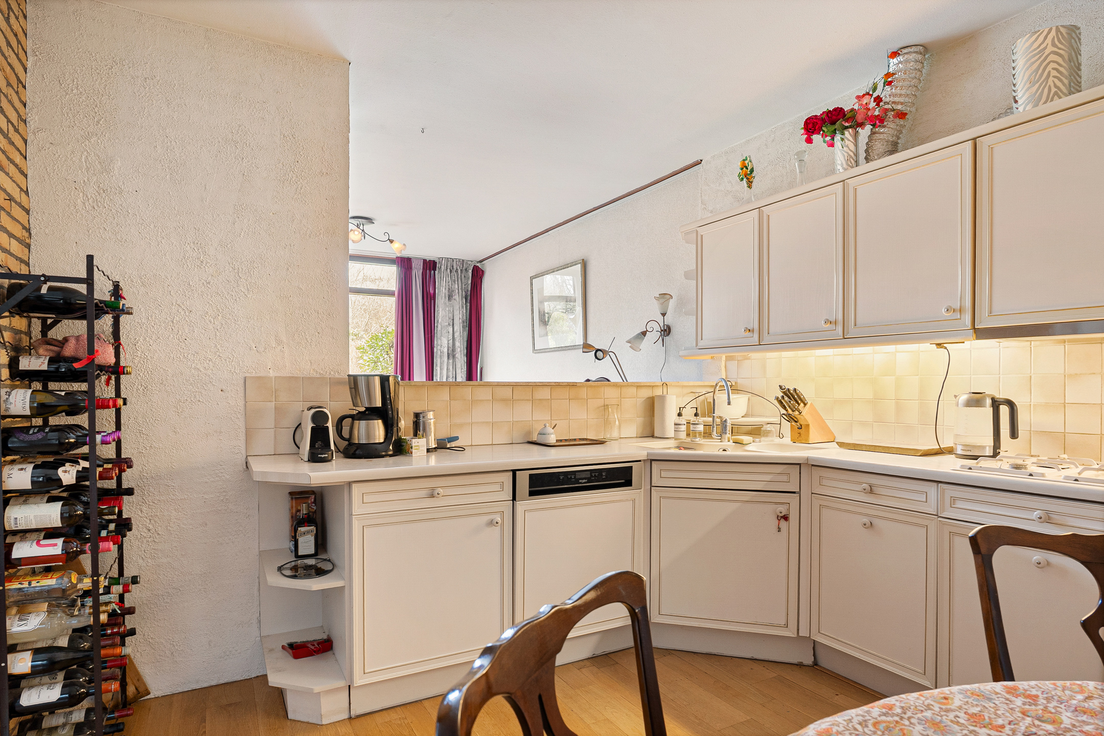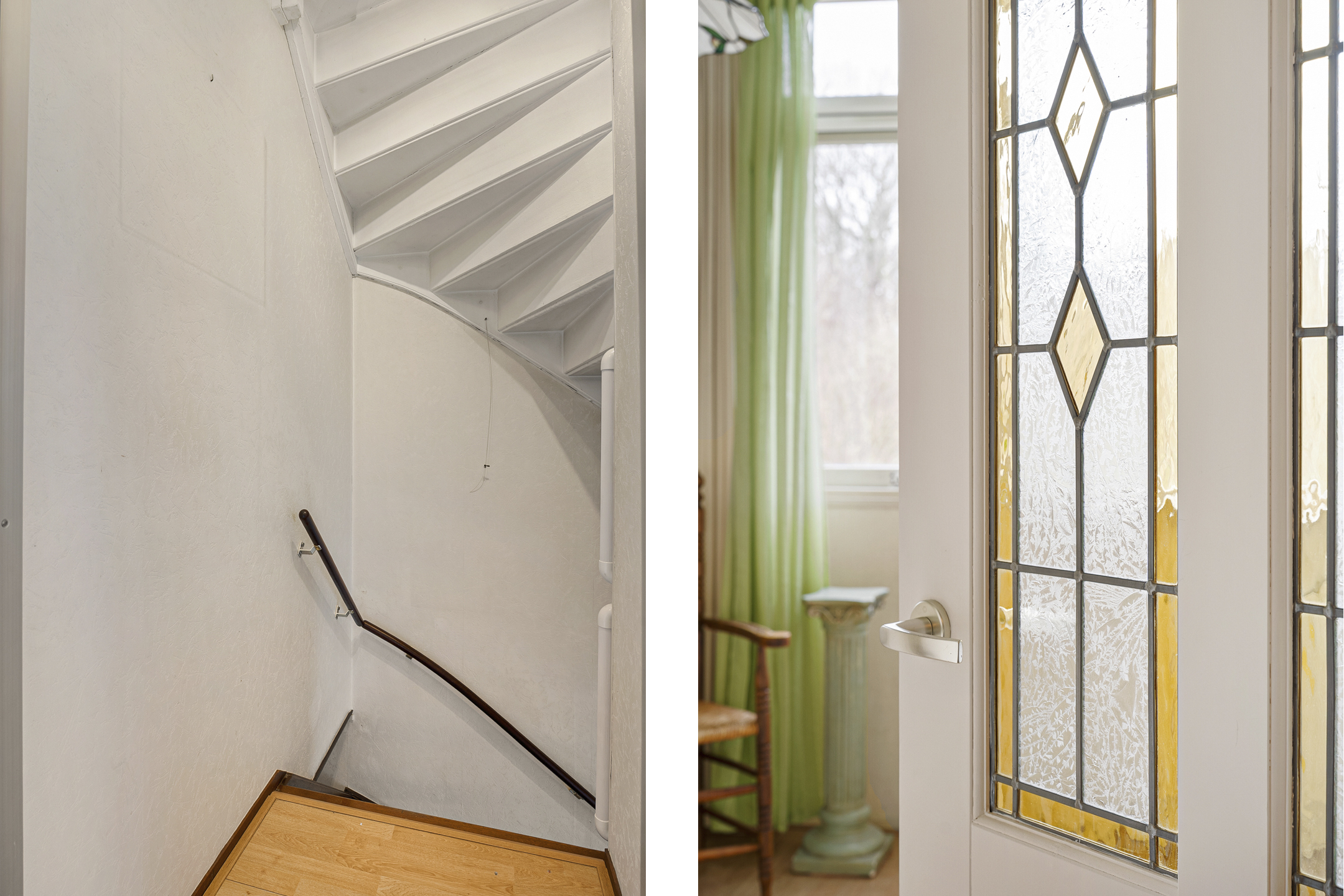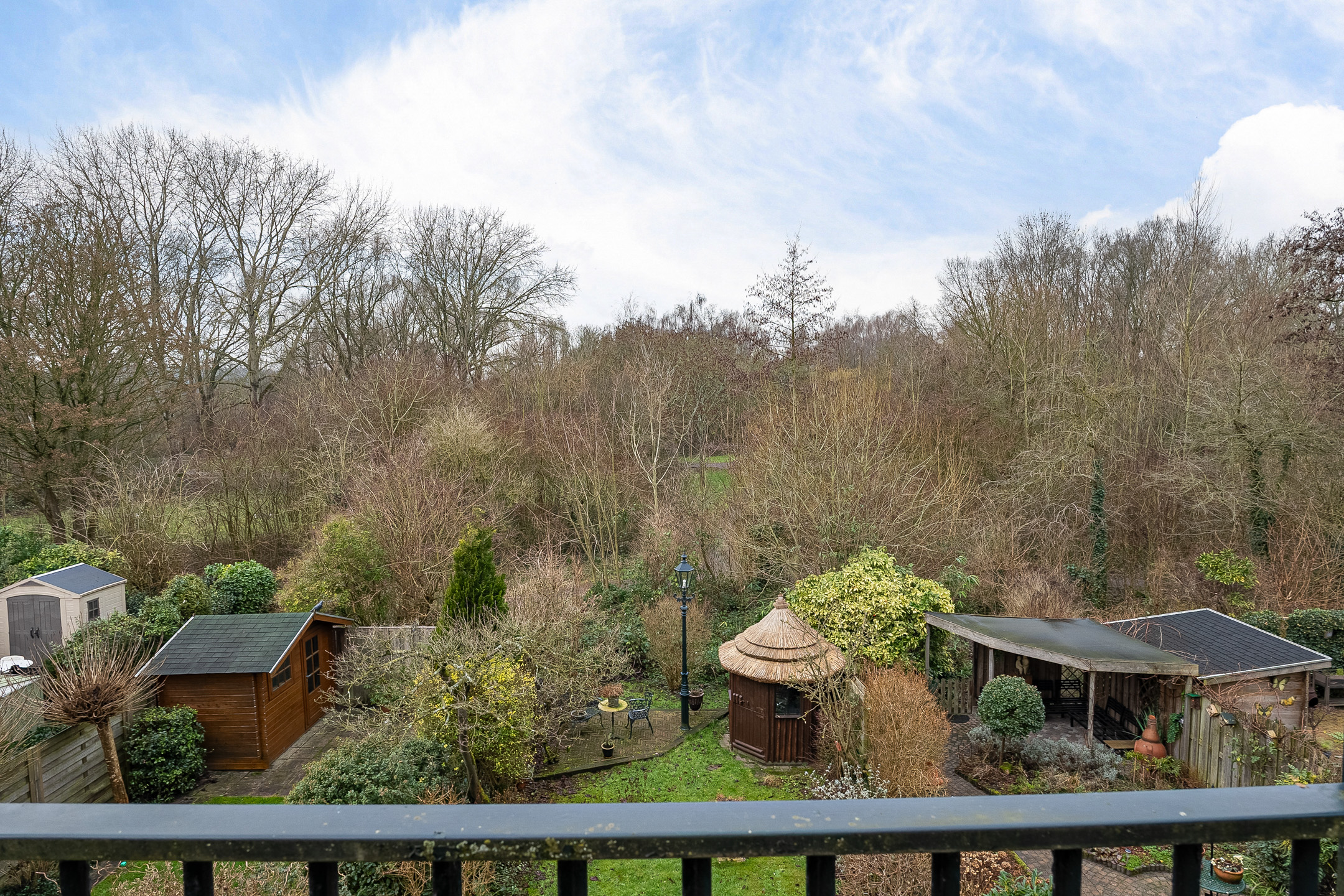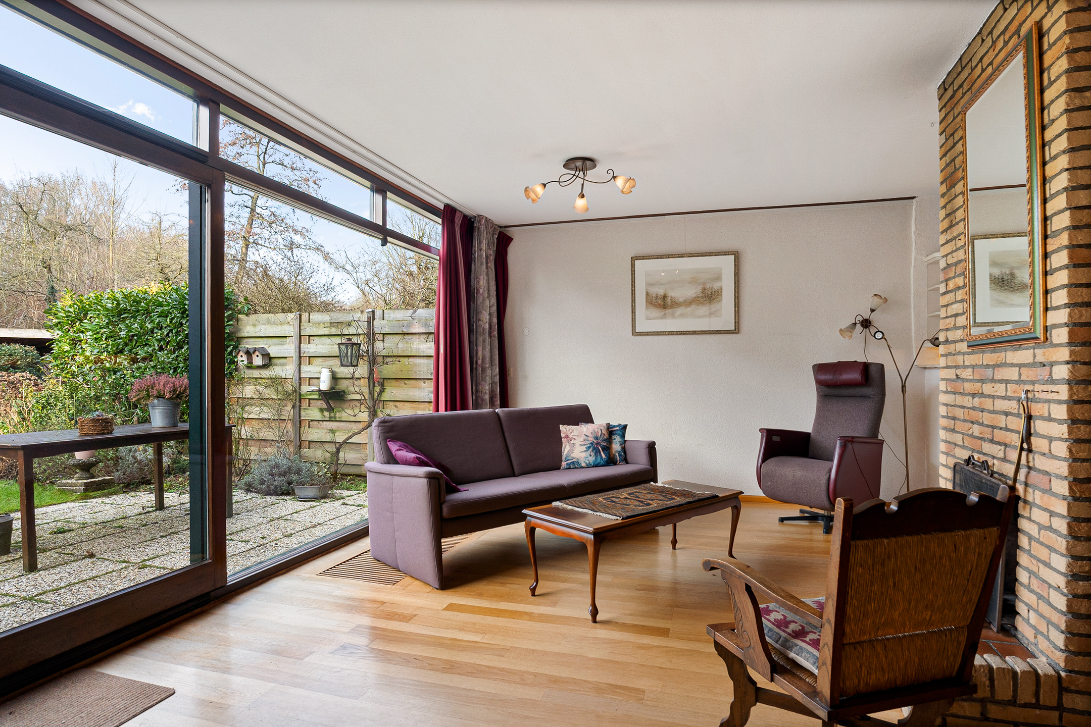 De begane grond biedt een lichte woonkamer met open haard en grote raampartijen die zorgen voor een prettige verbinding met buiten. Vanuit de woning geniet je van een vrij en groen uitzicht, wat zorgt voor een gevoel van ruimte en privacy. De open keuken maakt het geheel compleet.