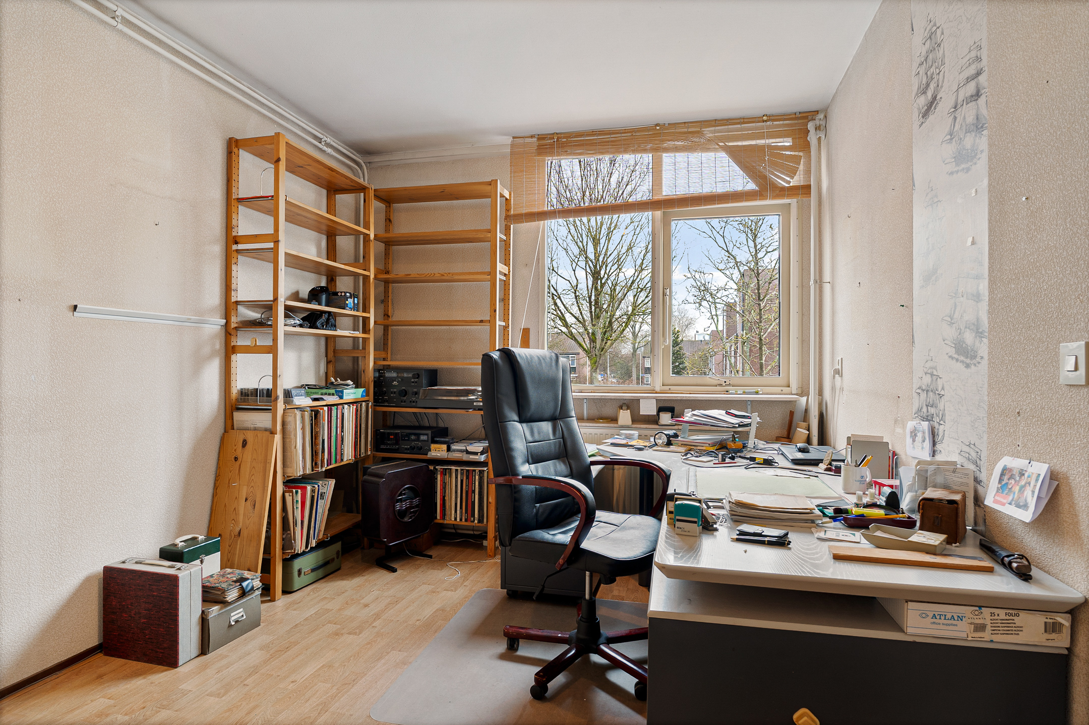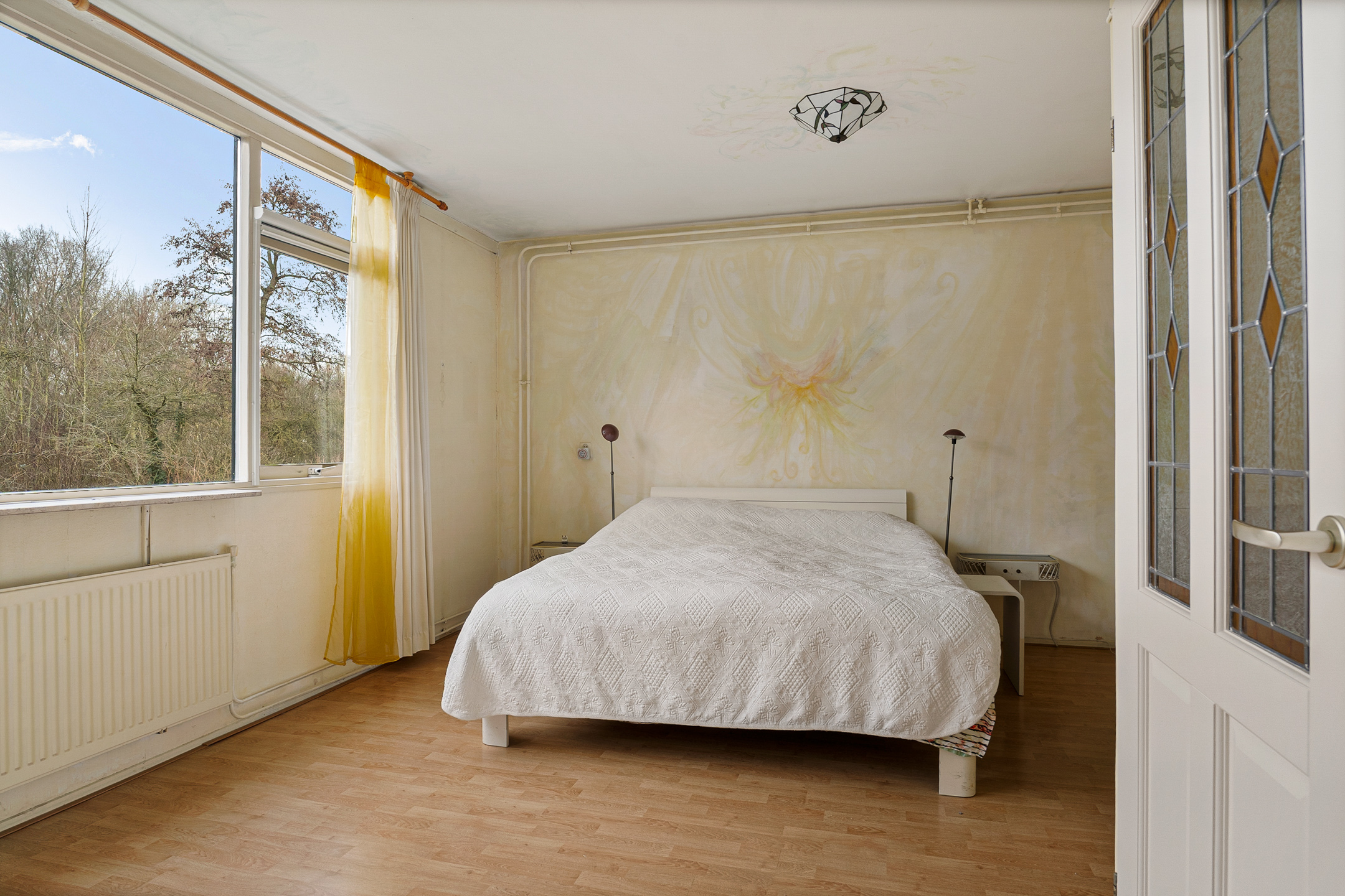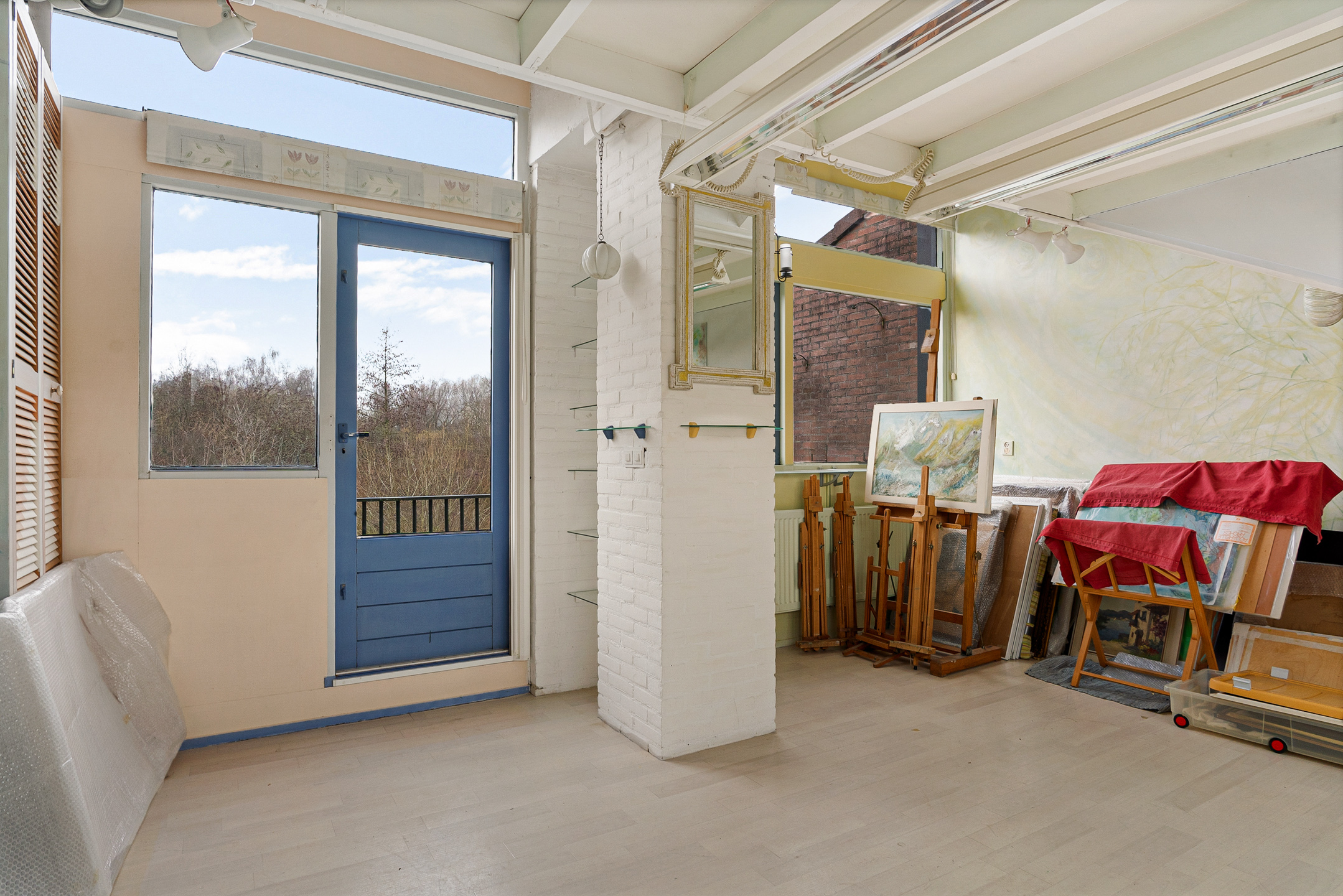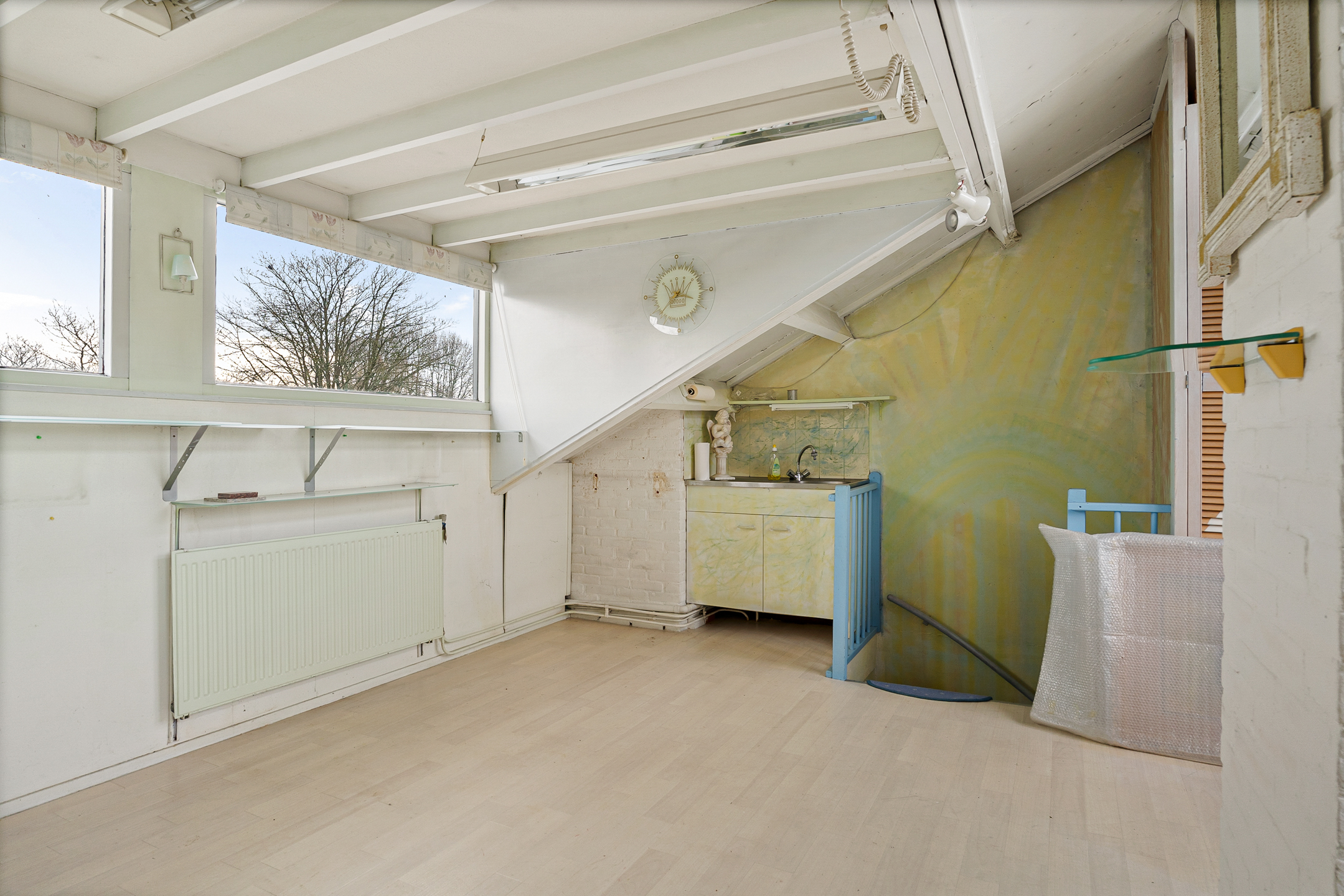 Royale zolderkamer met dakkapel en toegang tot het westgerichte dakterras. Door de vrije ligging en het uitzicht over het groen is deze verdieping ideaal als master bedroom, werk- of hobbyruimte.