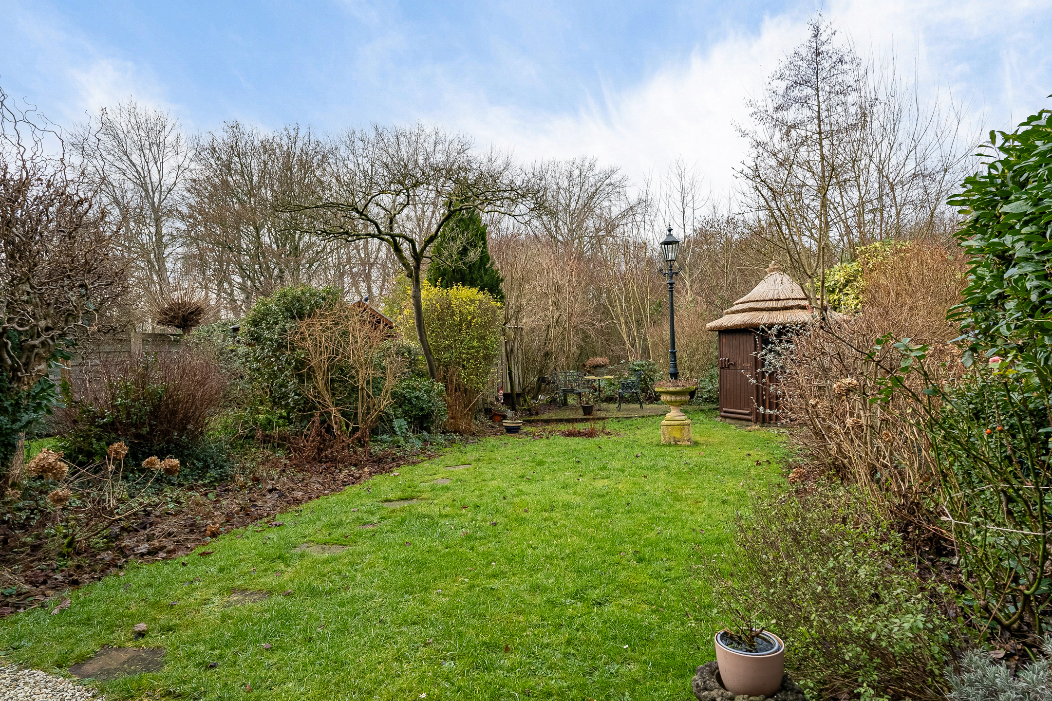 De ruime achtertuin van ca. 92 m², gelegen op het westen, biedt veel privacy en grenst aan een groenstrook/park. Een heerlijke plek om in alle rust buiten te zitten. Daarnaast beschikt de woning over een dakterras op de tweede verdieping, ideaal voor zon in de namiddag en avond met een vrij en groen uitzicht.