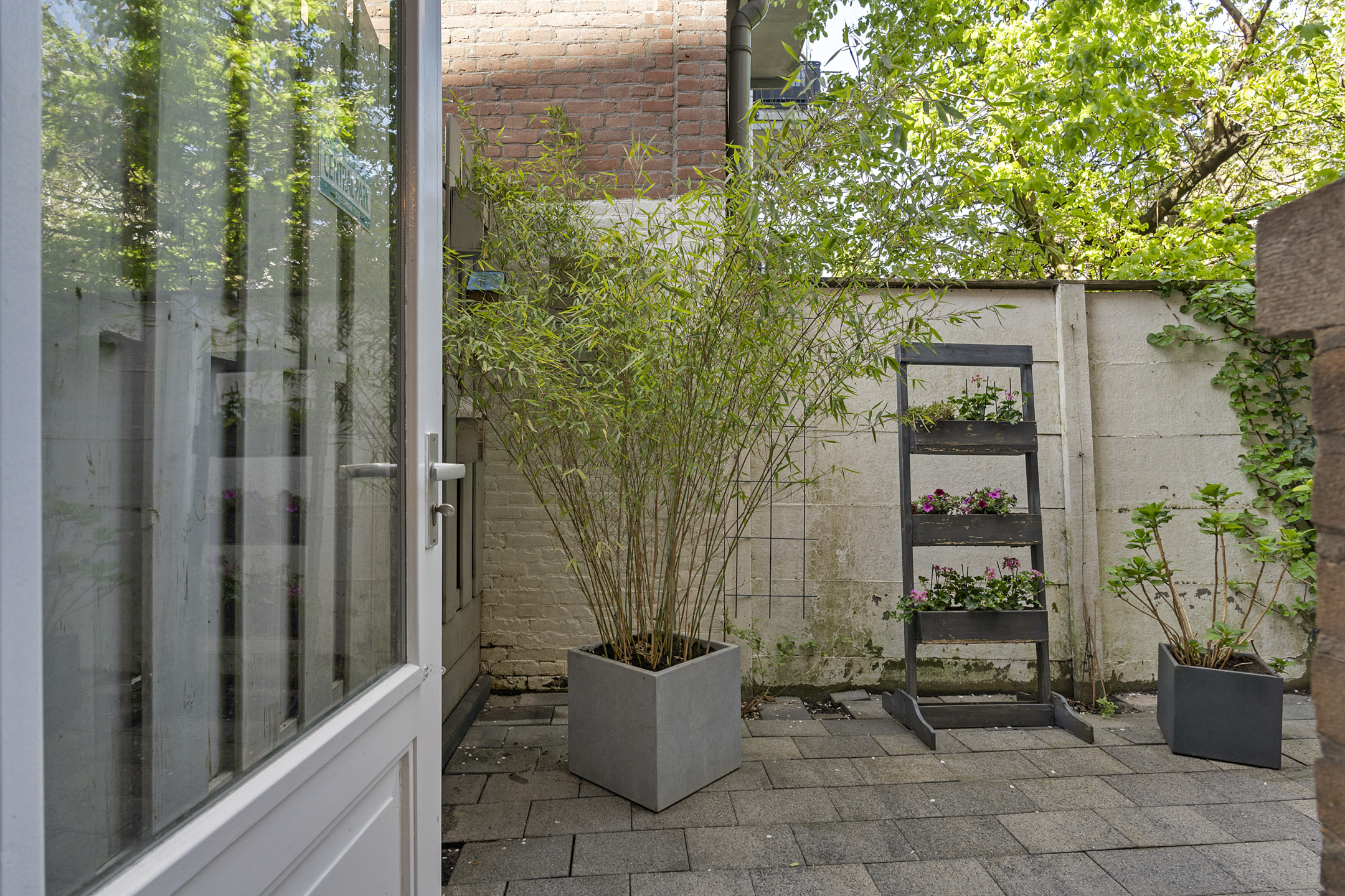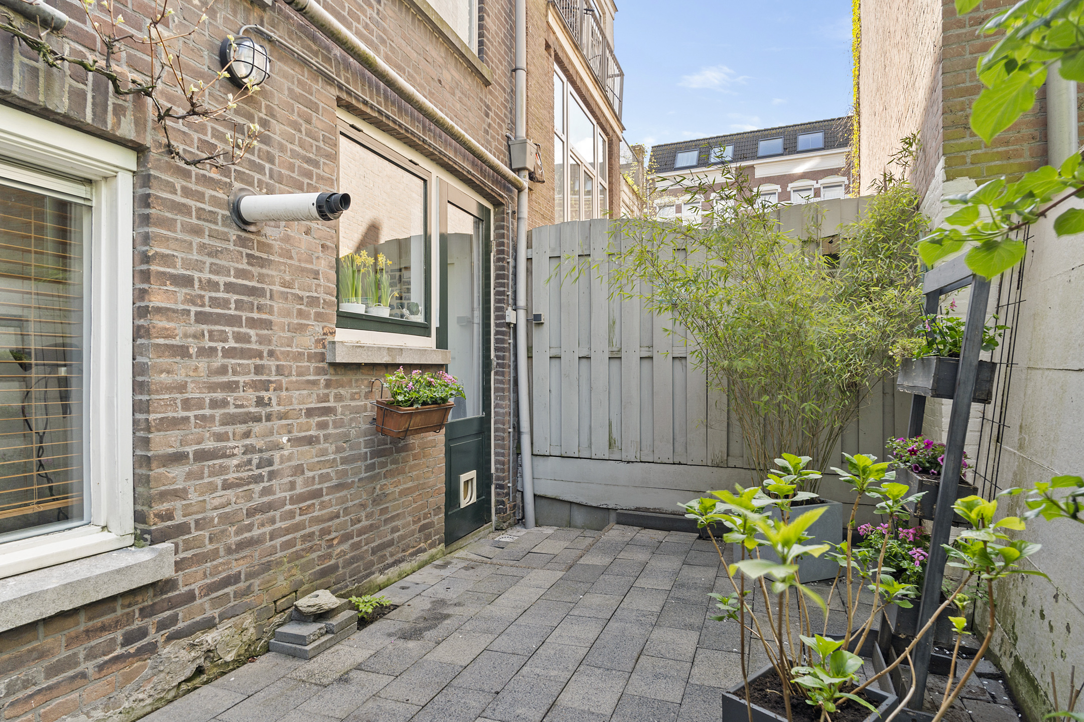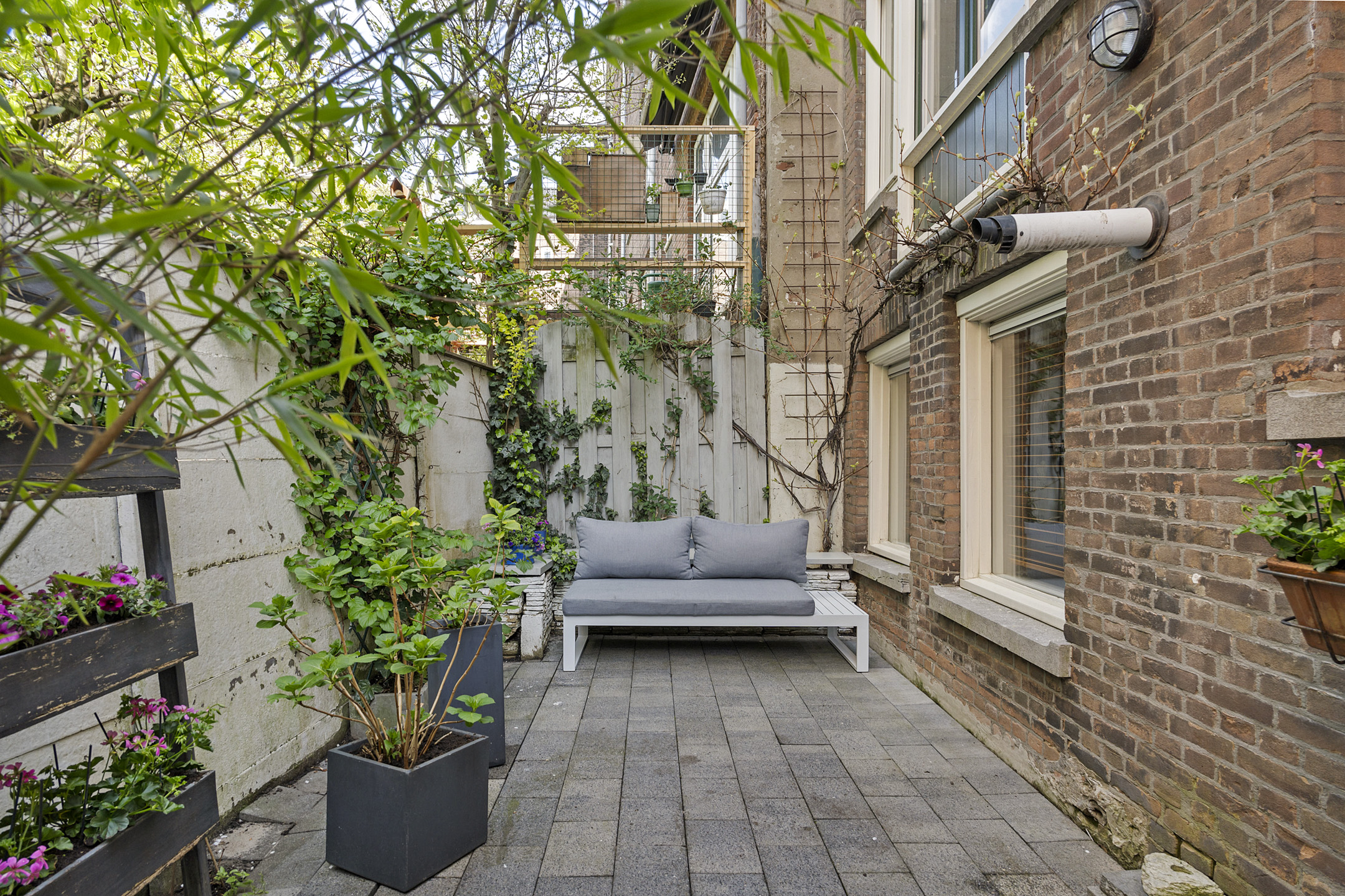 De stadstuin, bereikbaar via de keuken, ligt op het westen en biedt een fijne plek om te ontspannen na een drukke dag.