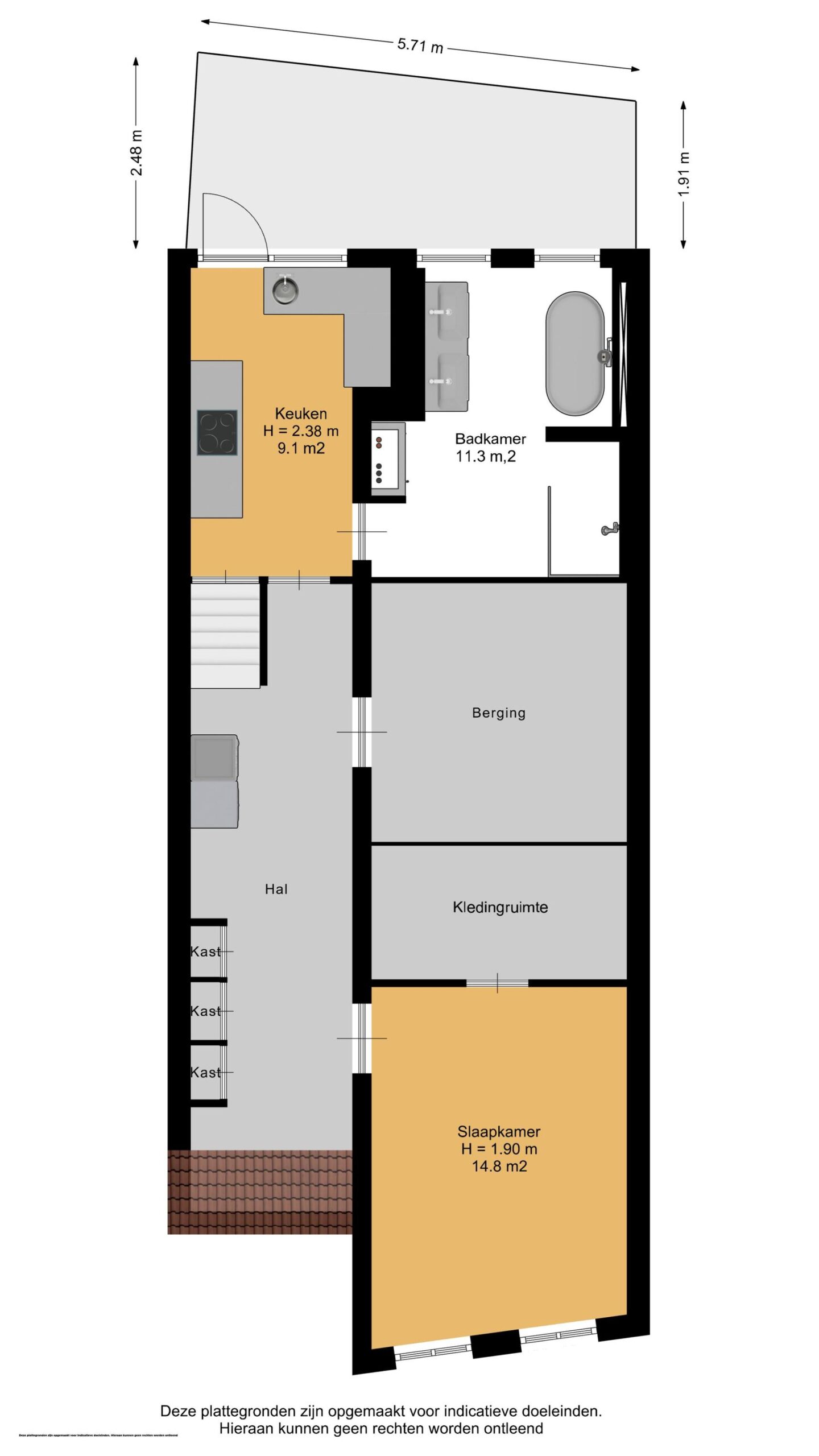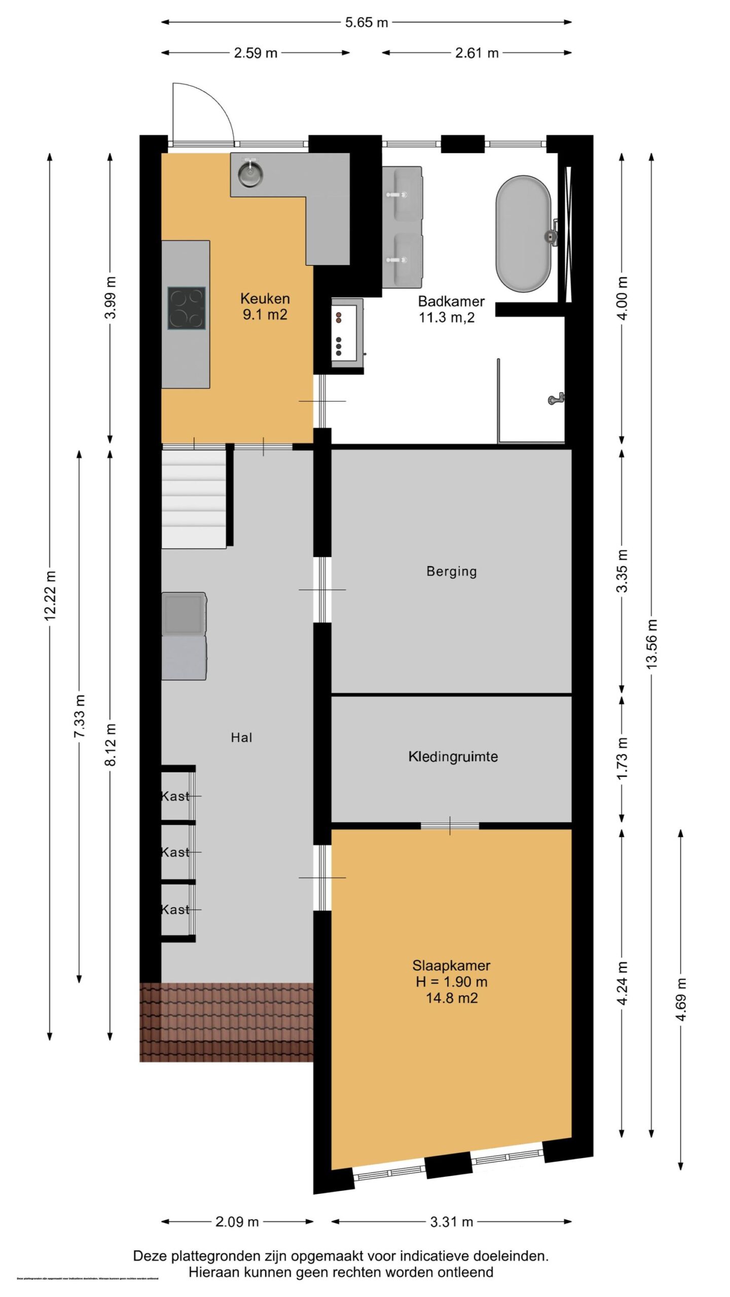 In het souterrain is in 2023 een strakke, moderne keuken geplaatst, uitgerust met een inductiekookplaat met geïntegreerde afzuiging, vaatwasser, koelkast, vriezer en stoomoven. Aangrenzend bevindt zich de volledig vernieuwde badkamer met een royaal ligbad, ruime inloopdouche met nisjes, dubbele wastafel met meubel, verlichte spiegel, spotverlichting en een luxe handdoekradiator. De afwerking is hoogwaardig en straalt luxe uit.