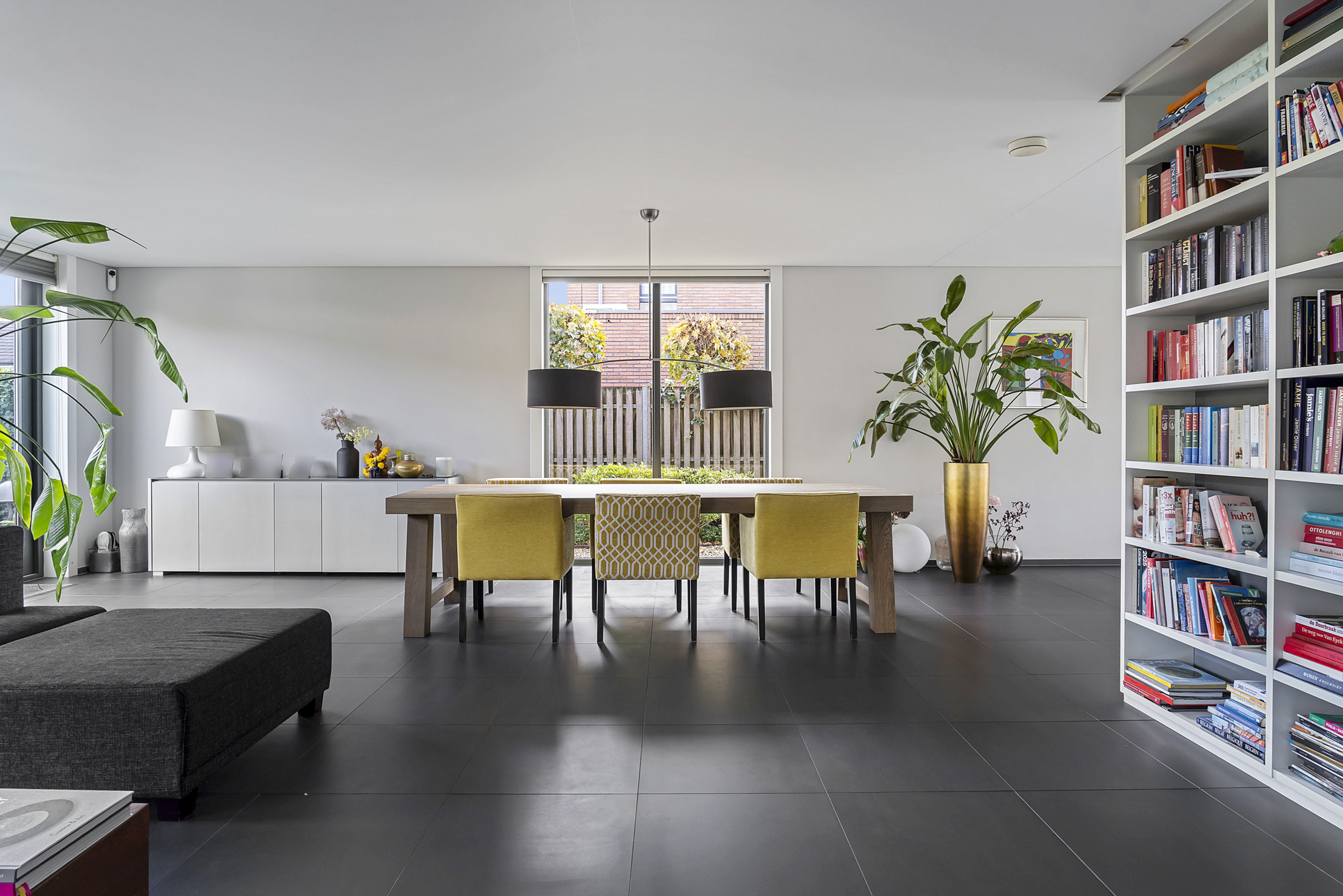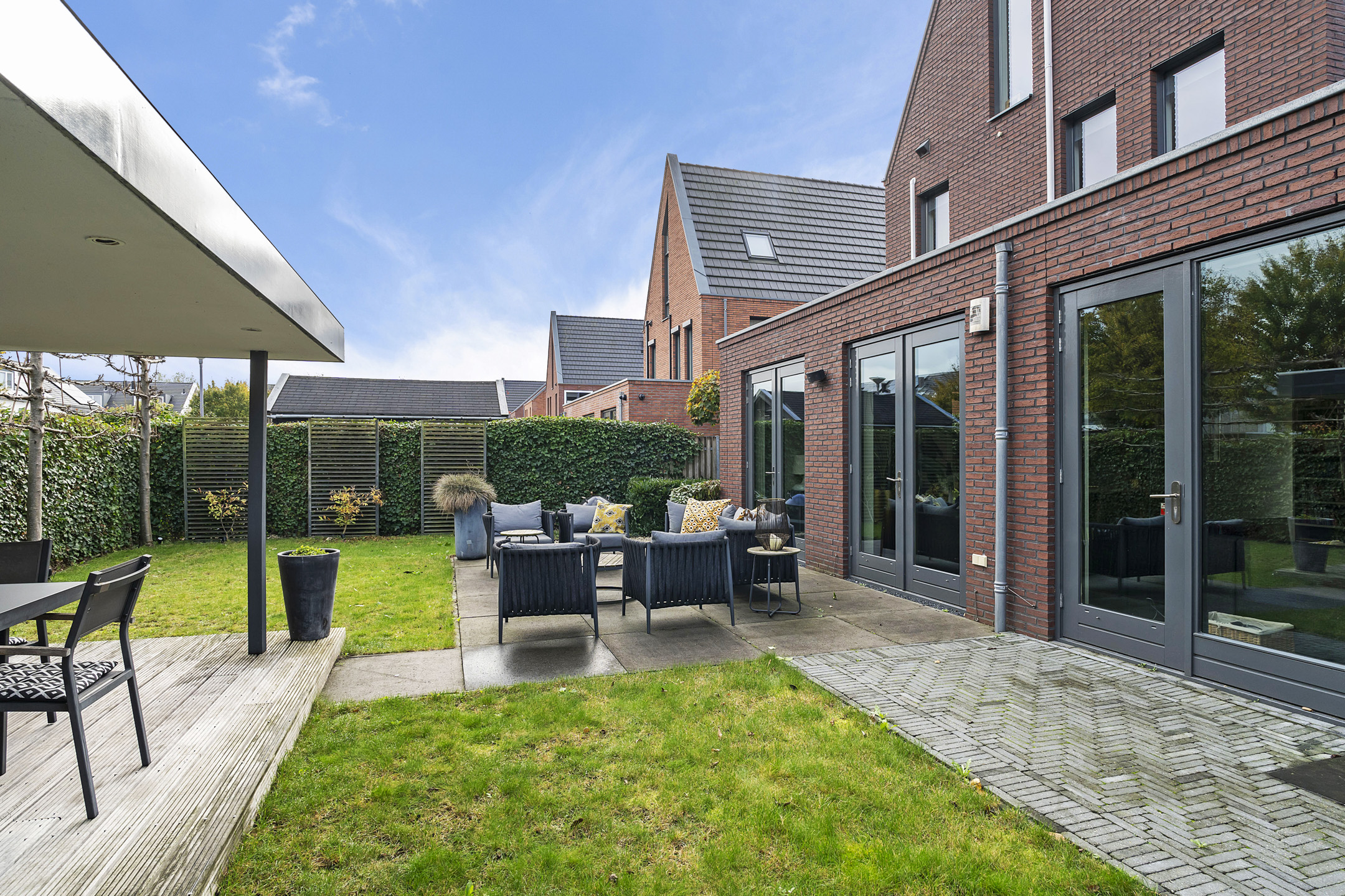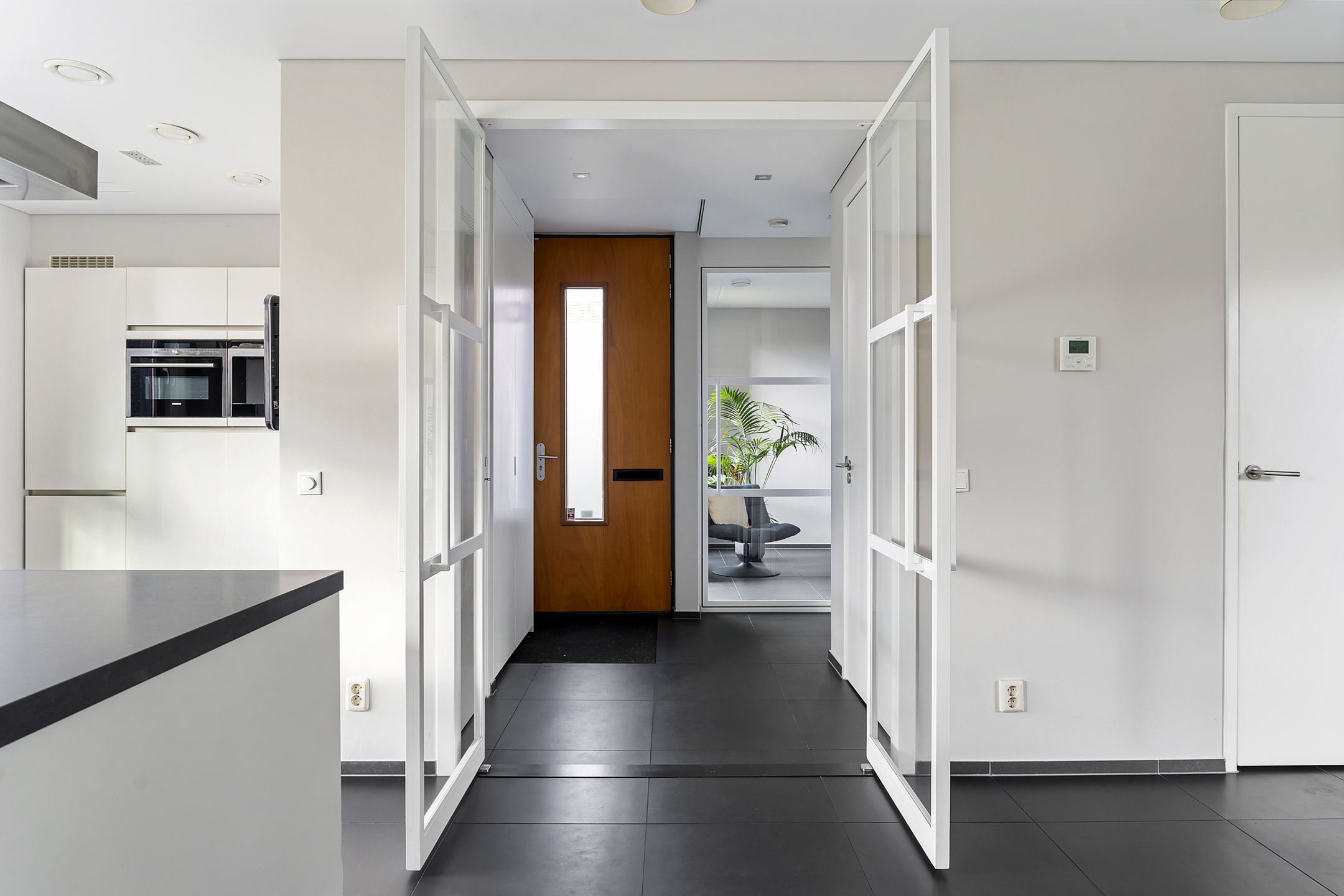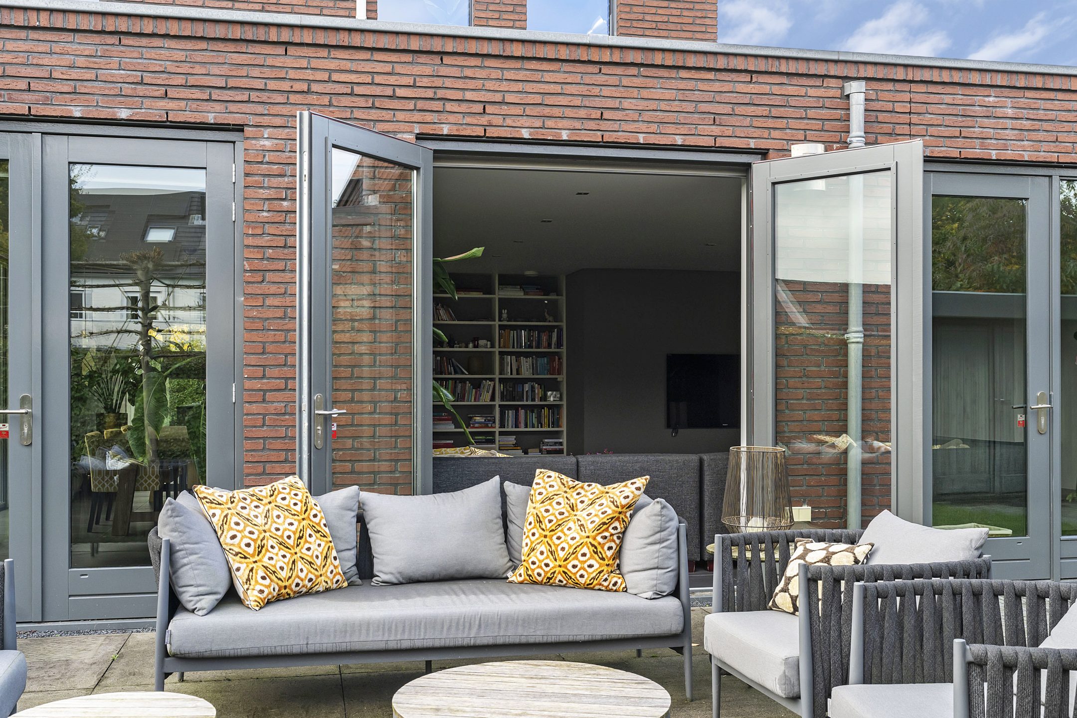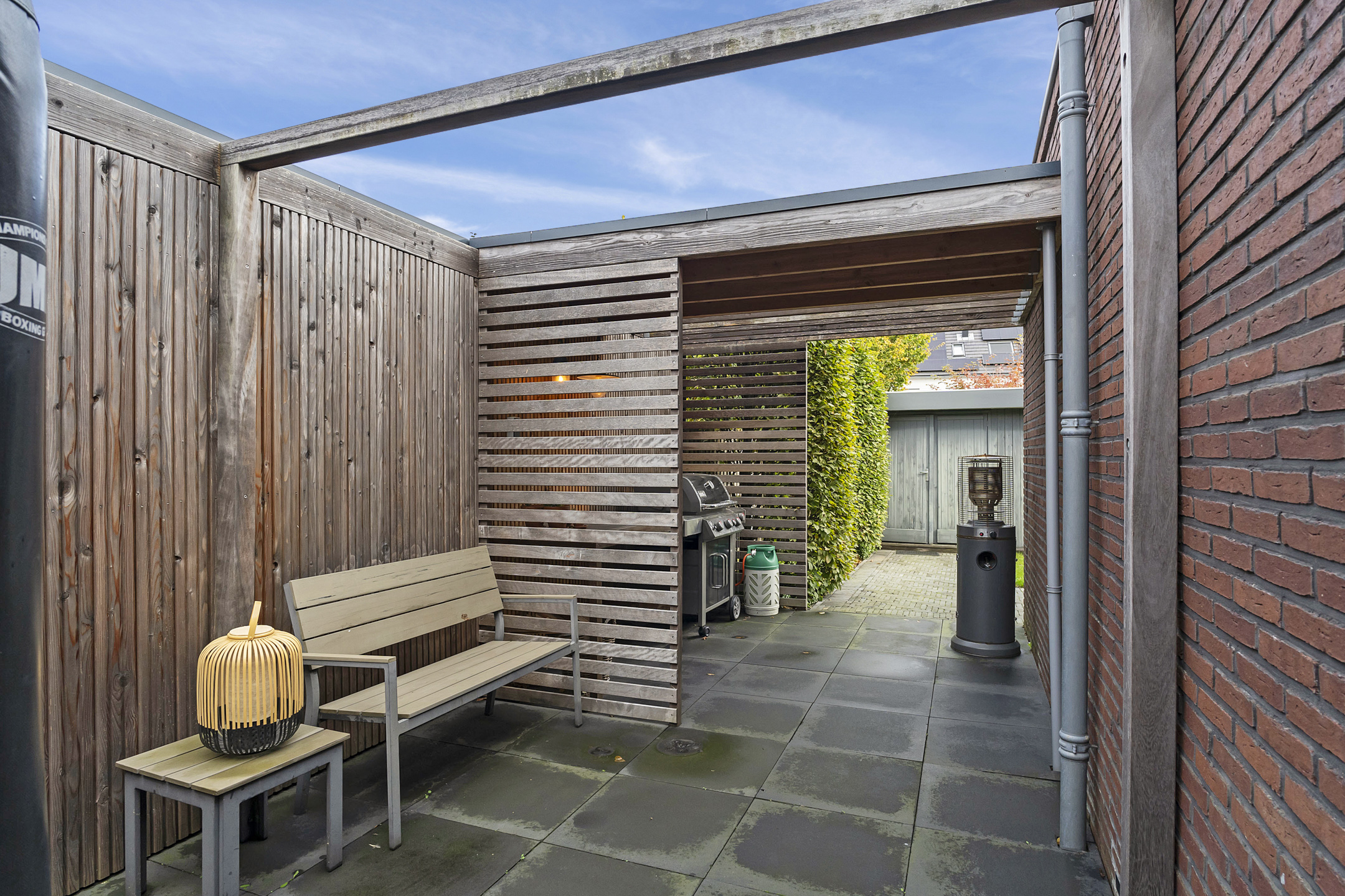 De voortuin biedt een ruime oprit met parkeerruimte voor minimaal 2 auto’s en toegang tot de woning. Bij binnenkomst betreed je een ruime hal die toegang biedt tot een meterkast, moderne toiletruimte met wandcloset en fonteintje, en een lichte werkkamer, perfect voor thuiswerken of als praktijkruimte. De ruime woonkamer van ca. 90 m² is voorzien van vloerverwarming en vloertegels, en door de grote raampartijen en openslaande deuren is er veel lichtinval. De open keuken aan de voorzijde is luxe ingericht met grote ramen en biedt een prachtig uitzicht op de lommerrijke laan. In de woonkamer is een royale ruimte voor een grote lange eettafel en een XL zithoek bij de sfeervolle gashaard. Vanuit de woonkamer geven drie openslaande deuren toegang tot de zonnige, fraai aangelegde tuin met een gezellig tuinhuis en een praktische overkapping aan de zijkant, ideaal voor fietsen of een buitenkeuken.