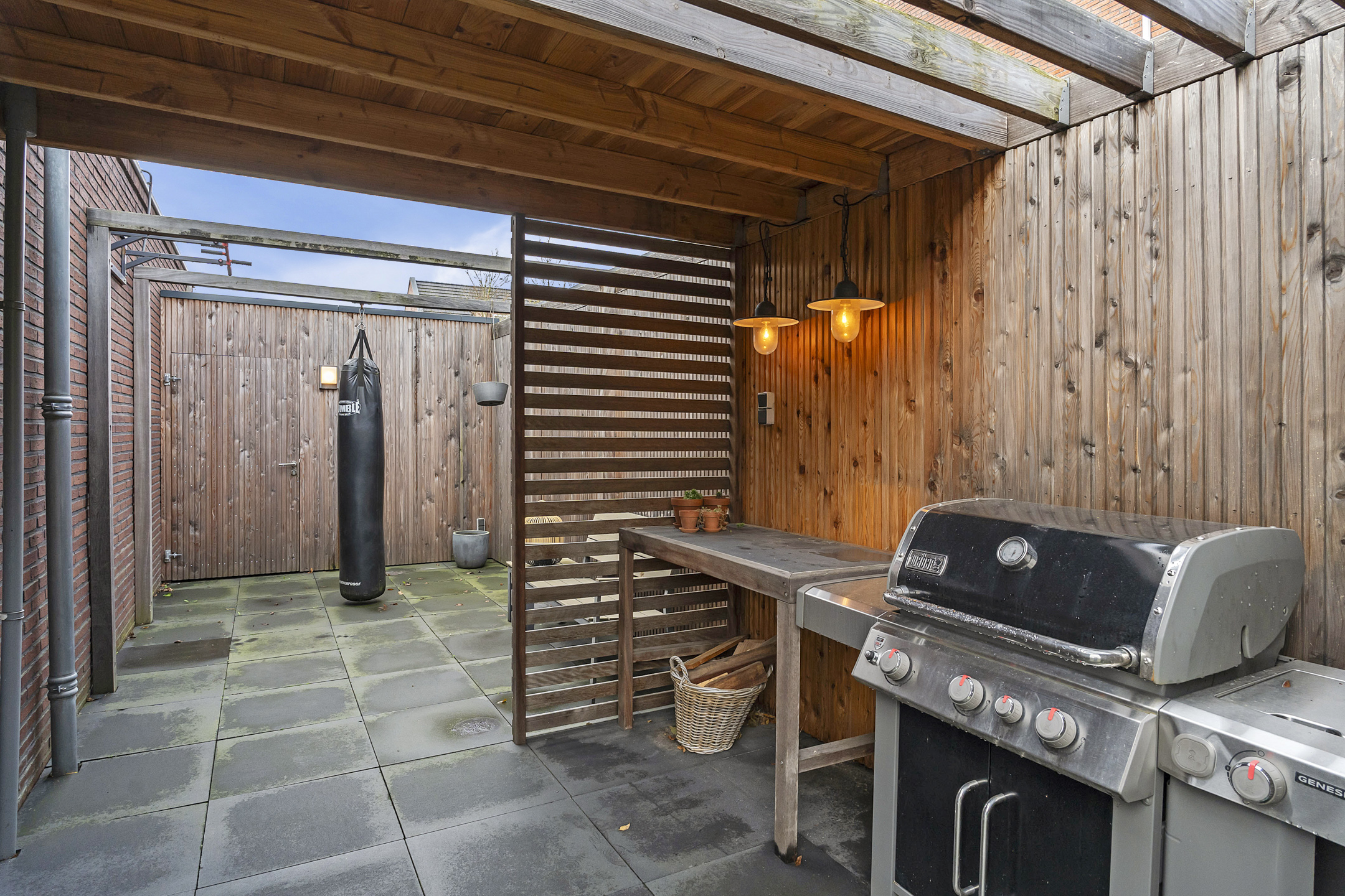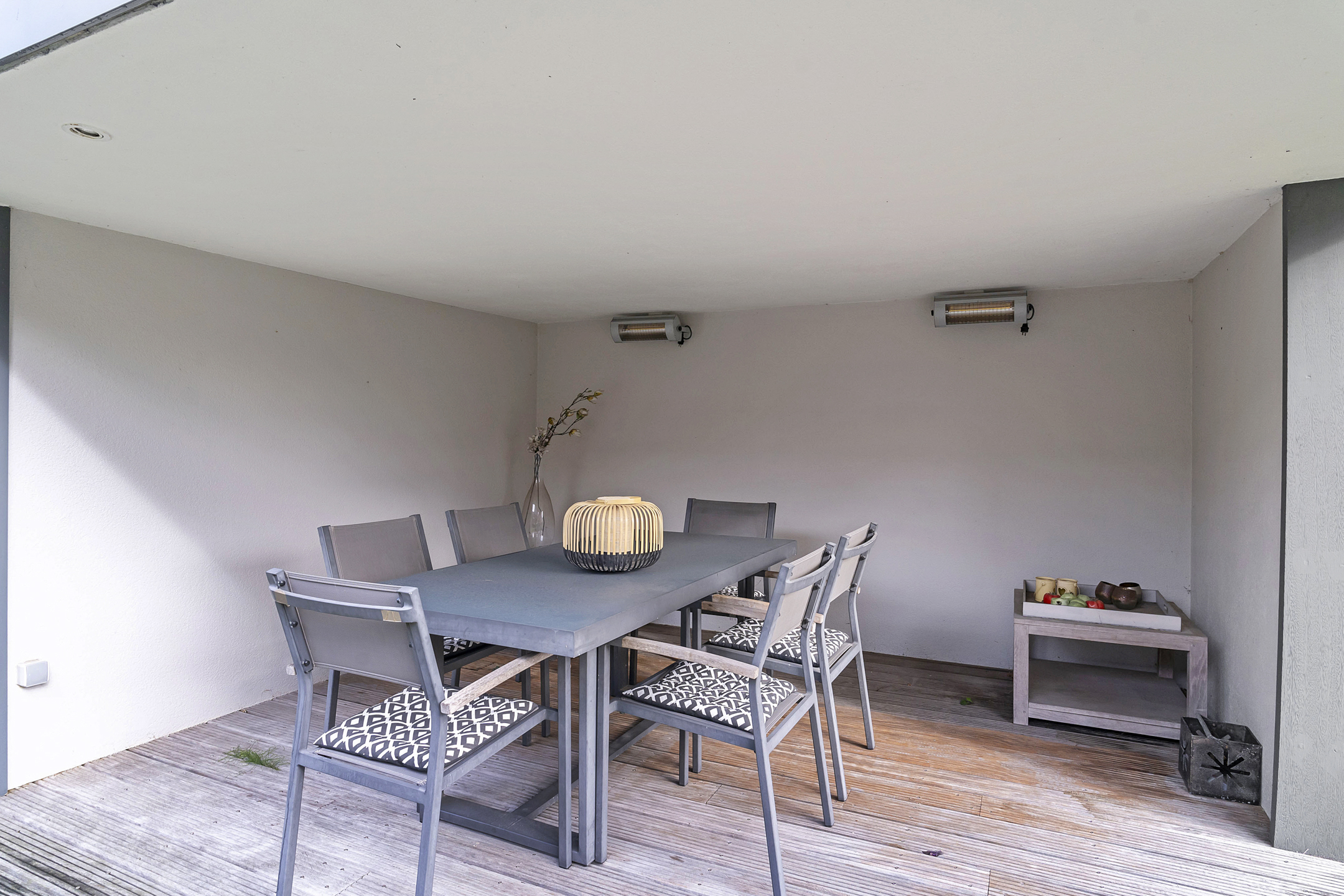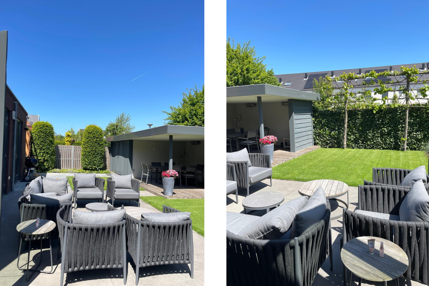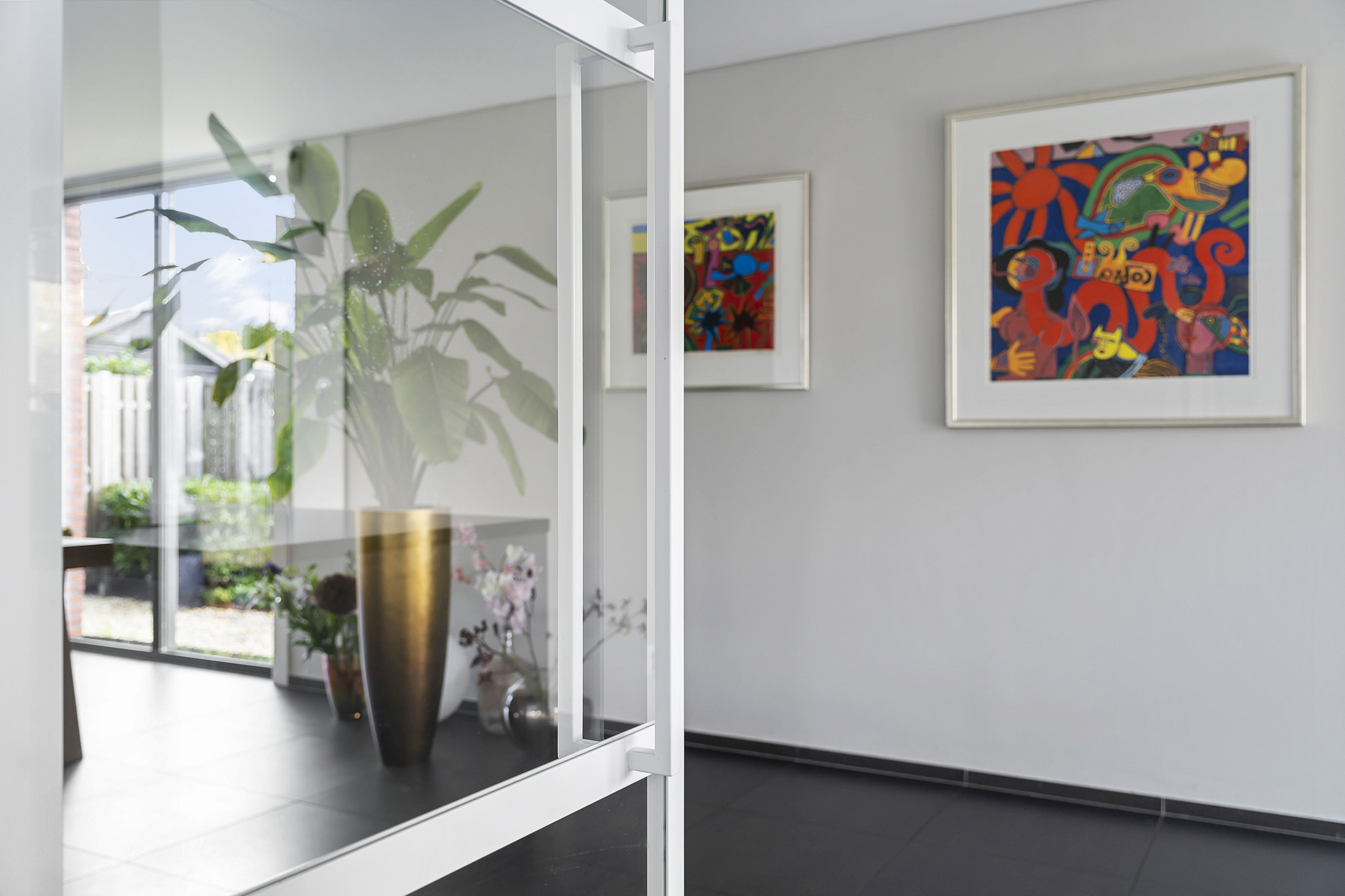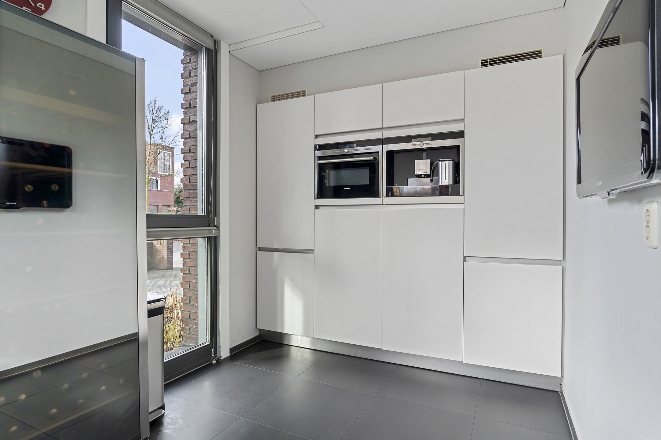 De voortuin biedt een ruime oprit met parkeerruimte voor minimaal 2 auto’s en toegang tot de woning. Bij binnenkomst betreed je een ruime hal die toegang biedt tot een meterkast, moderne toiletruimte met wandcloset en fonteintje, en een lichte werkkamer, perfect voor thuiswerken of als praktijkruimte. De ruime woonkamer van ca. 90 m² is voorzien van vloerverwarming en vloertegels, en door de grote raampartijen en openslaande deuren is er veel lichtinval. De open keuken aan de voorzijde is luxe ingericht met grote ramen en biedt een prachtig uitzicht op de lommerrijke laan. In de woonkamer is een royale ruimte voor een grote lange eettafel en een XL zithoek bij de sfeervolle gashaard. Vanuit de woonkamer geven drie openslaande deuren toegang tot de zonnige, fraai aangelegde tuin met een gezellig tuinhuis en een praktische overkapping aan de zijkant, ideaal voor fietsen of een buitenkeuken.