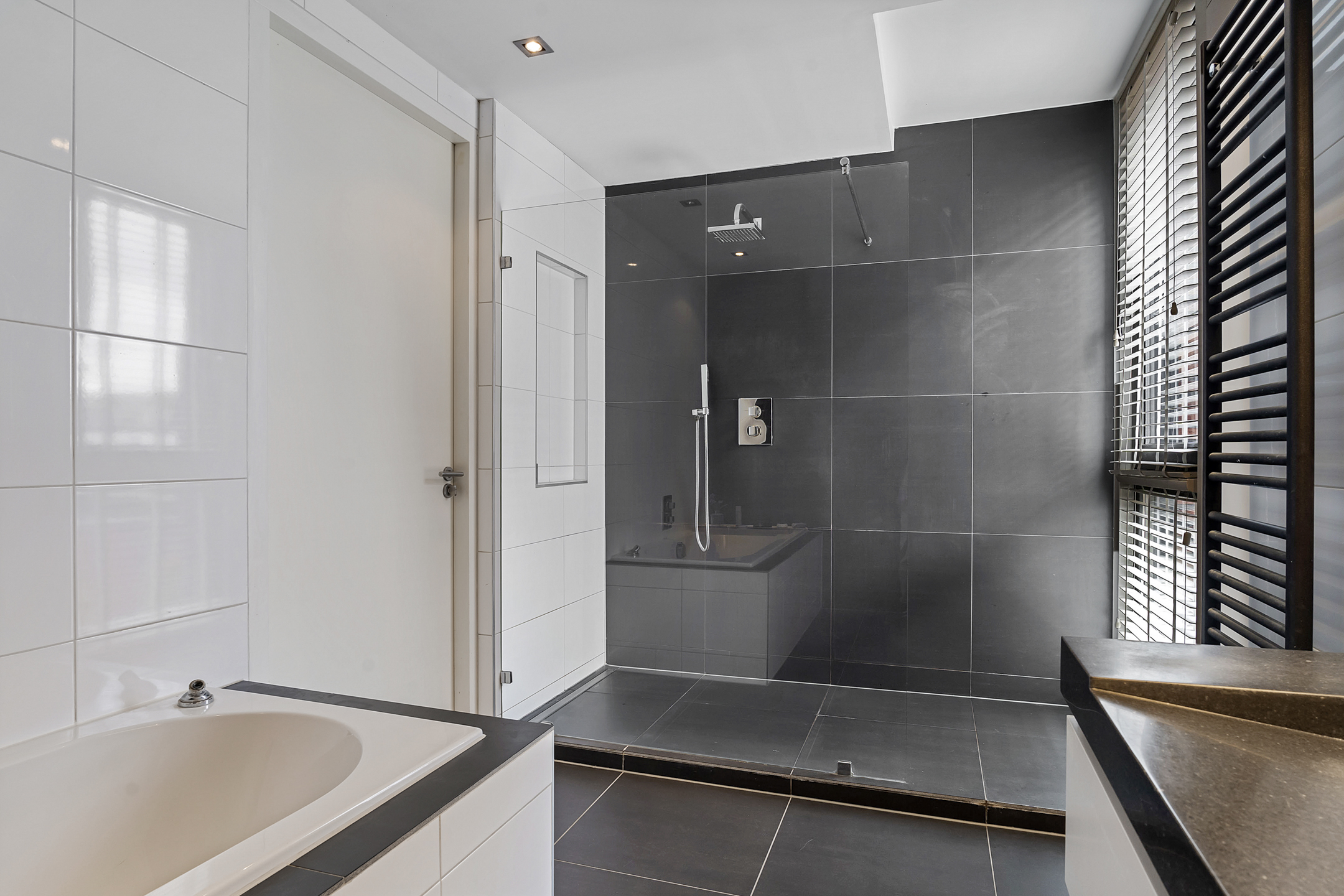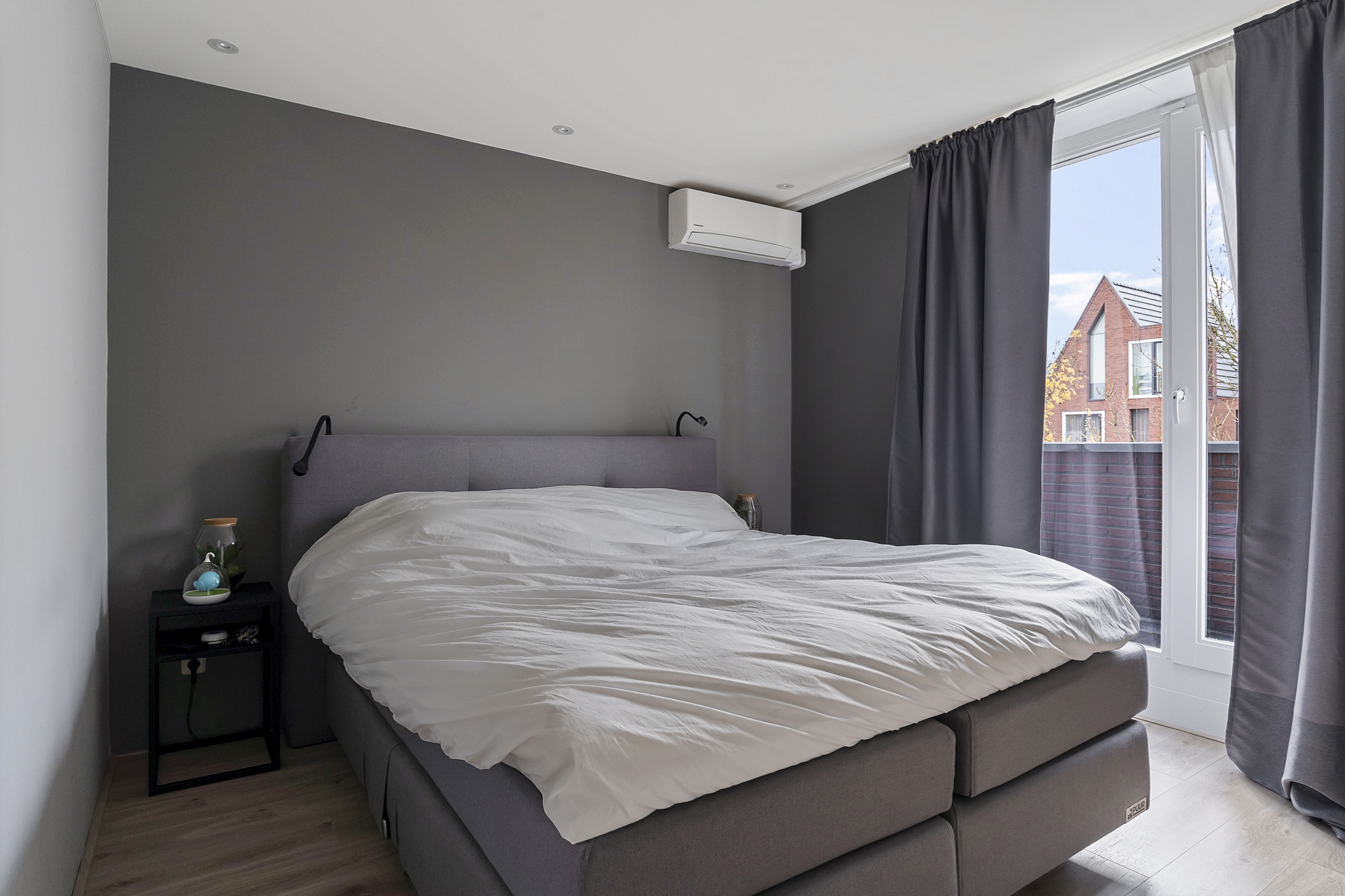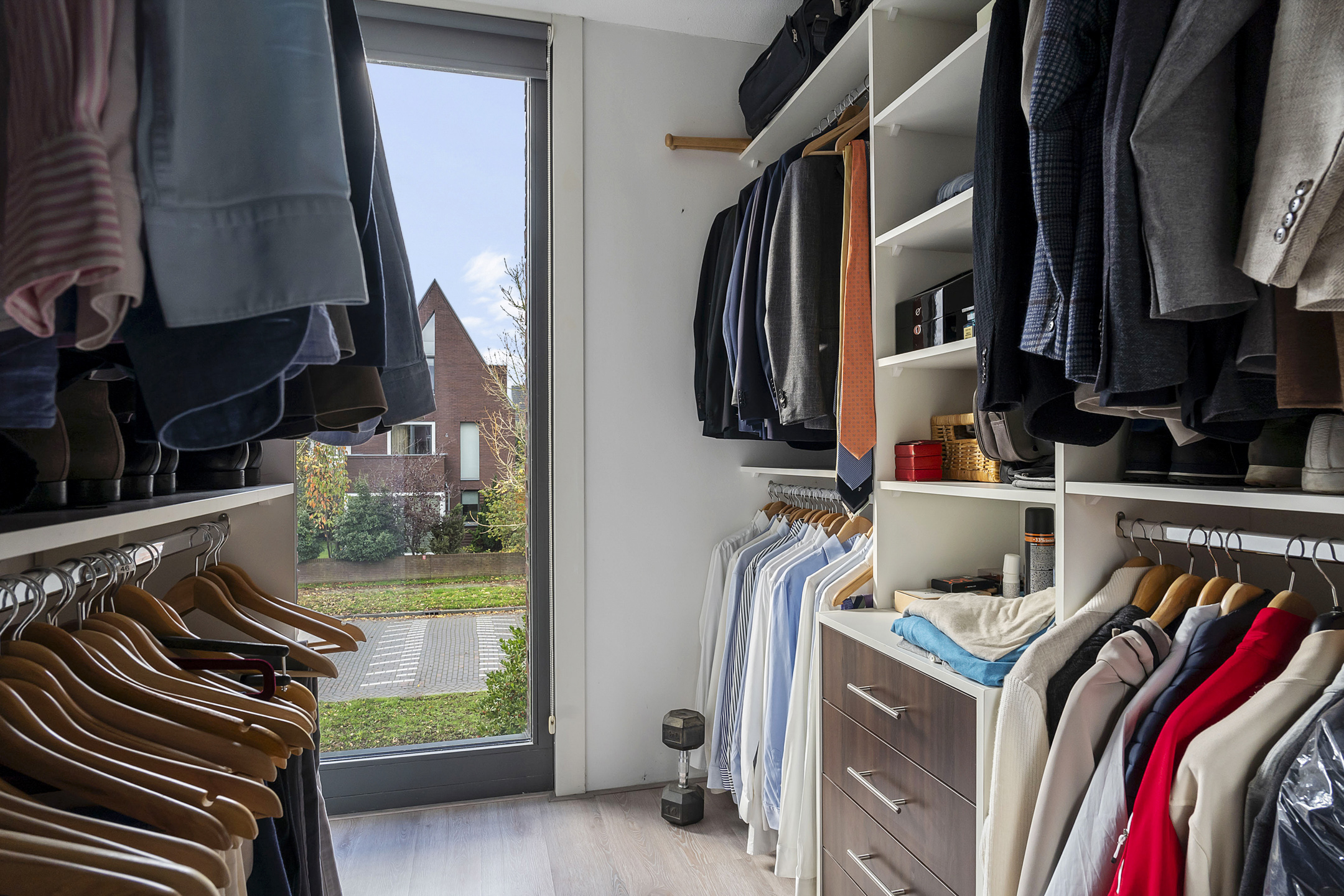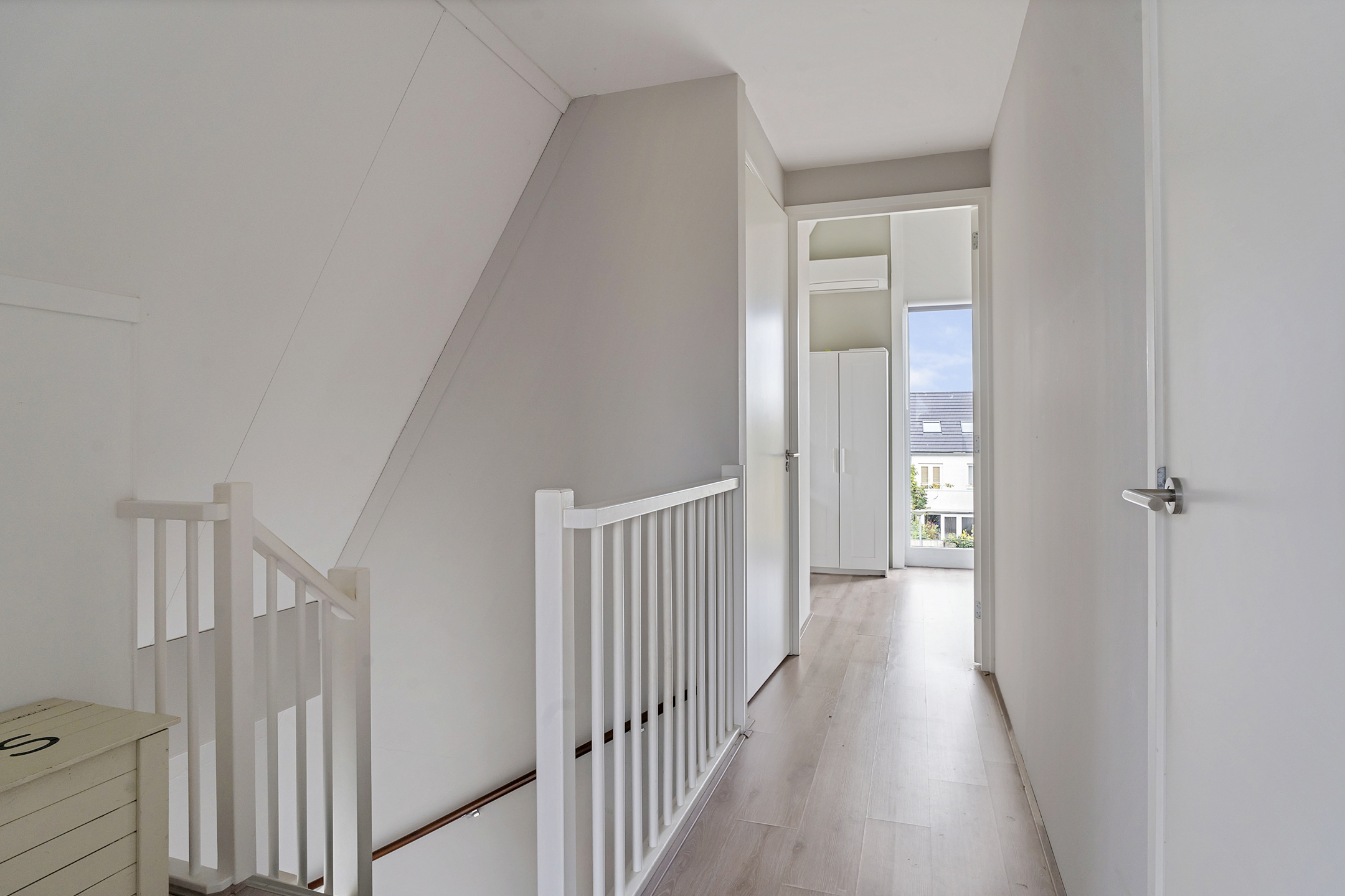 Op de zolderverdieping bevinden zich nog twee ruime slaapkamers, een tweede badkamer en een afgesloten was-/stookruimte met een hybride warmtepomp, WTW-installatie en een wasmachineaansluiting. De volledig betegelde badkamer beschikt over een wastafelmeubel en inloopdouche. Onder de schuine dakdelen zijn knieschotten geplaatst voor extra bergruimte.