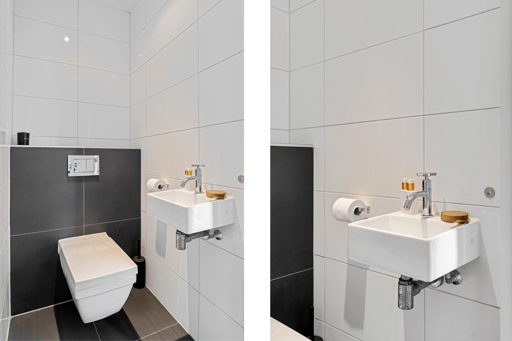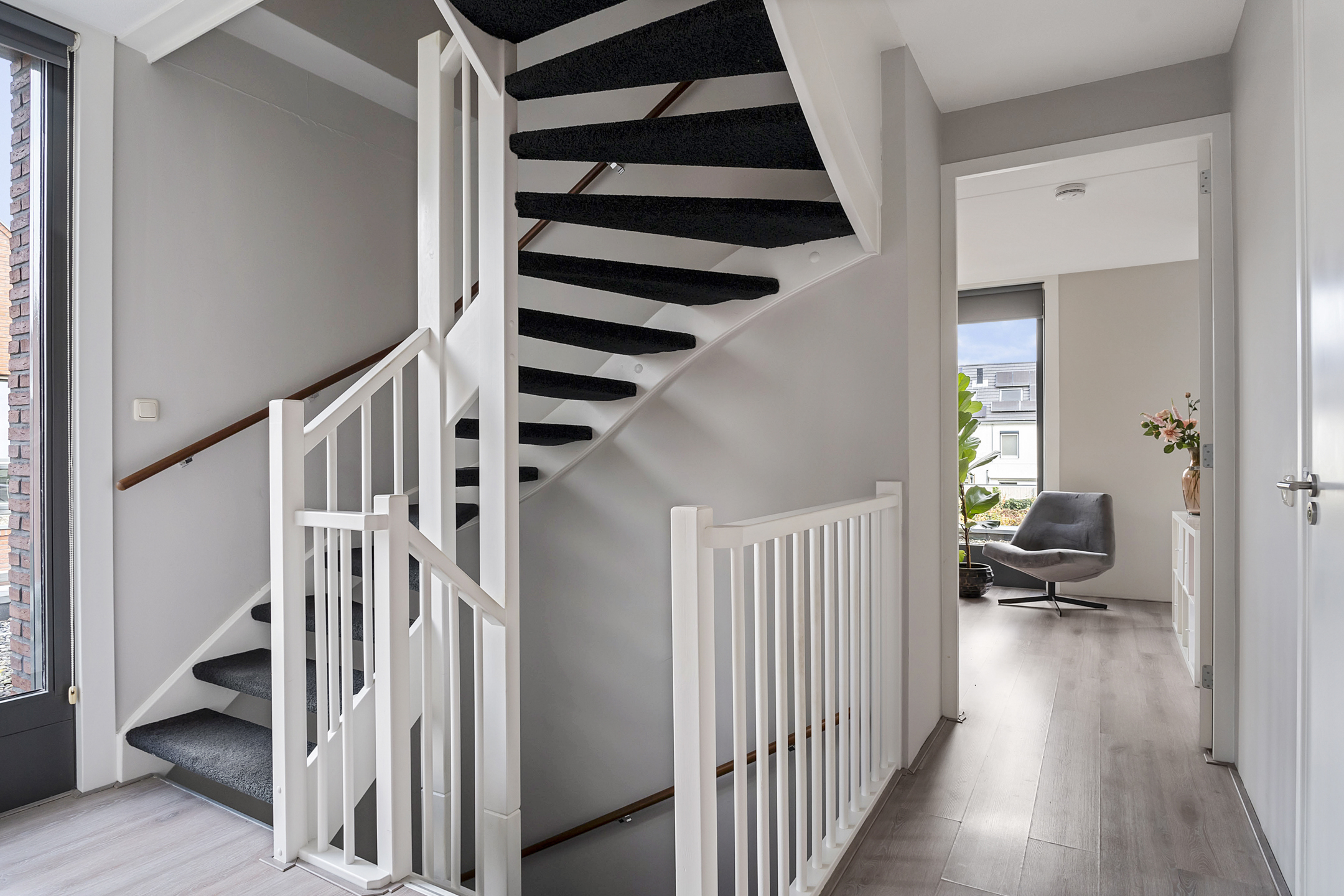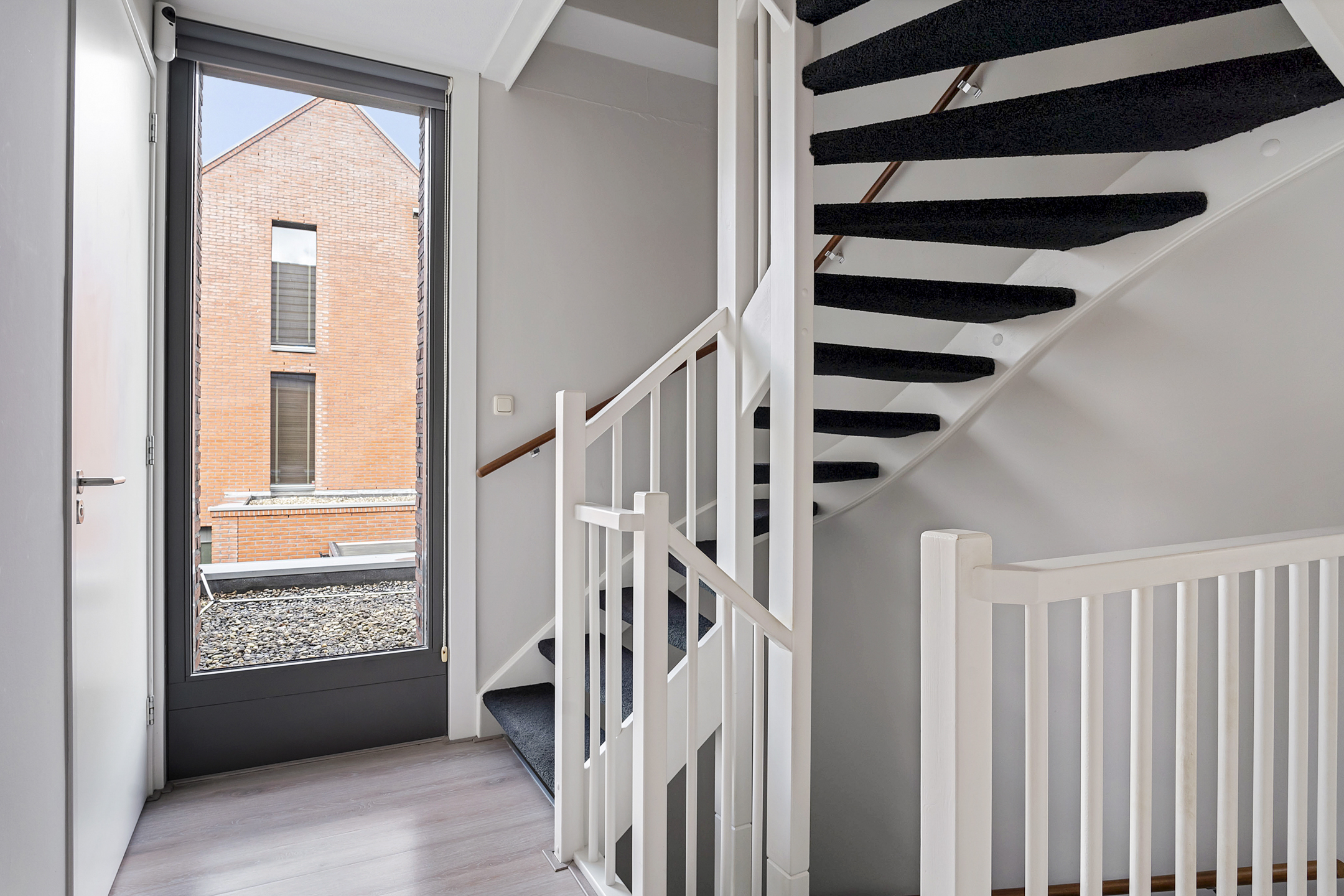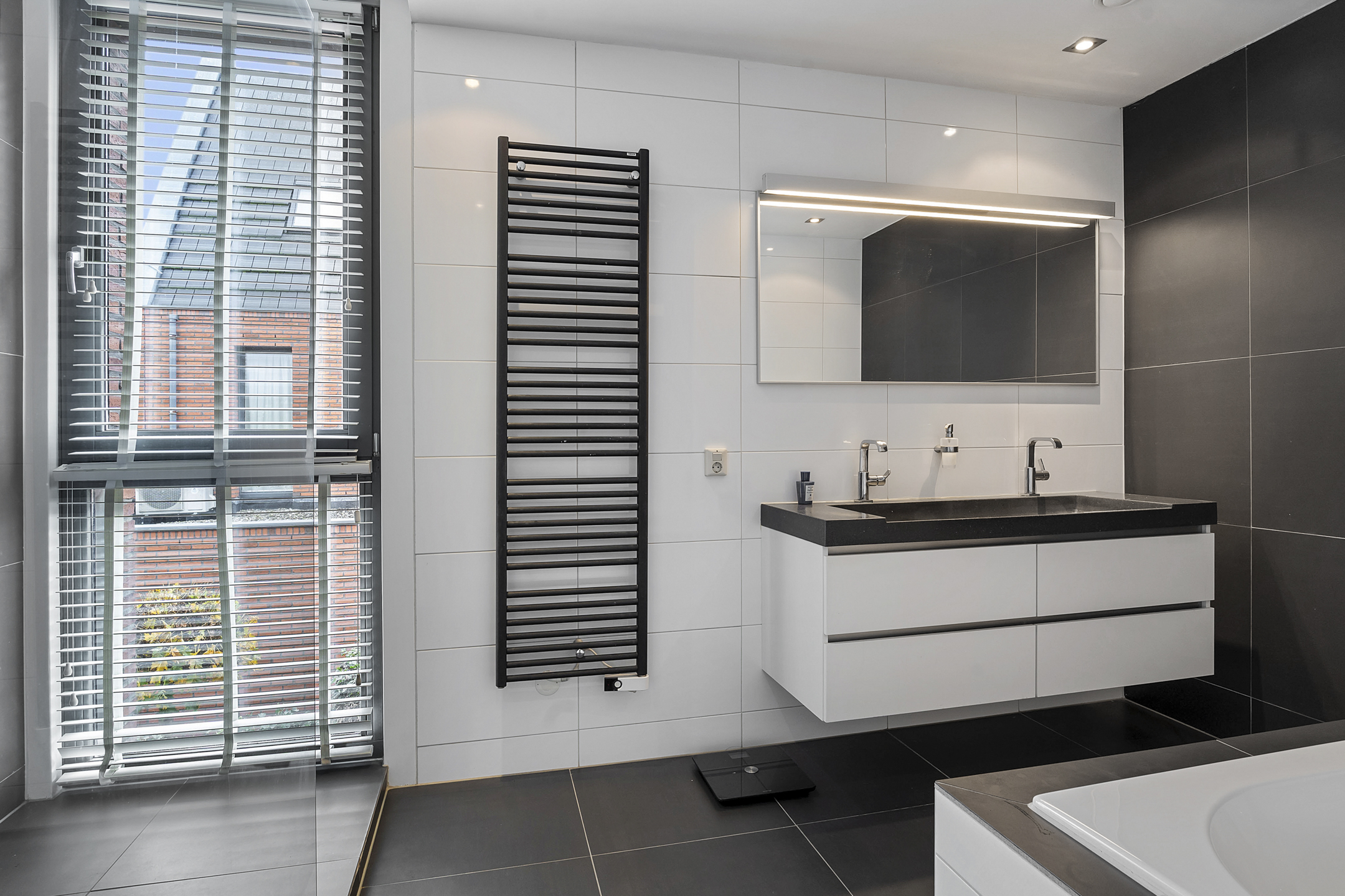 Op de zolderverdieping bevinden zich nog twee ruime slaapkamers, een tweede badkamer en een afgesloten was-/stookruimte met een hybride warmtepomp, WTW-installatie en een wasmachineaansluiting. De volledig betegelde badkamer beschikt over een wastafelmeubel en inloopdouche. Onder de schuine dakdelen zijn knieschotten geplaatst voor extra bergruimte.