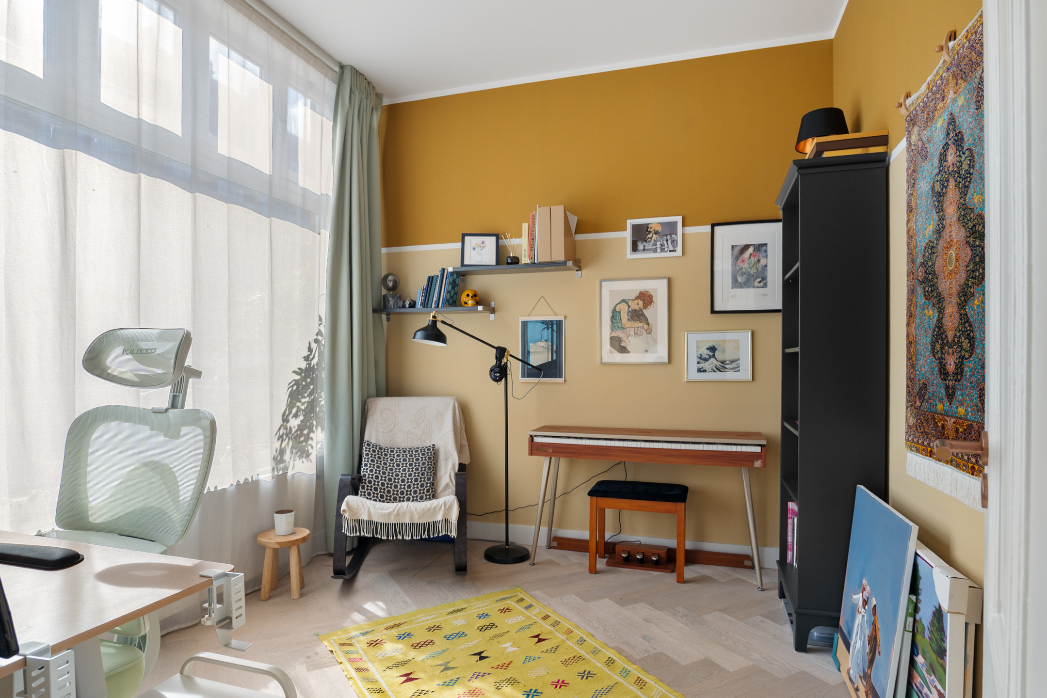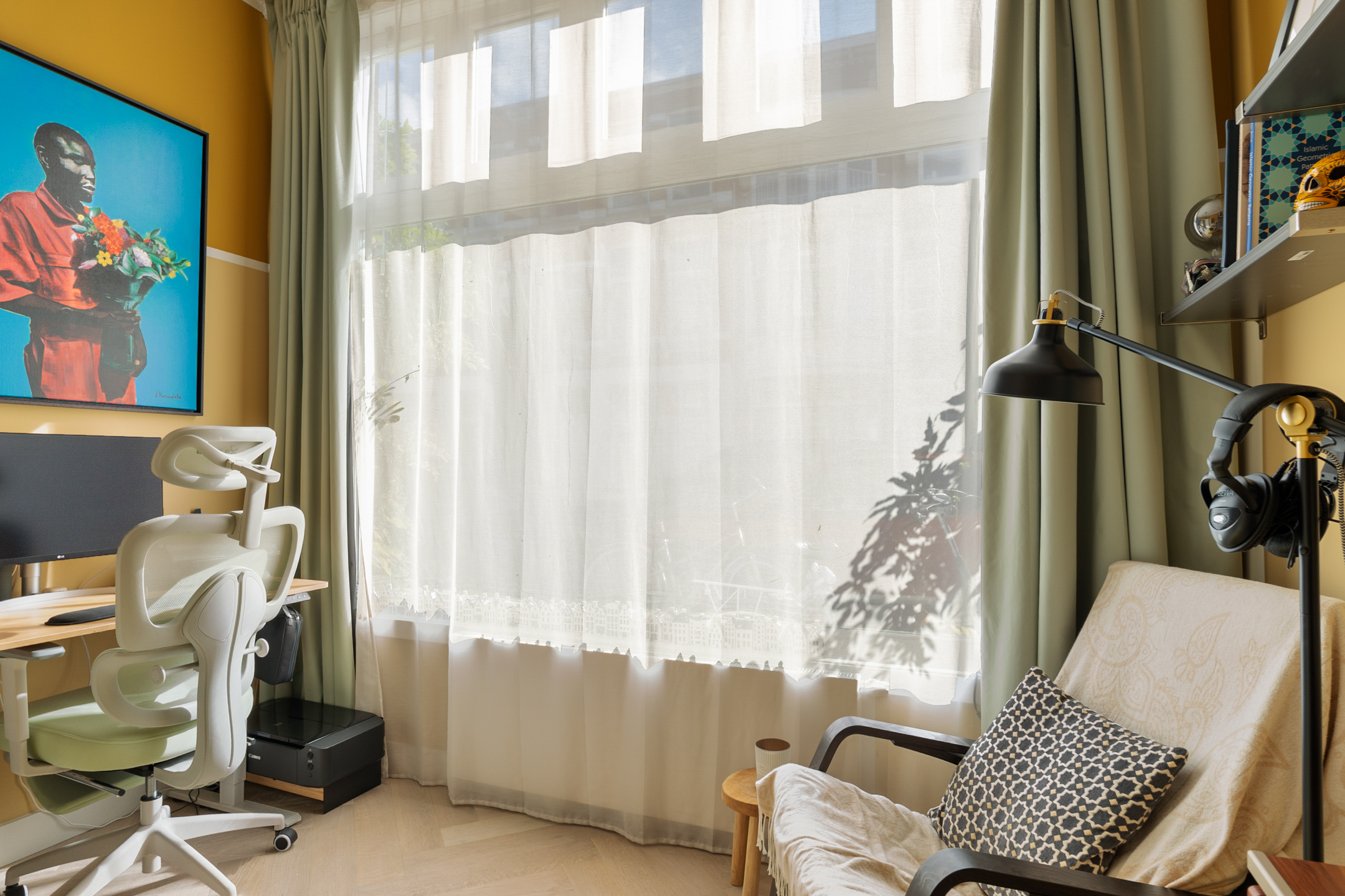 Via een schuifdeur bereik je een tweede kamer, perfect als werk- of logeerkamer met ingebouwde kast en cv-opstelling (Remeha, 2022). De derde slaapkamer ligt aan de achterzijde en beschikt eveneens over openslaande deuren naar de tuin, waardoor binnen en buiten mooi in elkaar overlopen.
