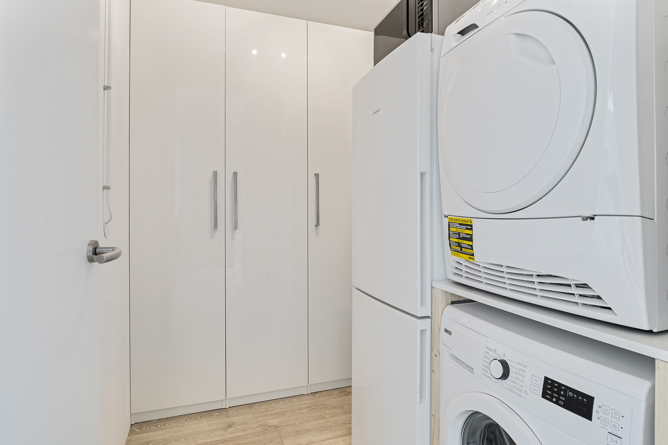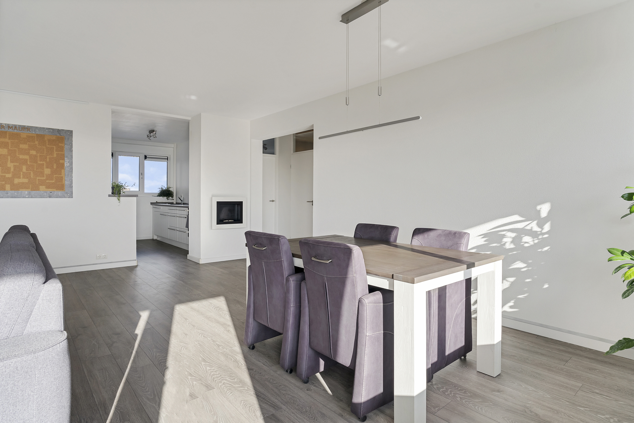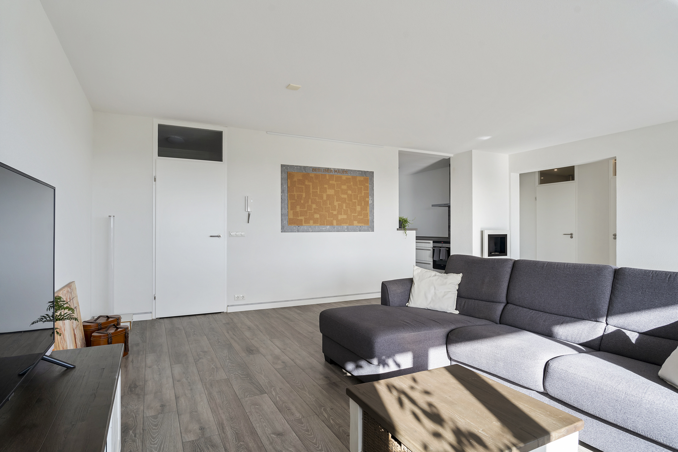 Het appartement zelf is voorzien van een mooie laminaatvloer en kunststof kozijnen met HR+++ isolatieglas, wat zorgt voor een energiezuinige en comfortabele leefomgeving. De royale woonkamer geniet van veel natuurlijk licht en biedt toegang tot het balkon dat rondom het appartement loopt, ideaal voor ontspanning en buitenleven. De keuken is uitgerust met moderne apparatuur en biedt voldoende ruimte om heerlijke maaltijden te bereiden. De badkamer is stijlvol afgewerkt met een douche en wastafel en er is een apart toilet aanwezig. Een inpandige berging biedt ruimte voor de wasmachine en droger met extra opslag aan de achterzijde van het appartement.