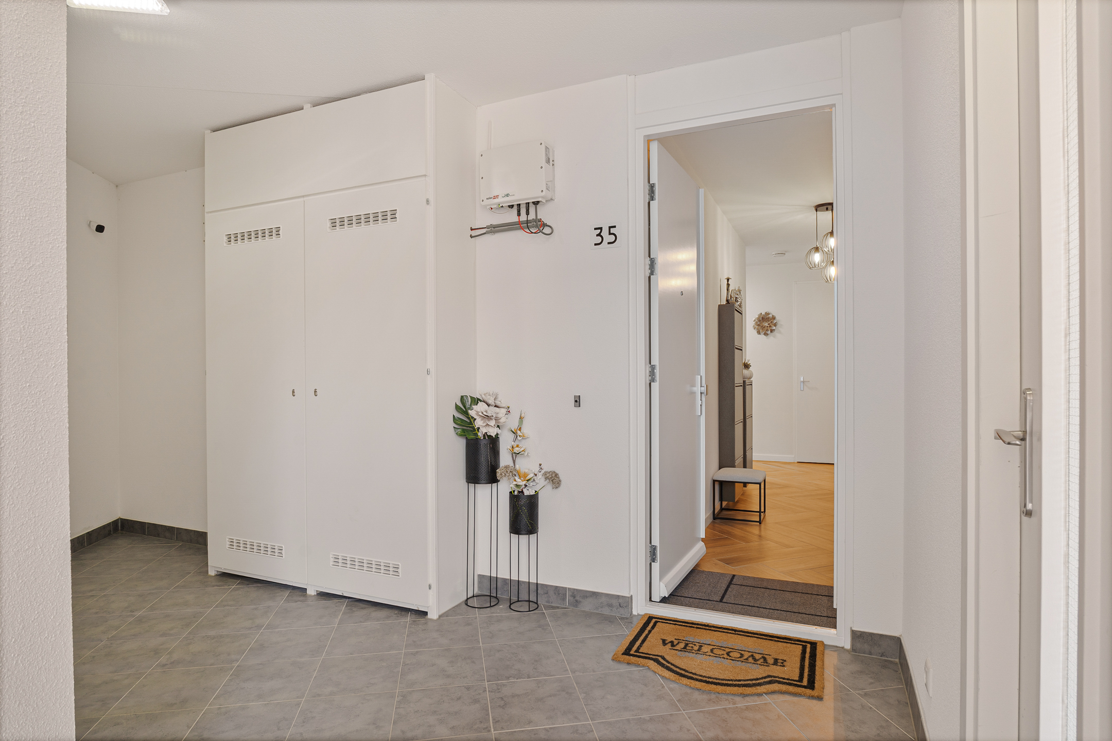 De woning is bereikbaar via een verzorgde entree. Hier bevinden zich de brievenbussen en de toegang tot de bergingen.