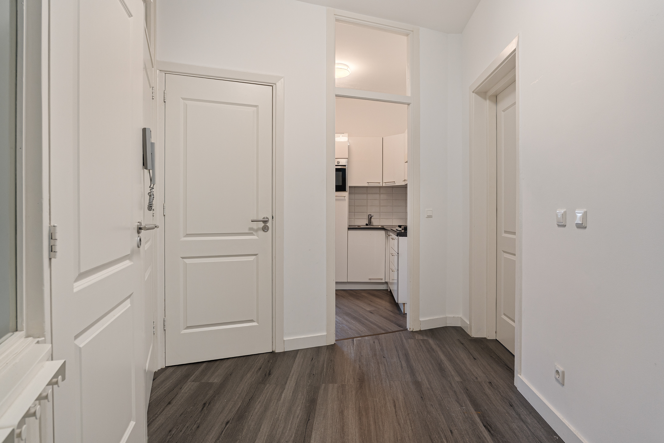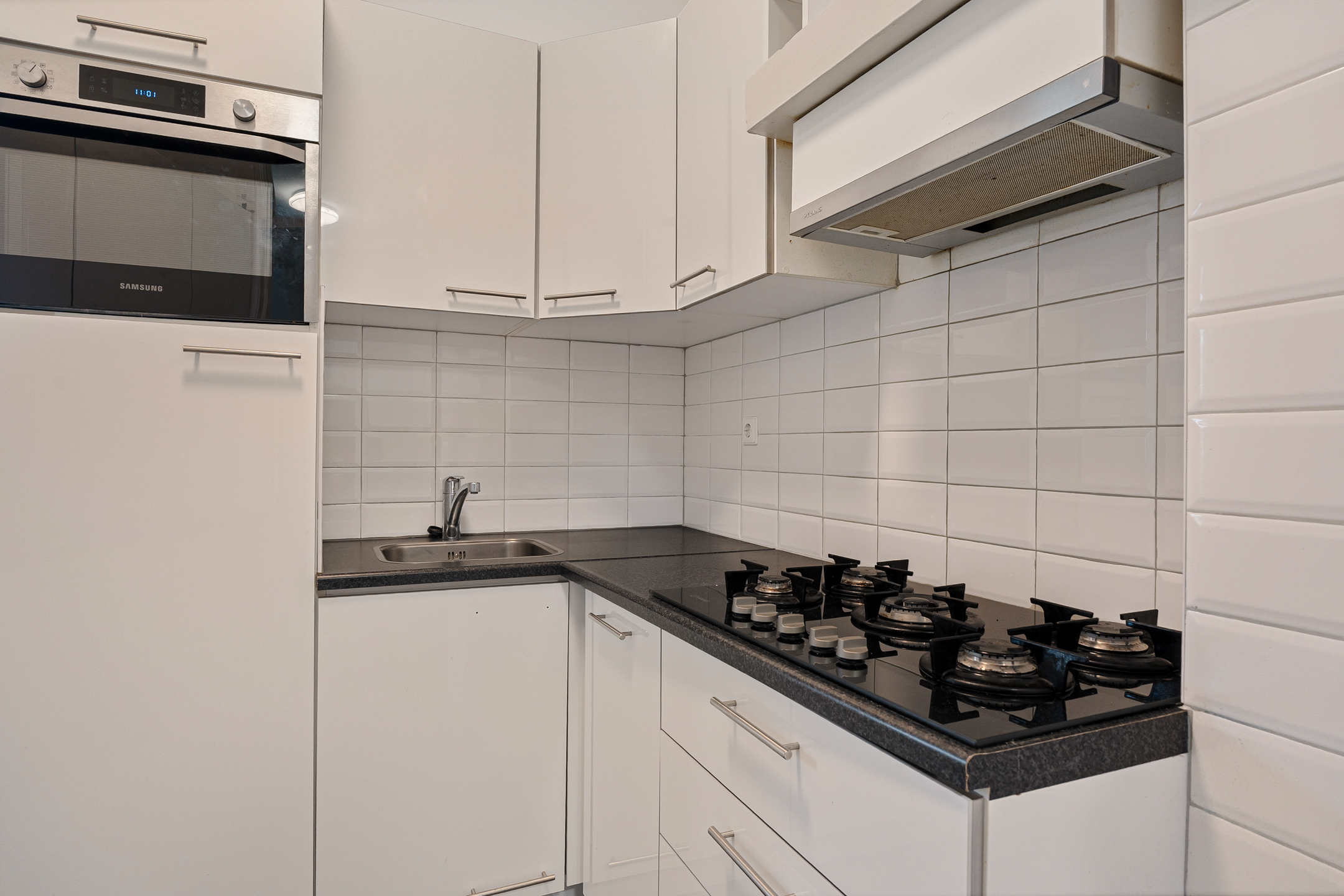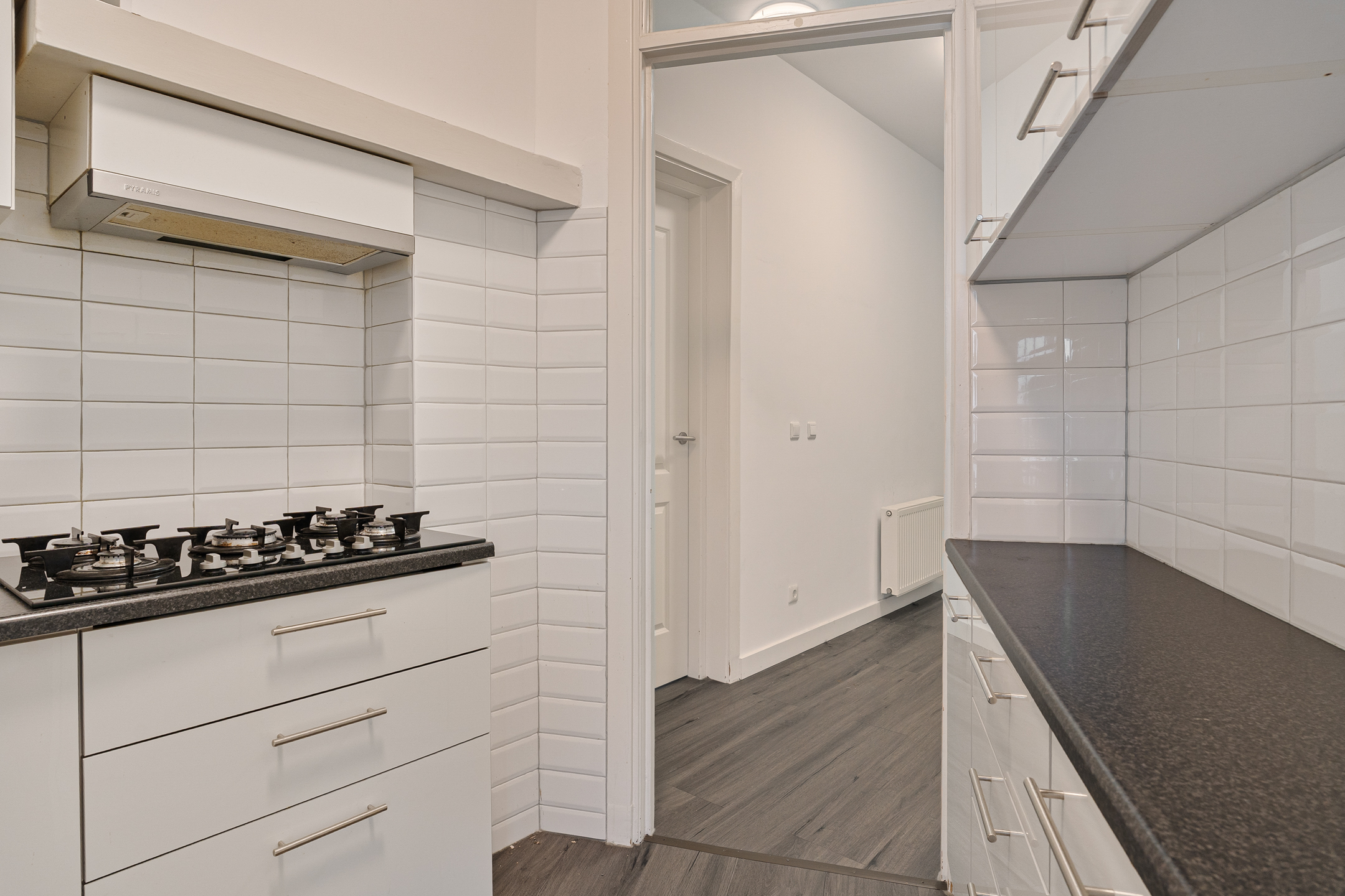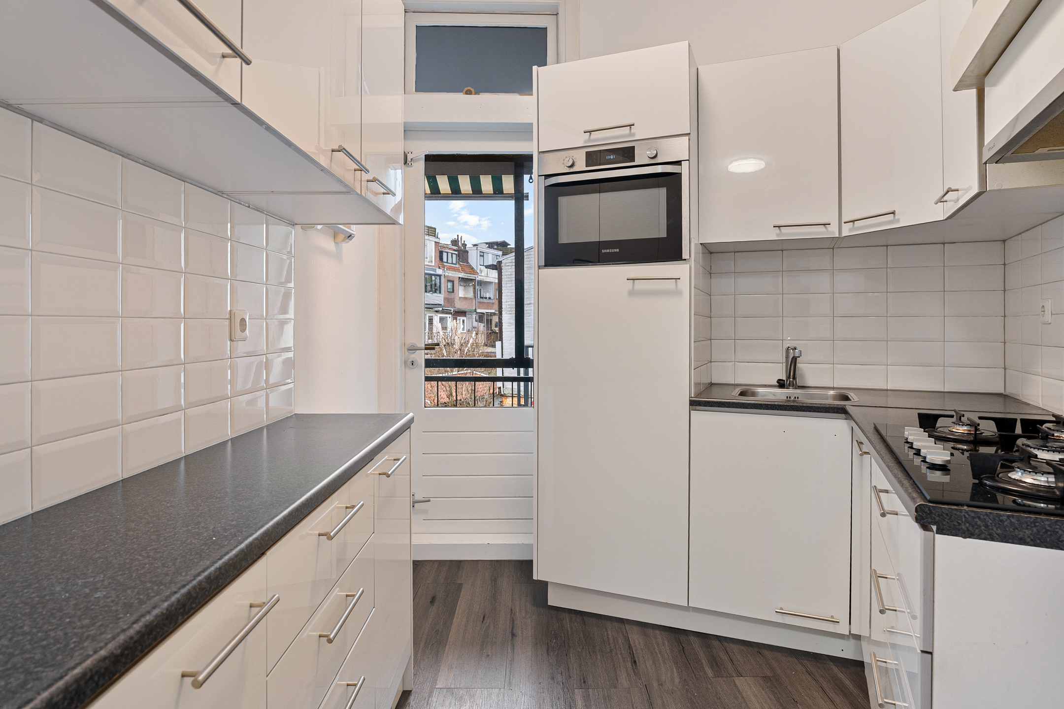 De vernieuwde keuken is opgesteld in een praktische hoekopstelling en voorzien van diverse inbouwapparatuur. Vanuit de keuken heb je toegang tot het balkon op het westen, een fijne plek om van de middag- en avondzon te genieten.