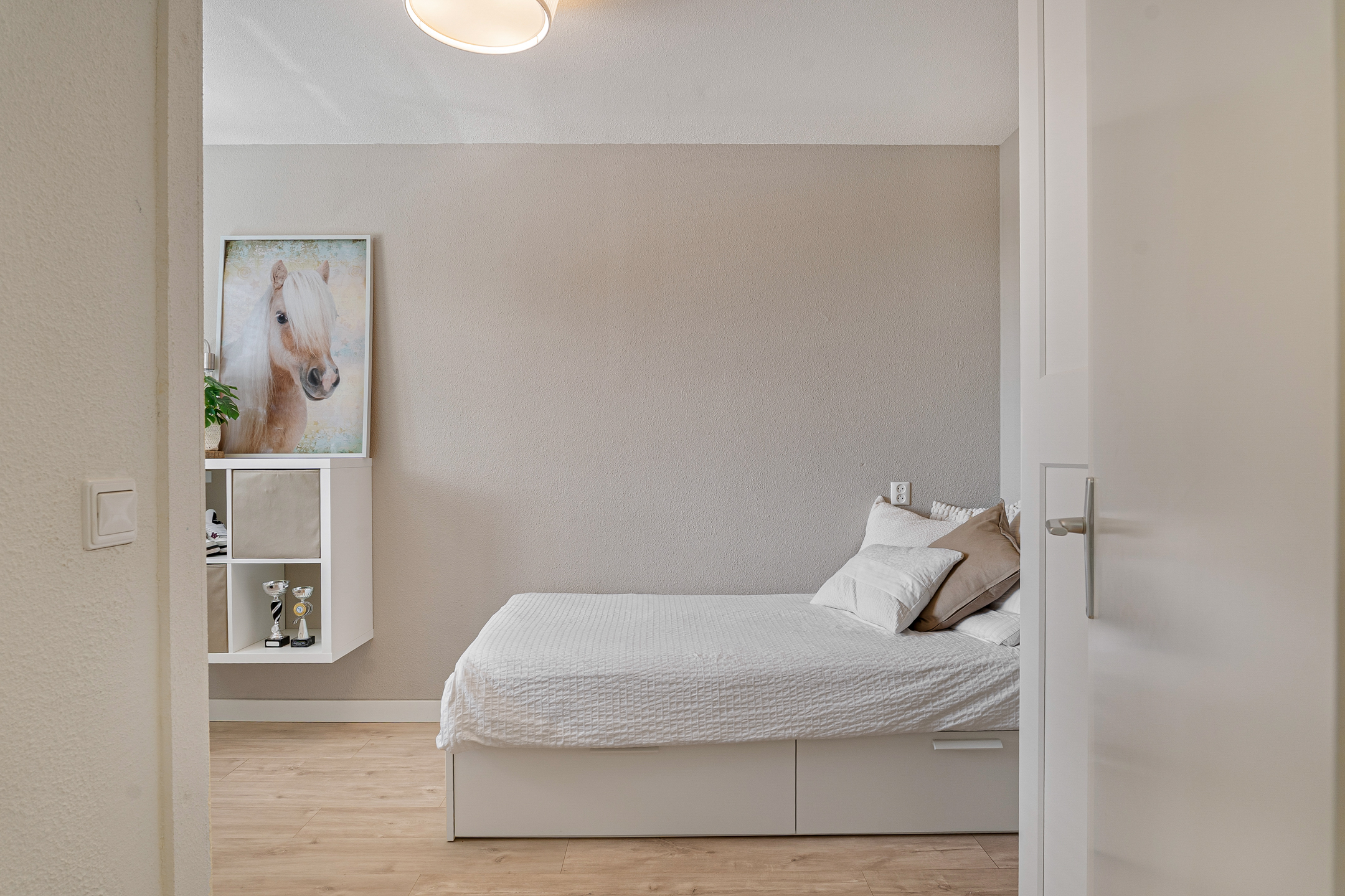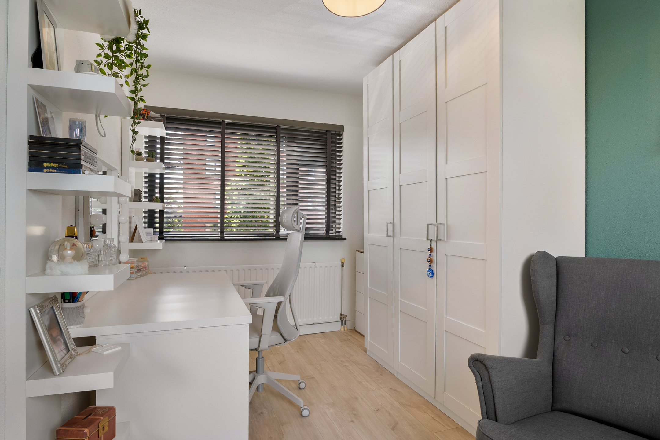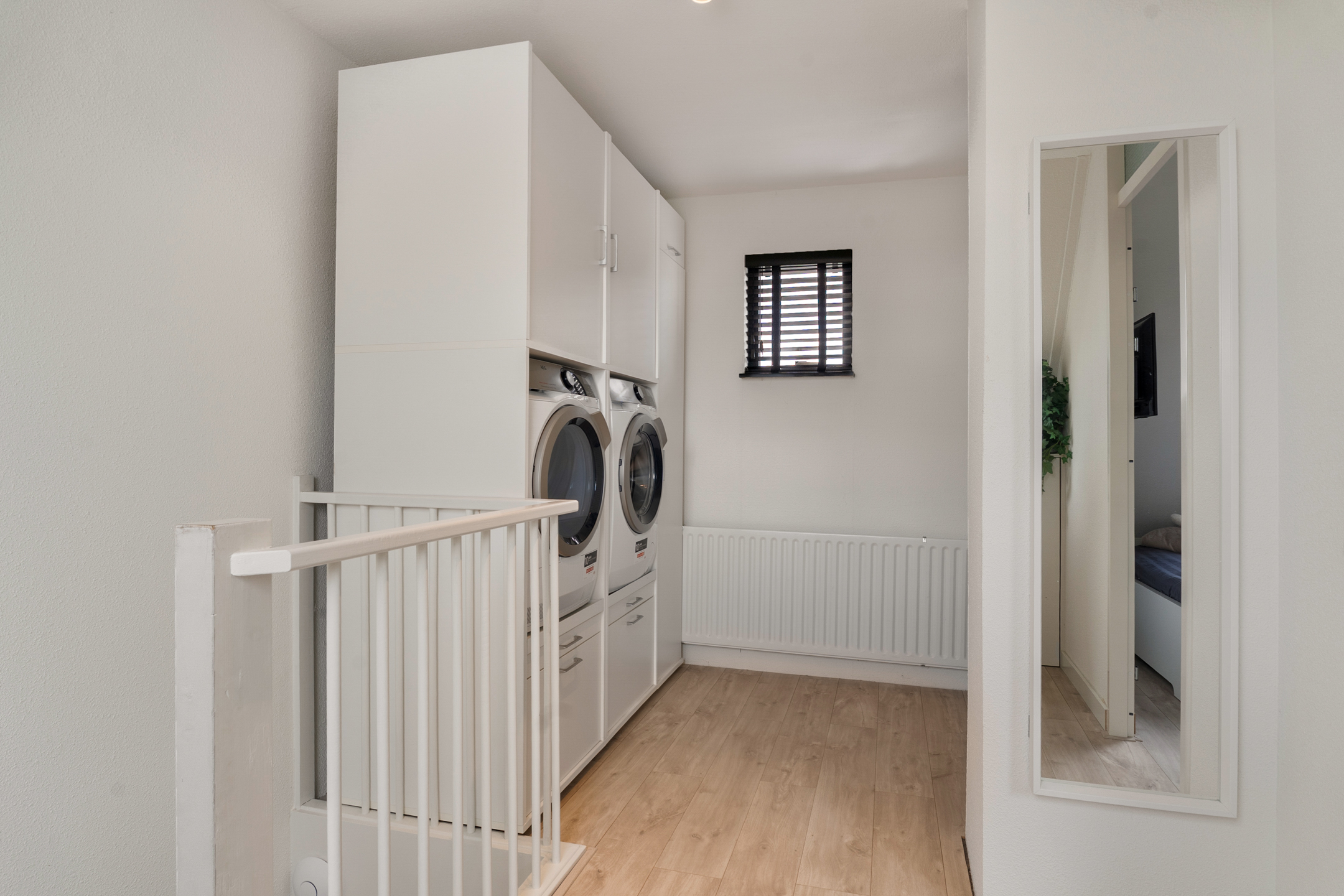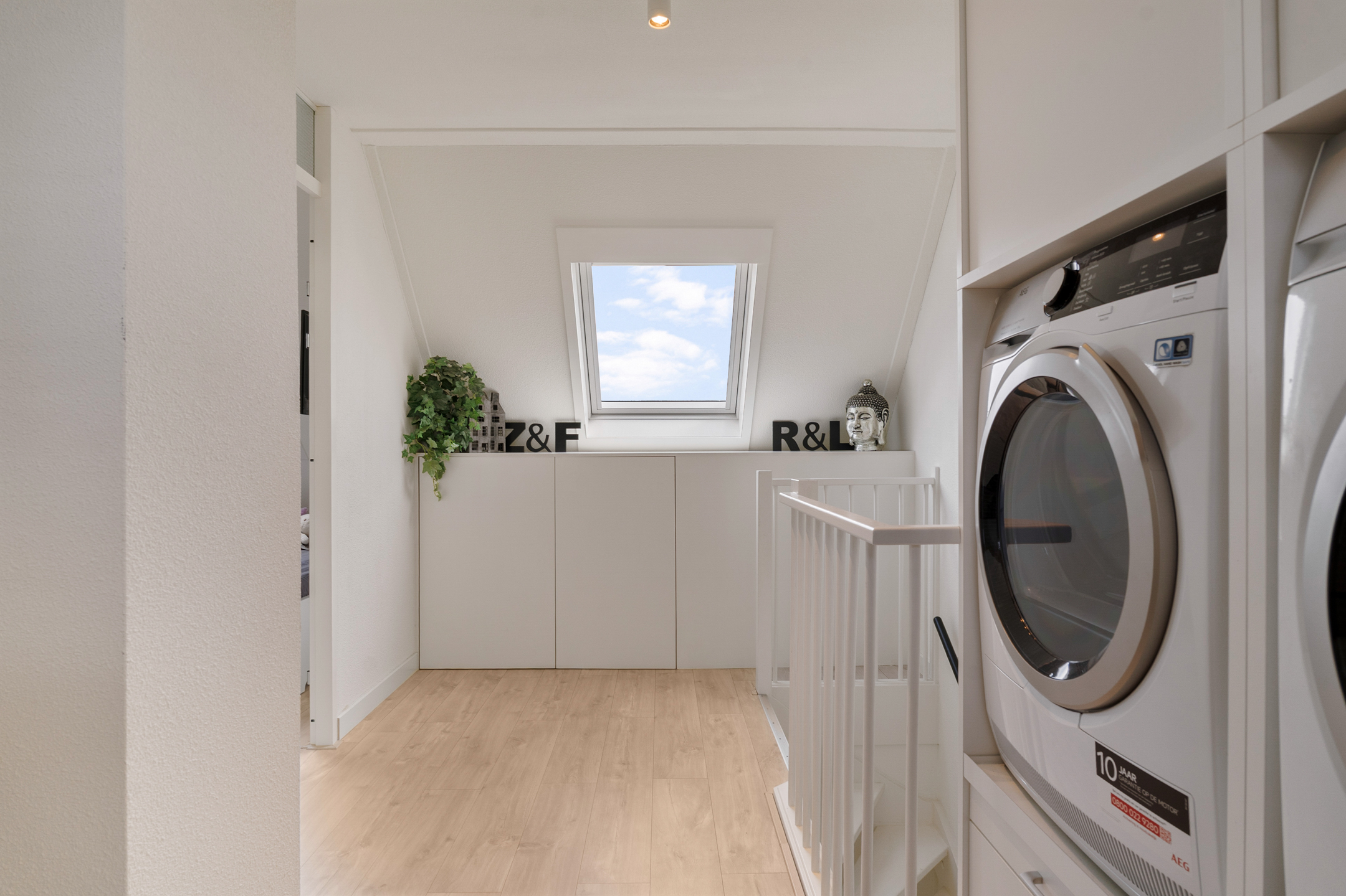 Op deze verdieping vind je de derde slaapkamer, voorzien van vaste ramen aan de voorzijde en een dakraam aan de achterzijde voor een prettige lichtinval. Op de overloop is plaats voor de Cv-ketel, mechanische ventilatiebox en aansluitingen voor wasmachine en droger.