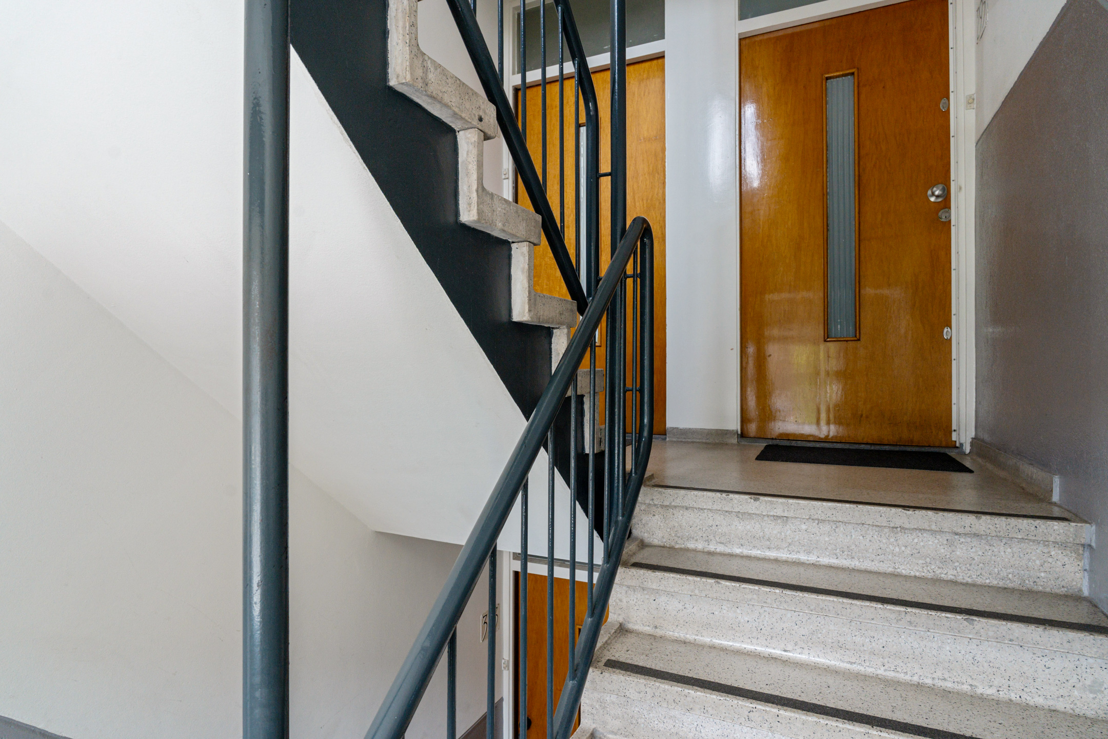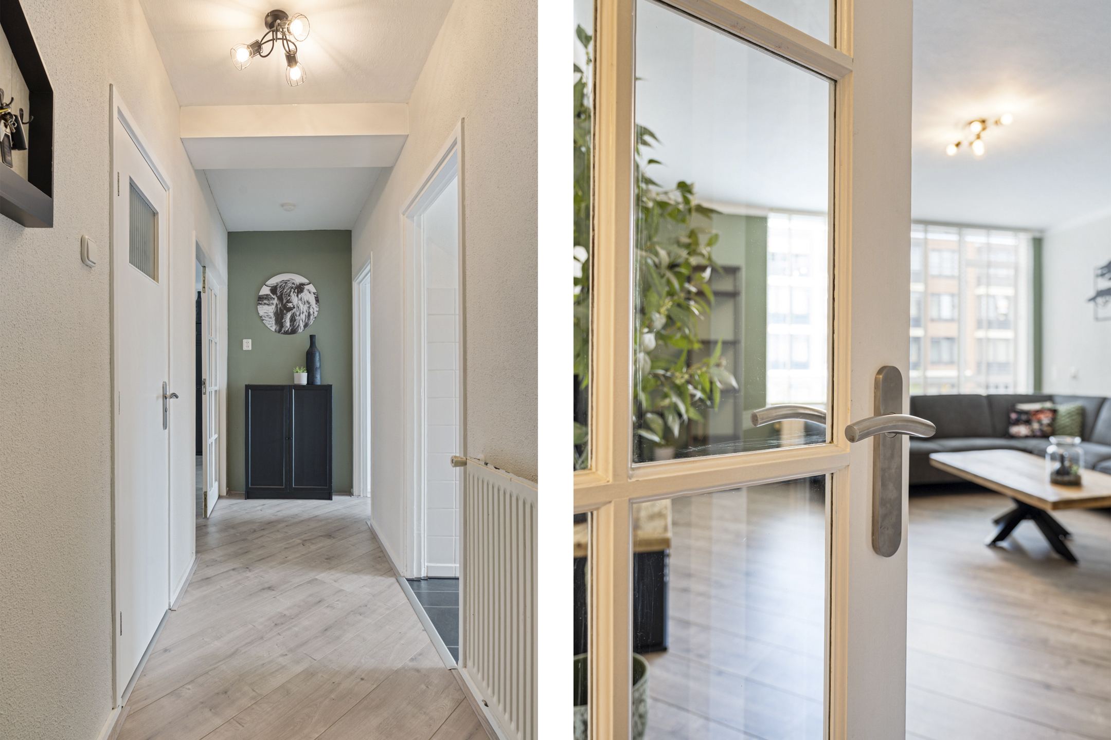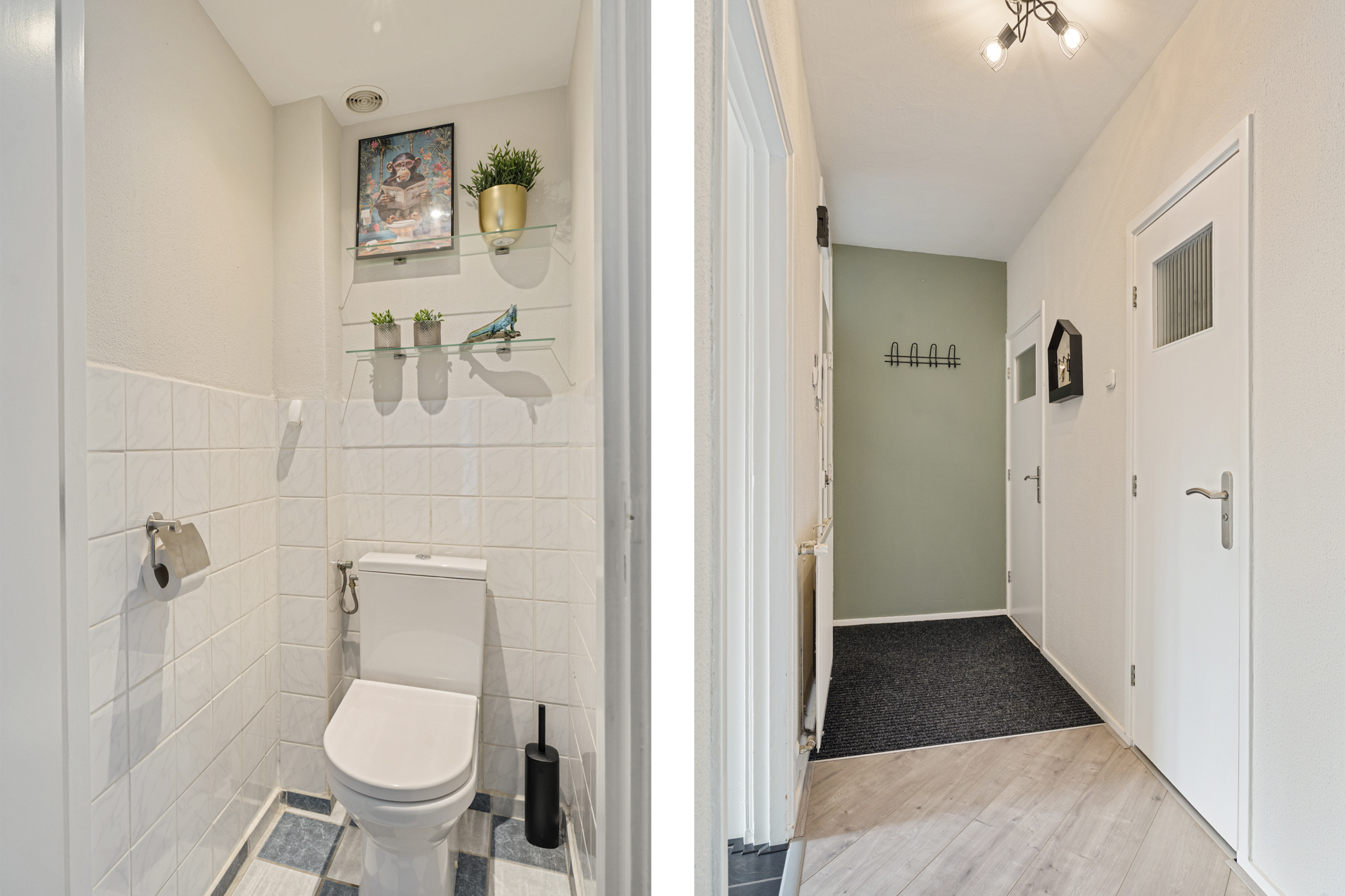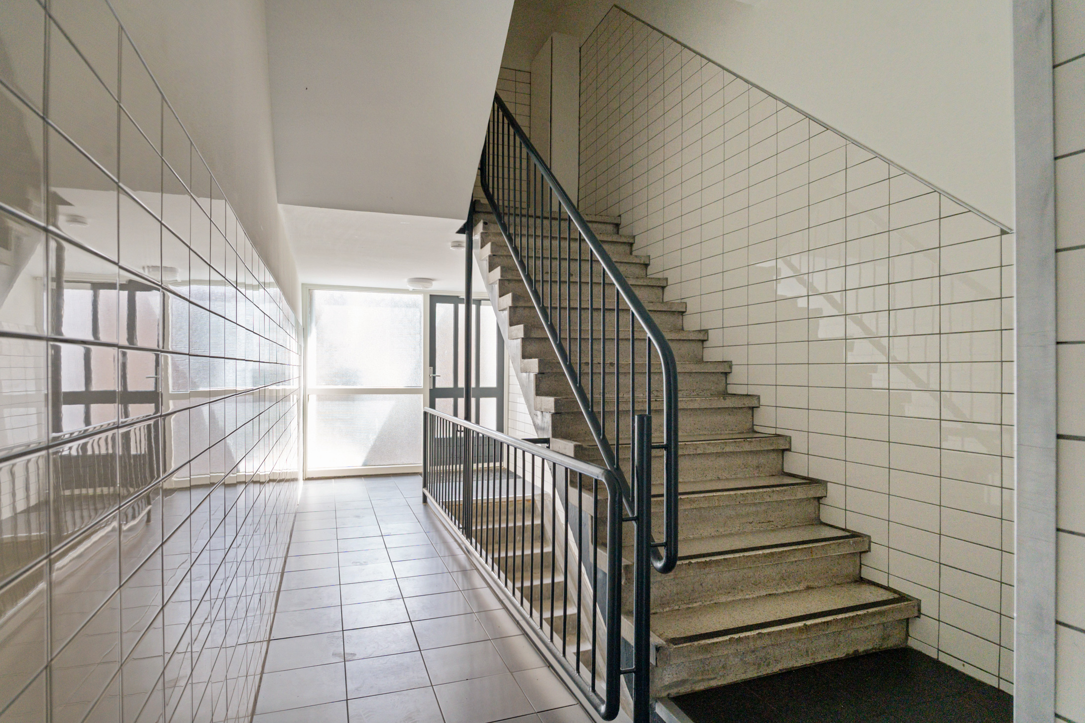 Via het afgesloten portiek bereik je de tweede etage. Je komt binnen in een ruime hal die toegang geeft tot alle vertrekken, waaronder het separate toilet.