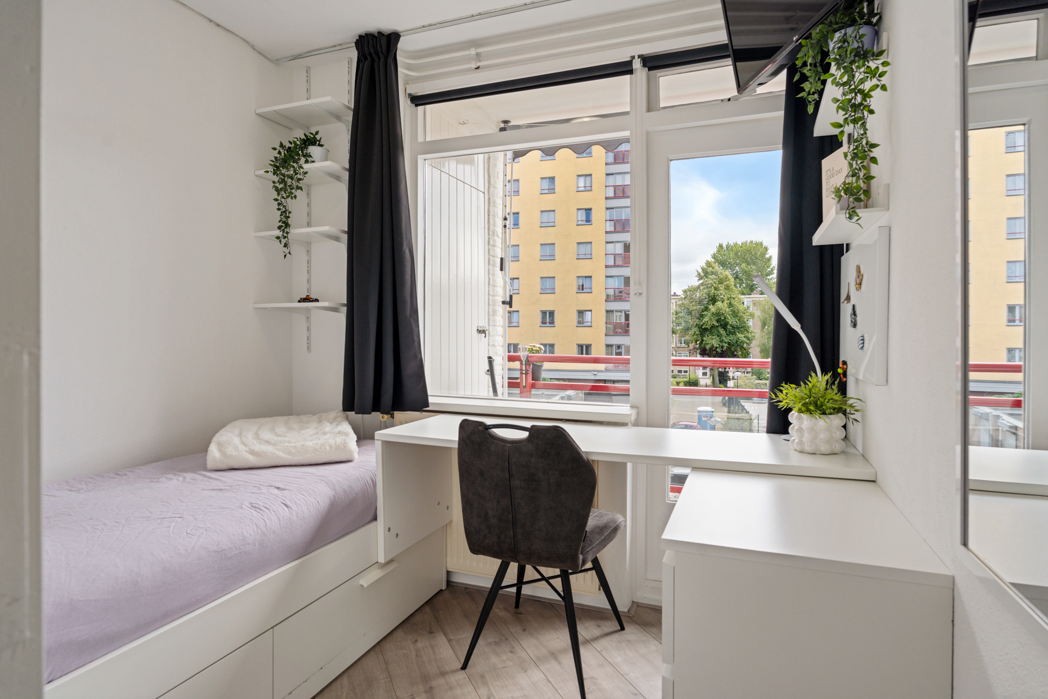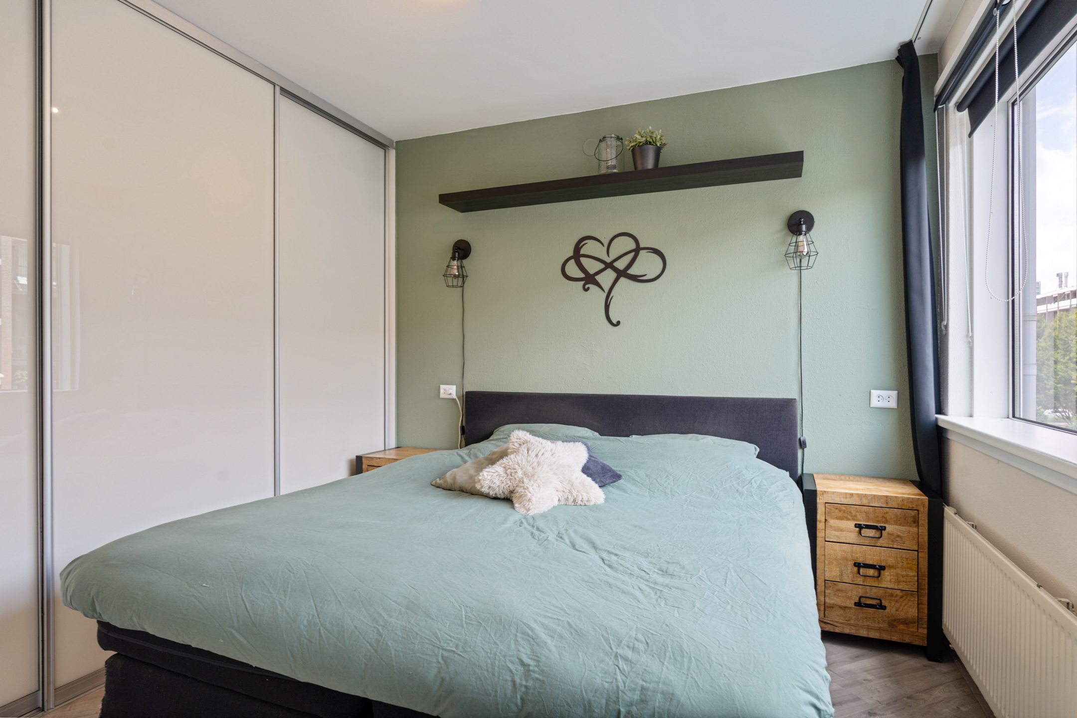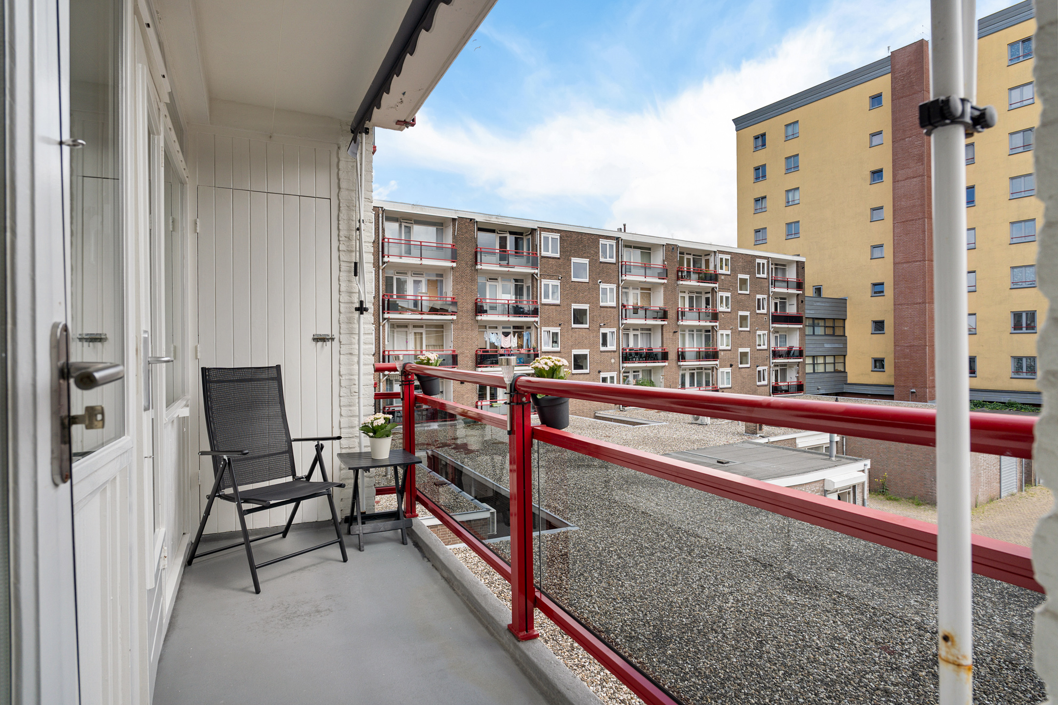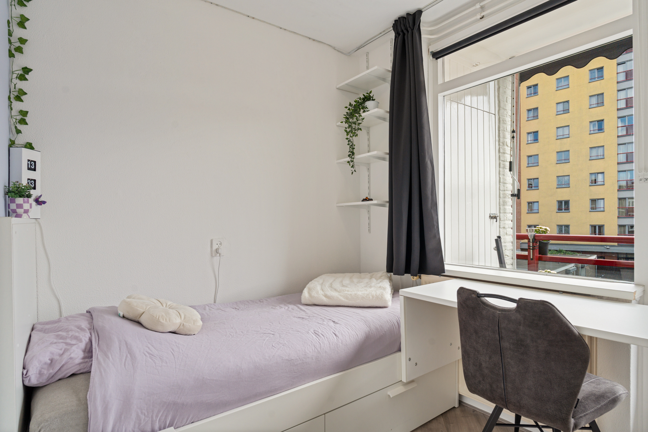 Vanuit deze kamer stap je zo het zonnige balkon op. Dit balkon beschikt over een vaste kast voor extra opbergruimte.