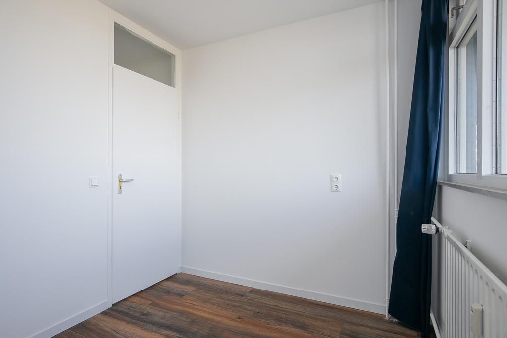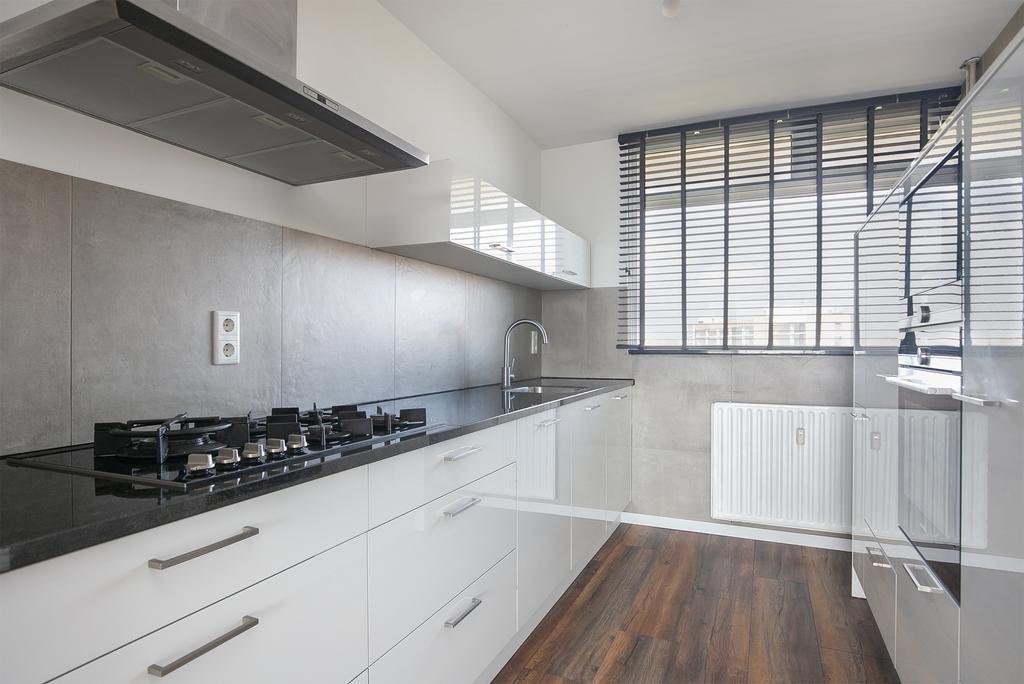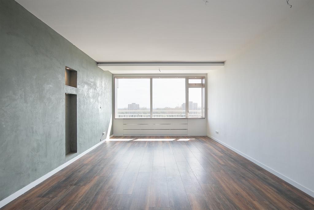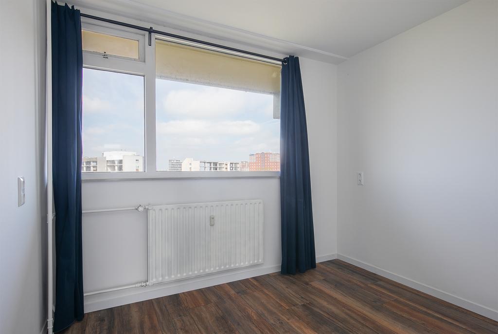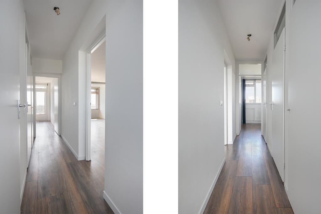 Op de tiende verdieping is de entree van dit moderne appartement te vinden. Vanuit de hal heb je toegang tot de meterkast en kan je doorlopen naar de ruime woonkamer. Aan de voorzijde van de woning ligt de vernieuwde keuken. Deze is voorzien van hoge kwaliteit inbouw apparatuur van Siemens, Bosch en Atag: Losse vriezer en koelkast, magnetron, oven (met zelfreiniging), vaatwasser, gaskookplaat met wokbrander en afzuigkap met hoogvermogen. De badkamer en wc zijn compleet vernieuwd en gemoderniseerd met luxe sanitair van o.a. Villeroy en Bosch. Aan de voorzijde van de woning ligt slaapkamer 1. Aan de achterzijde vind je slaapkamer 2. Deze kamer verleent toegang tot het woningbrede balkon.