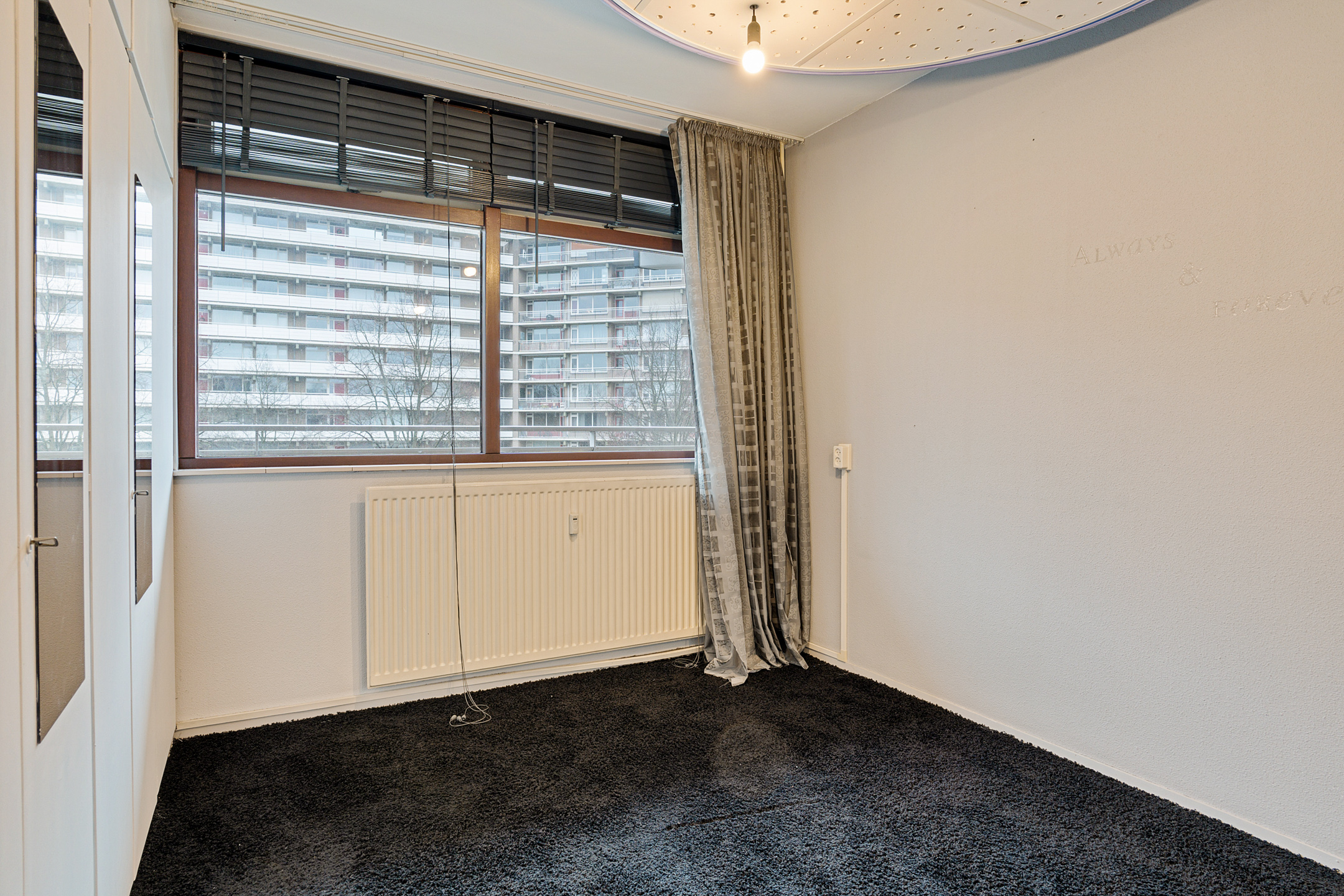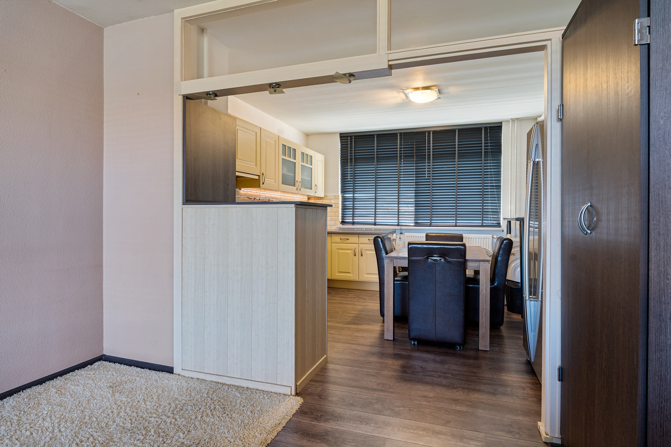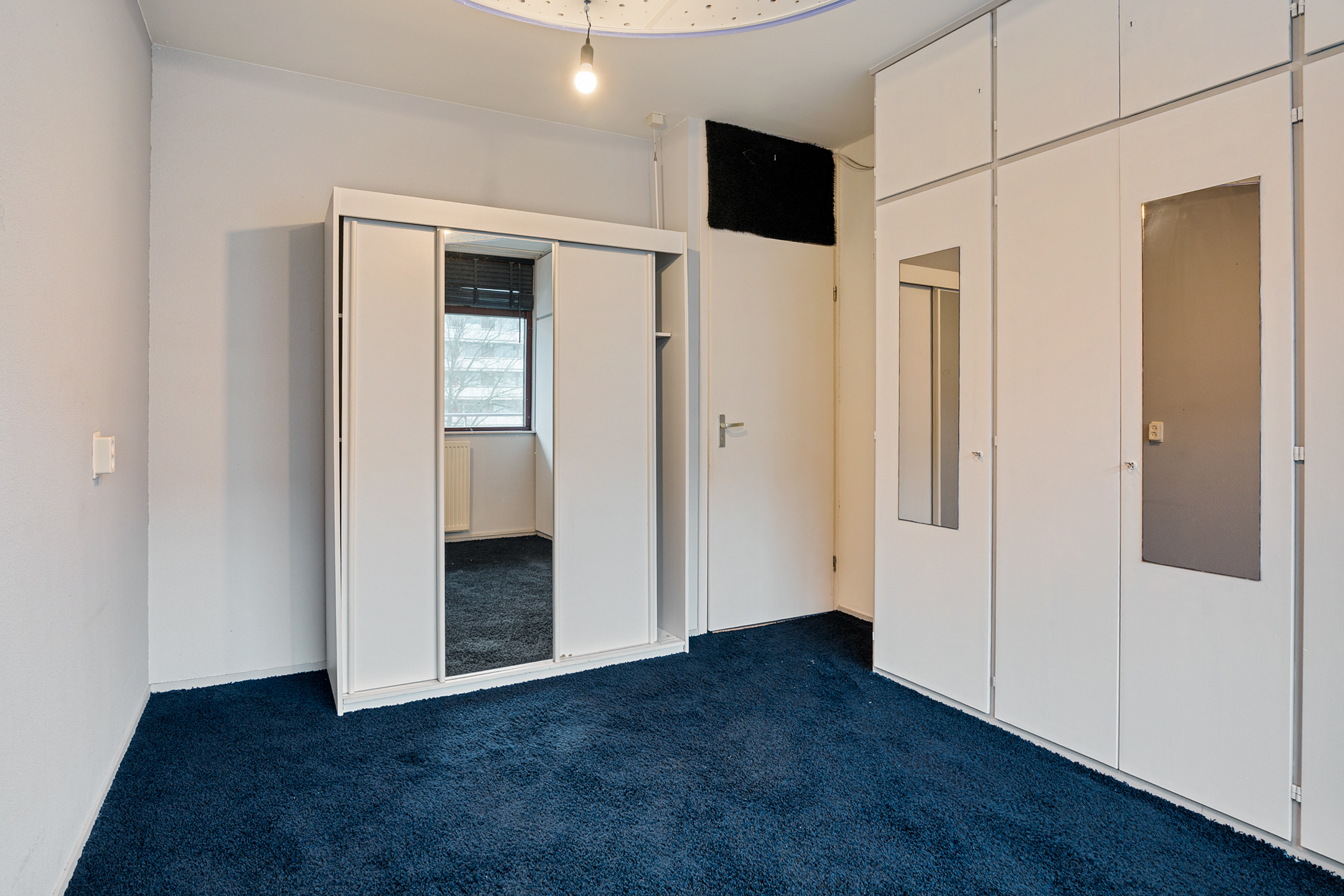 Via de galerij bereik je de entree van het appartement op de vijfde verdieping. De ruime hal geeft toegang tot alle vertrekken. Aan de voorzijde bevindt zich de eerste slaapkamer, ideaal als werk-, logeer- of kinderkamer. Aan de achterzijde ligt de tweede, royale slaapkamer.