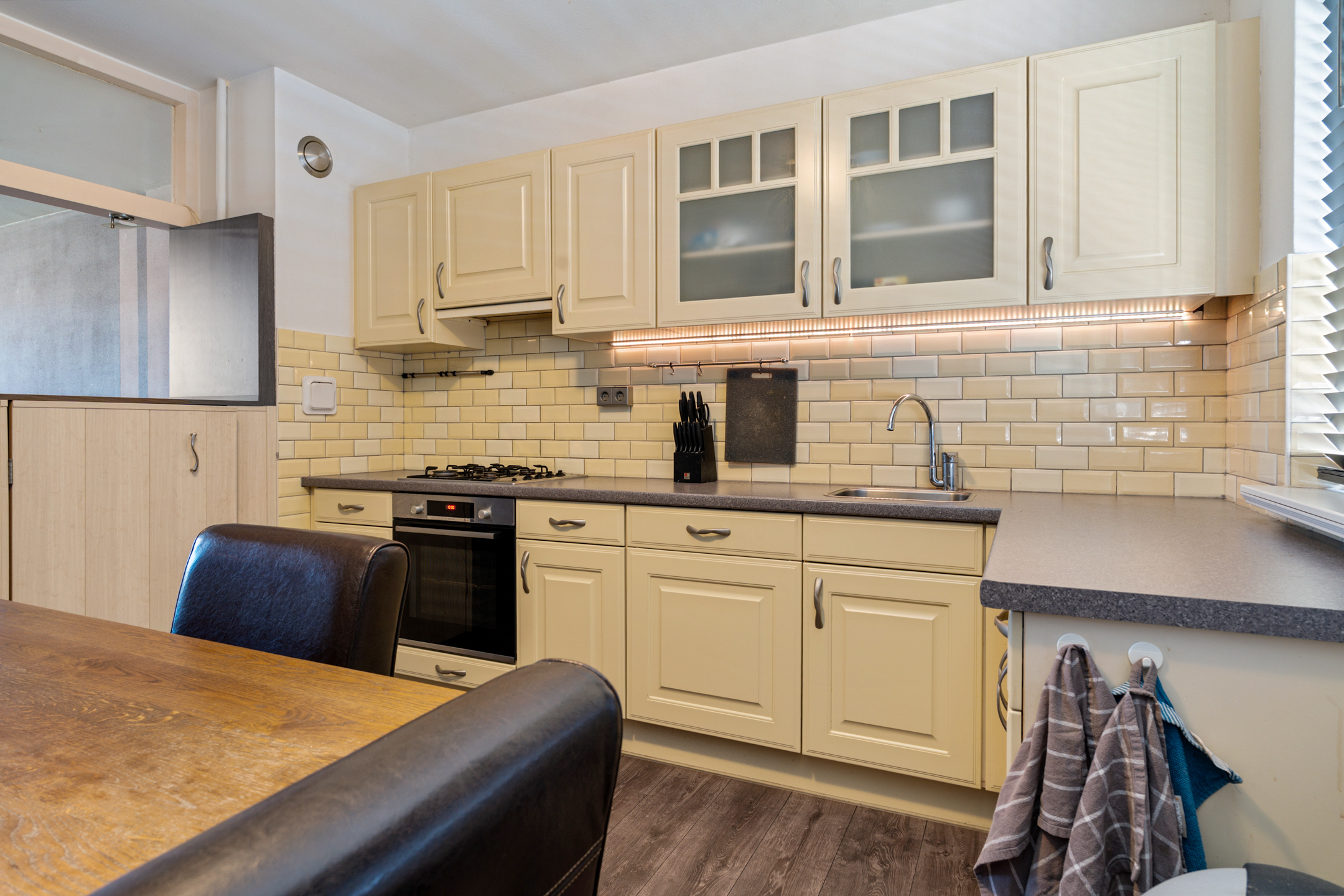 De lichte woonkamer vormt het hart van de woning en biedt direct toegang tot het woningbrede balkon op het zuidoosten, waar je kunt genieten van een heerlijk vrij uitzicht. De open eetkeuken ligt aan de voorzijde en maakt het geheel tot een fijne, ruime leefruimte.