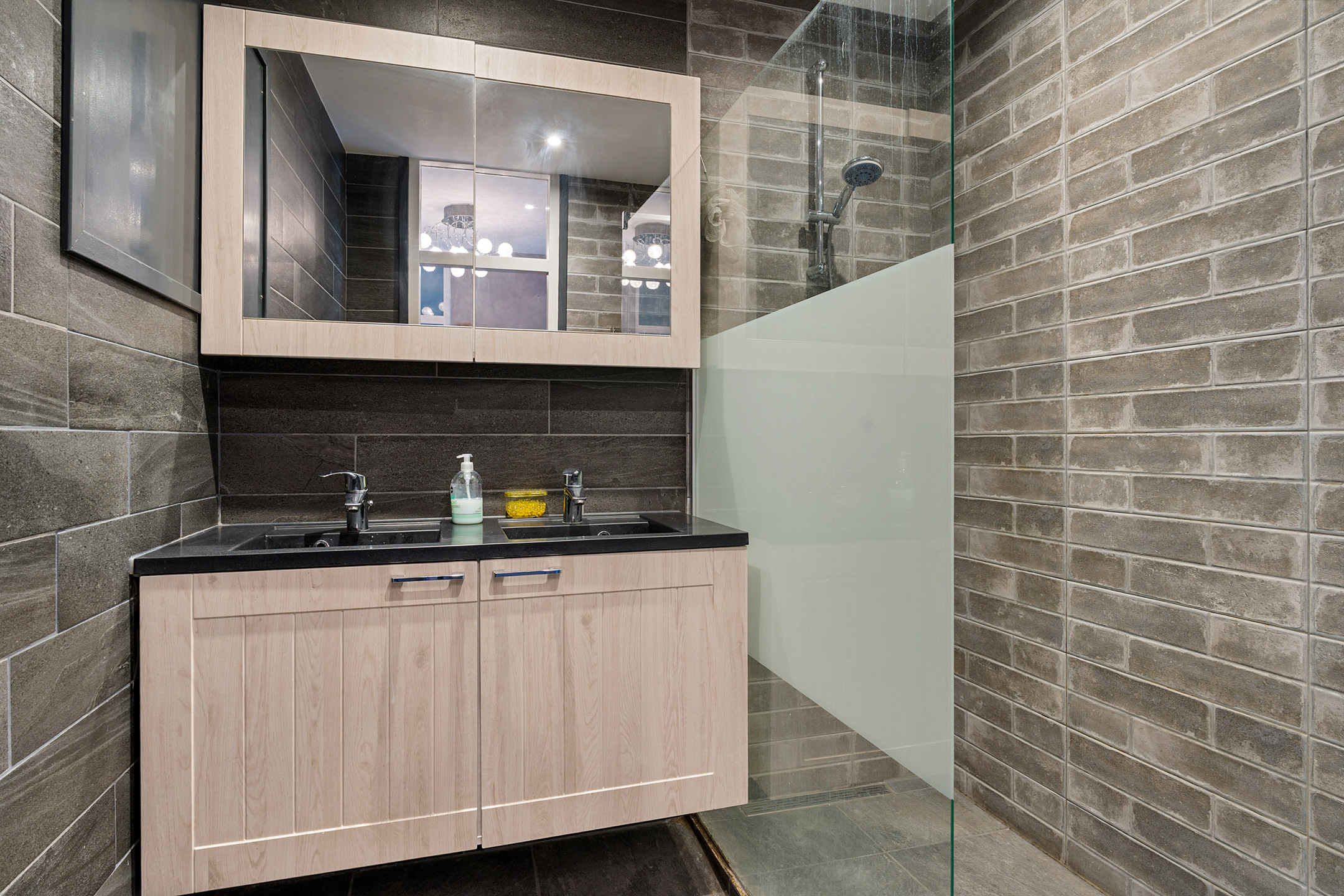 + Moderne badkamer met ruime douche