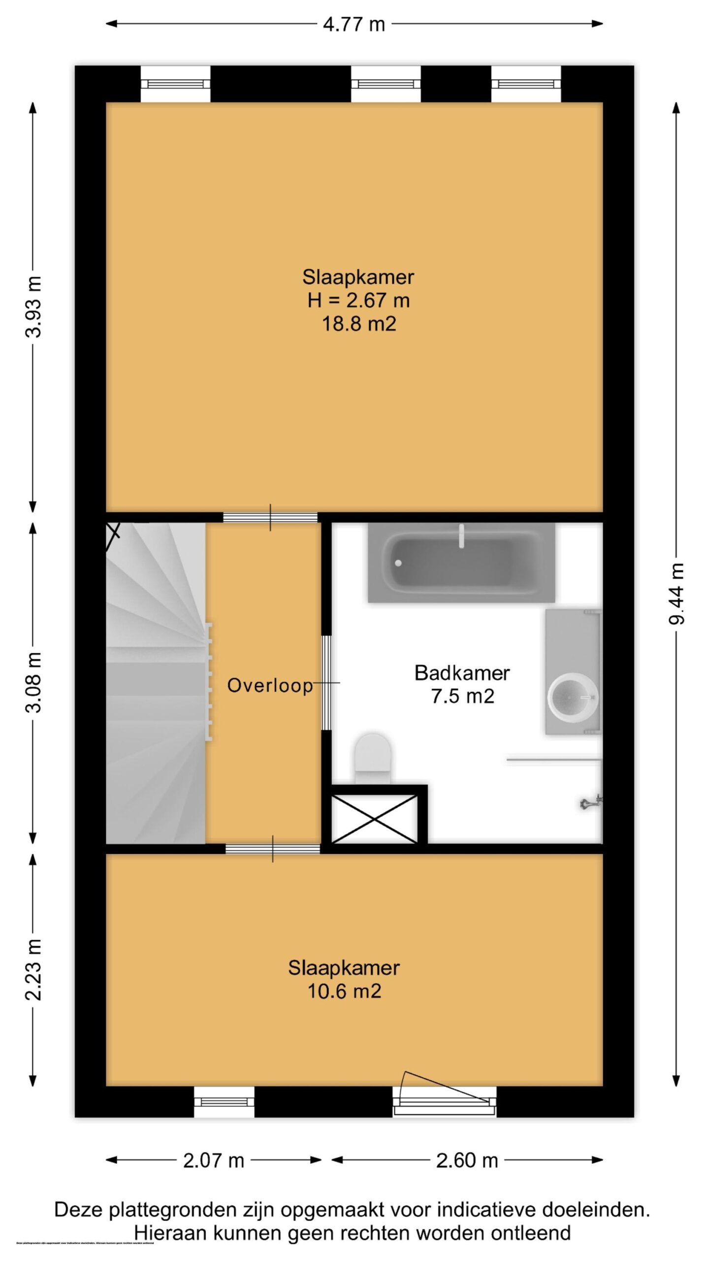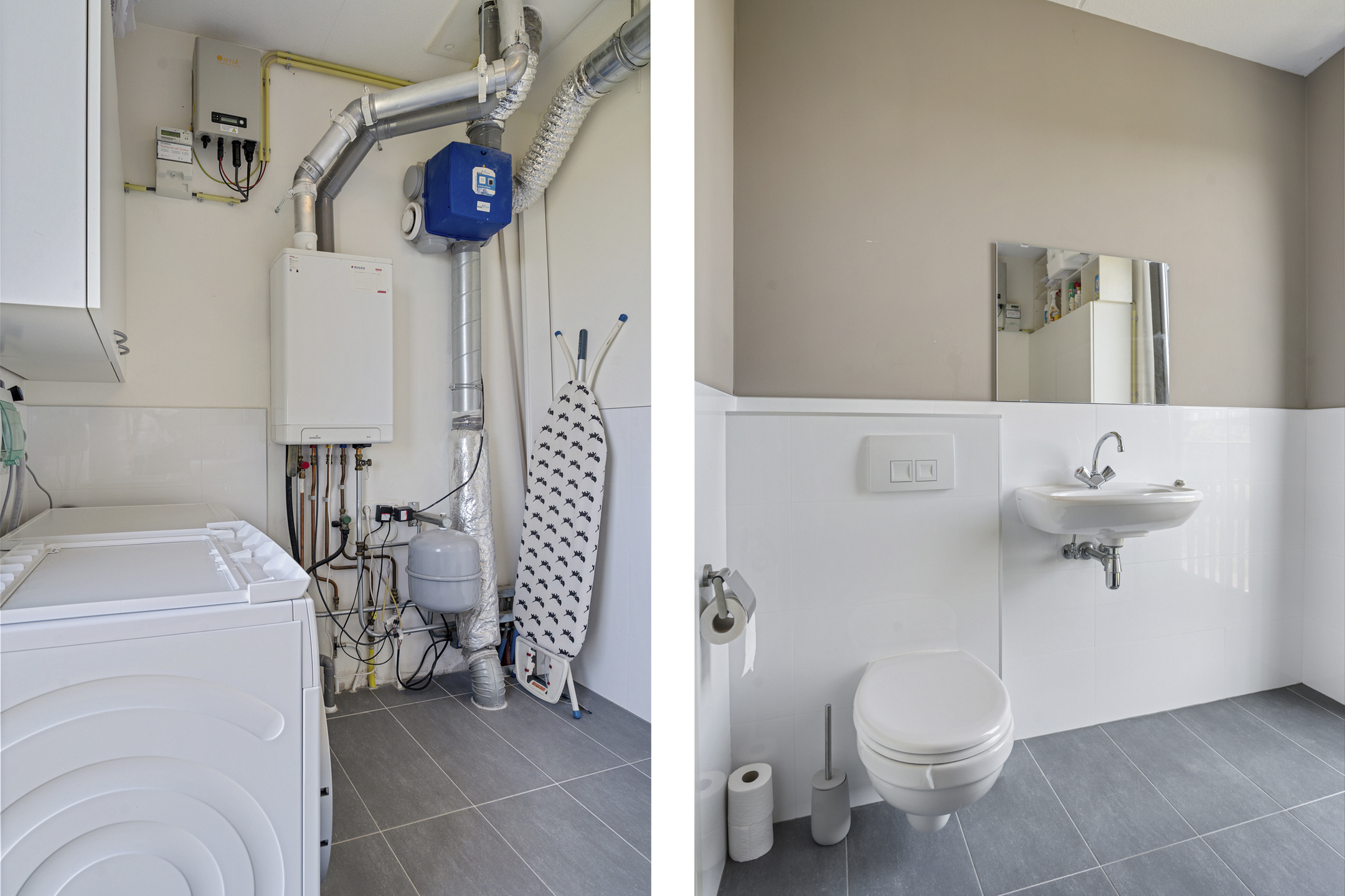 De tweede verdieping biedt nog eens twee kamers: een ruime slaapkamer en een multifunctionele vierde kamer die je eenvoudig kunt gebruiken als werkkamer, logeerkamer of extra slaapkamer. In de technische ruimte vind je de cv-ketel (Intergas, 2014), aansluitingen voor de wasmachine en droger, een wastafel en een derde toilet.