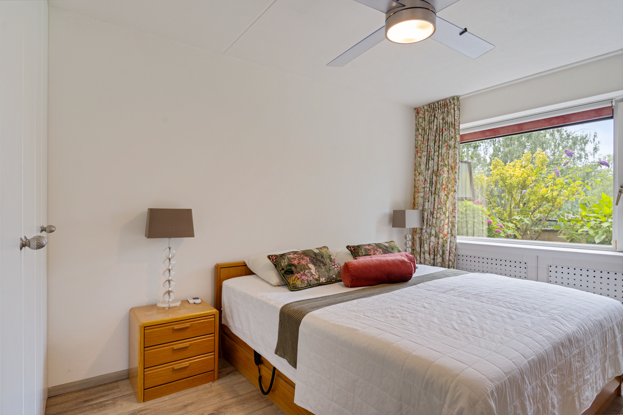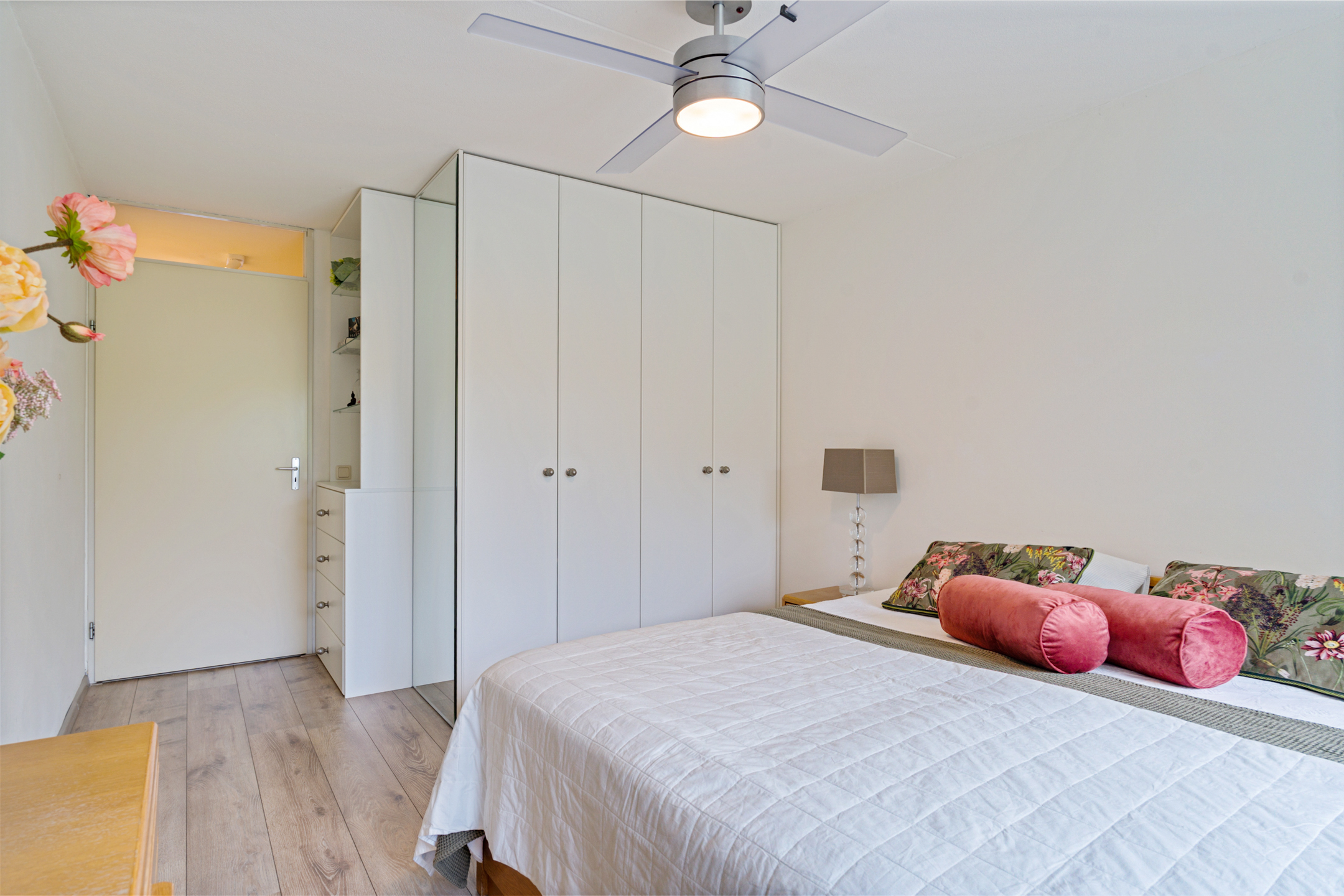 Tot slot bevindt zich aan de achterzijde een grote slaapkamer met voldoende ruimte voor een tweepersoonsbed en een kledingkast. Aan het plafond hangt een stille plafondventilator met geïntegreerde verlichting, die eenvoudig te bedienen is via een app op je smartphone.