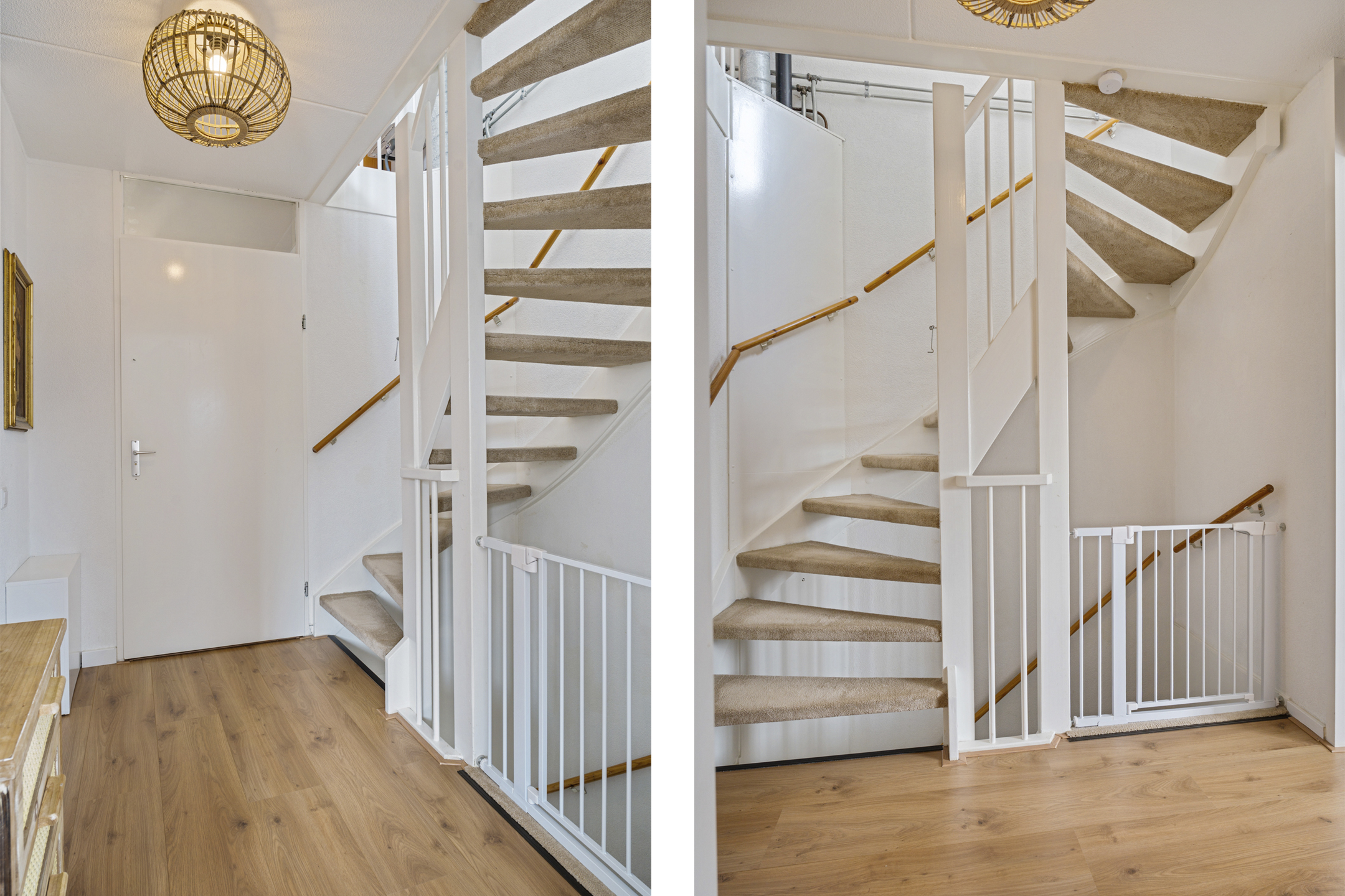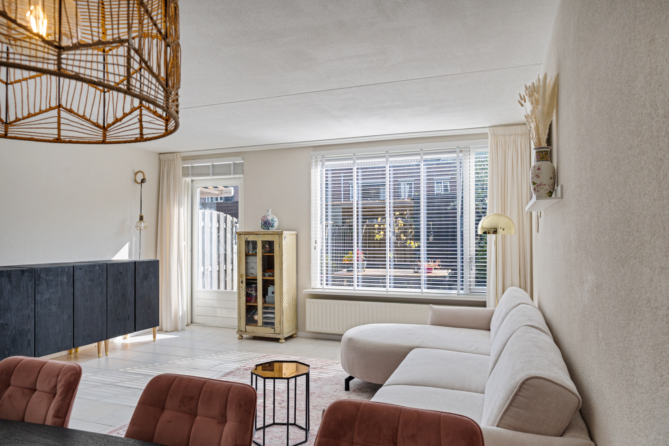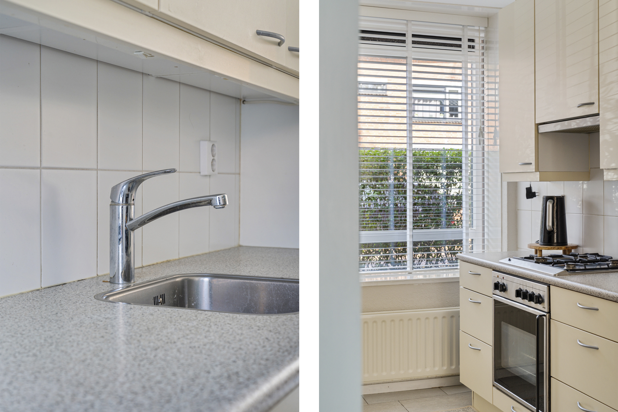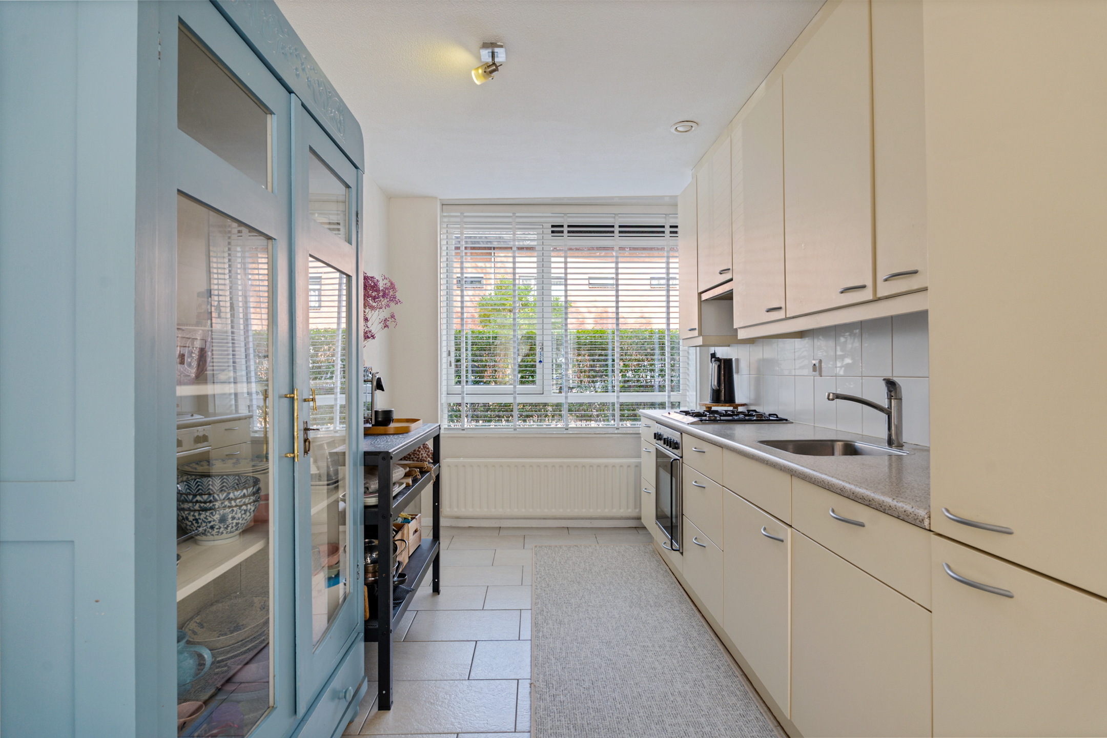 Via de verzorgde voortuin kom je binnen in de hal met toilet, meterkast en trapopgang. De uitgebouwde woon-/eetkamer voelt ruim en licht aan, met uitzicht naar de zonnige achtertuin. De open keuken aan de voorzijde is voorzien van een gaskookplaat, oven, afzuigkap, koelkast, vriezer en vaatwasser. Hoewel volledig functioneel, is deze keuken eenvoudig te moderniseren naar je eigen wensen en stijl. De begane grond wordt verwarmd middels vloerverwarming en radiatoren.