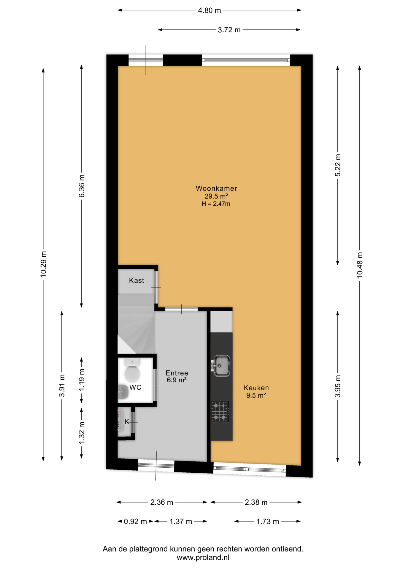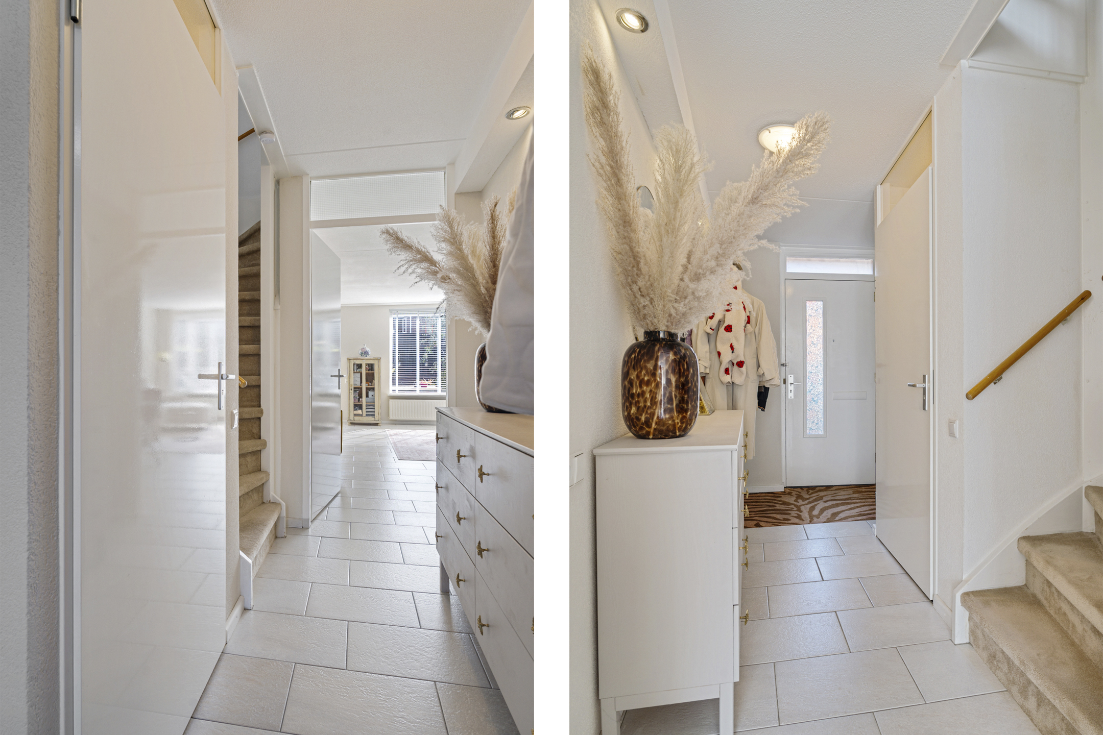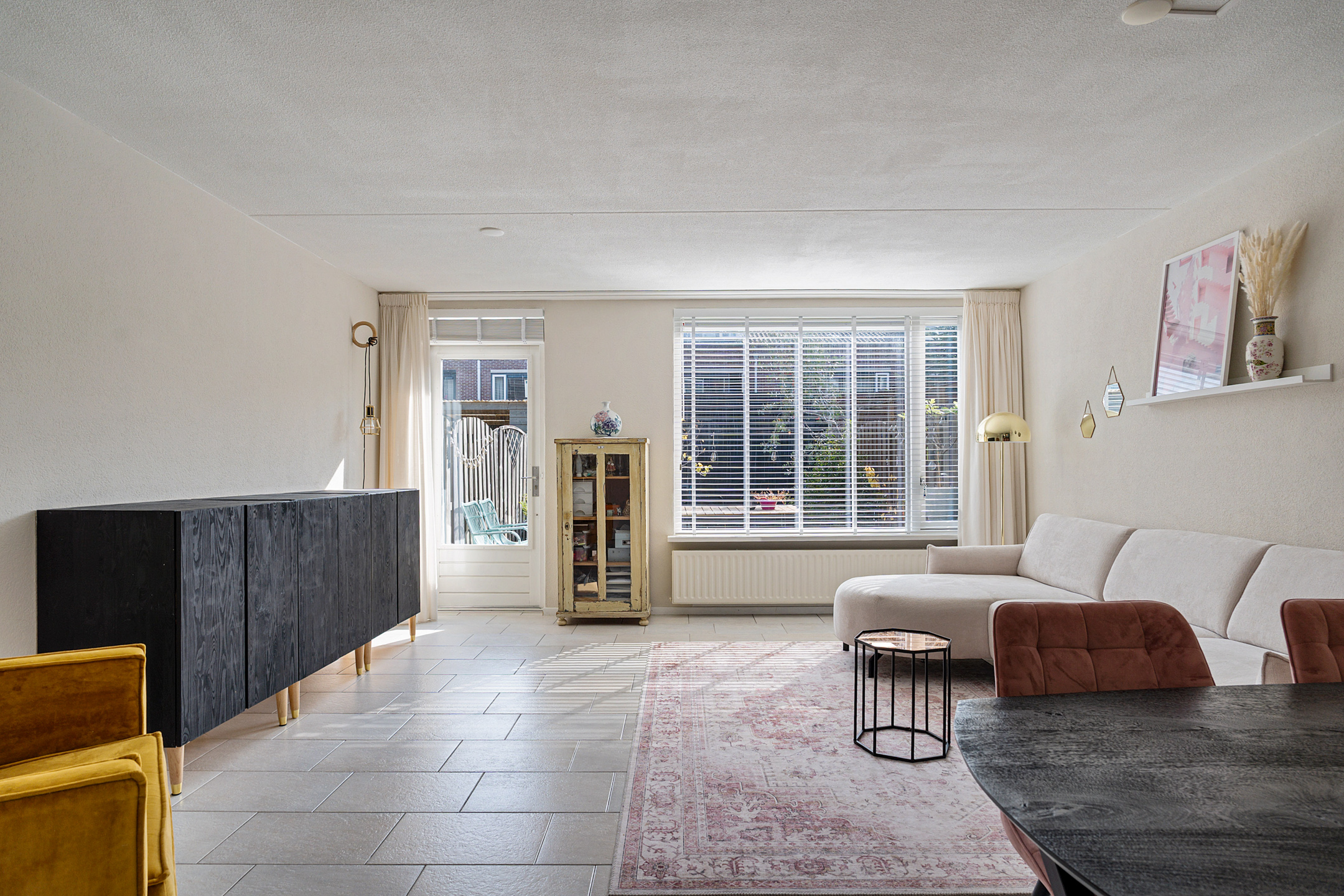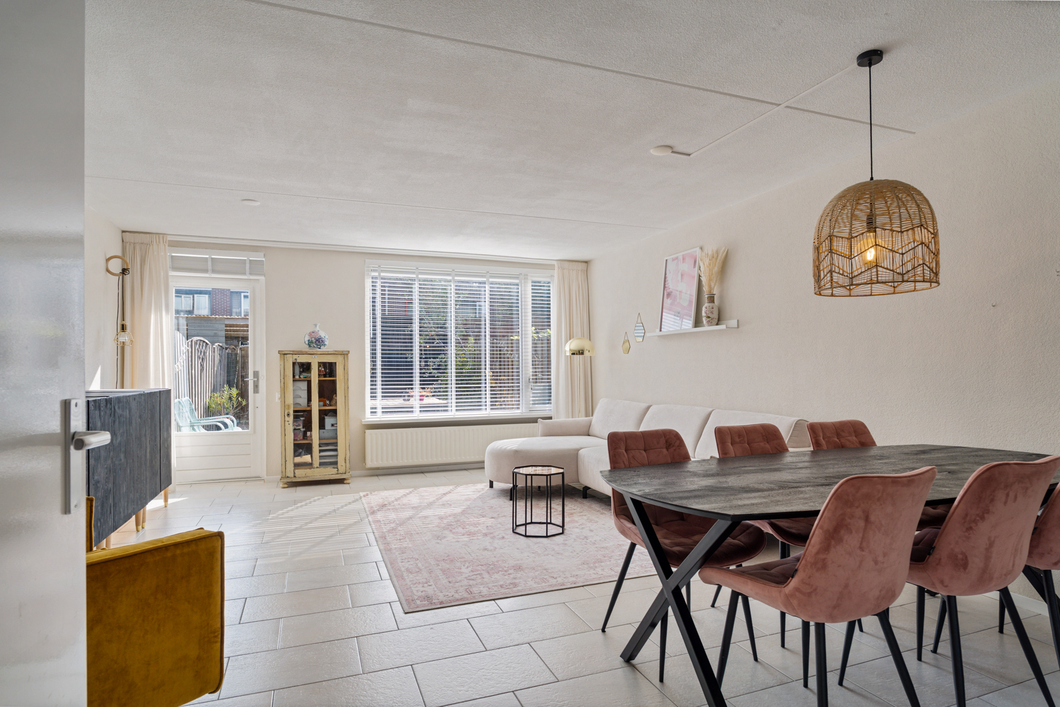 Via de verzorgde voortuin kom je binnen in de hal met toilet, meterkast en trapopgang. De uitgebouwde woon-/eetkamer voelt ruim en licht aan, met uitzicht naar de zonnige achtertuin. De open keuken aan de voorzijde is voorzien van een gaskookplaat, oven, afzuigkap, koelkast, vriezer en vaatwasser. Hoewel volledig functioneel, is deze keuken eenvoudig te moderniseren naar je eigen wensen en stijl. De begane grond wordt verwarmd middels vloerverwarming en radiatoren.