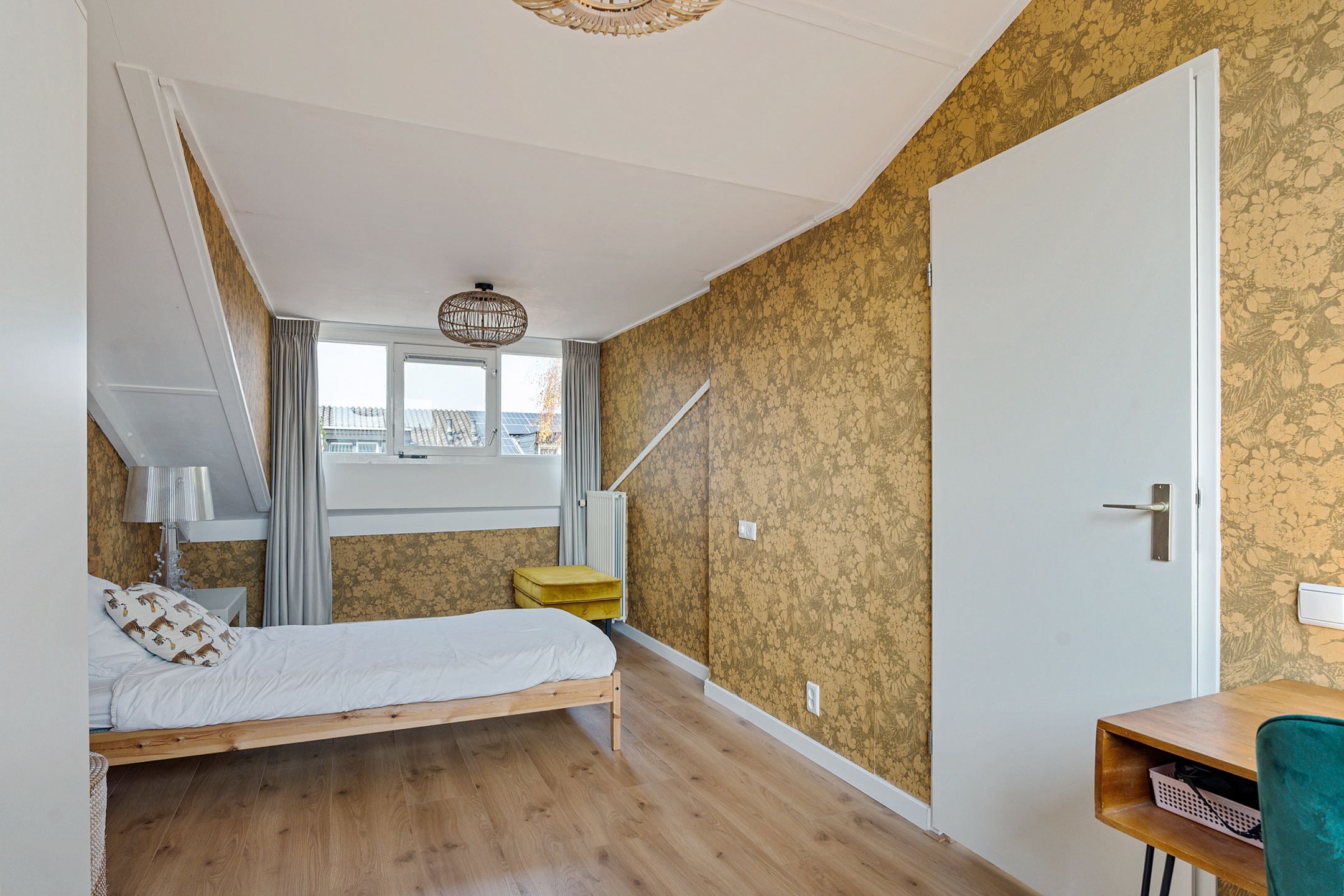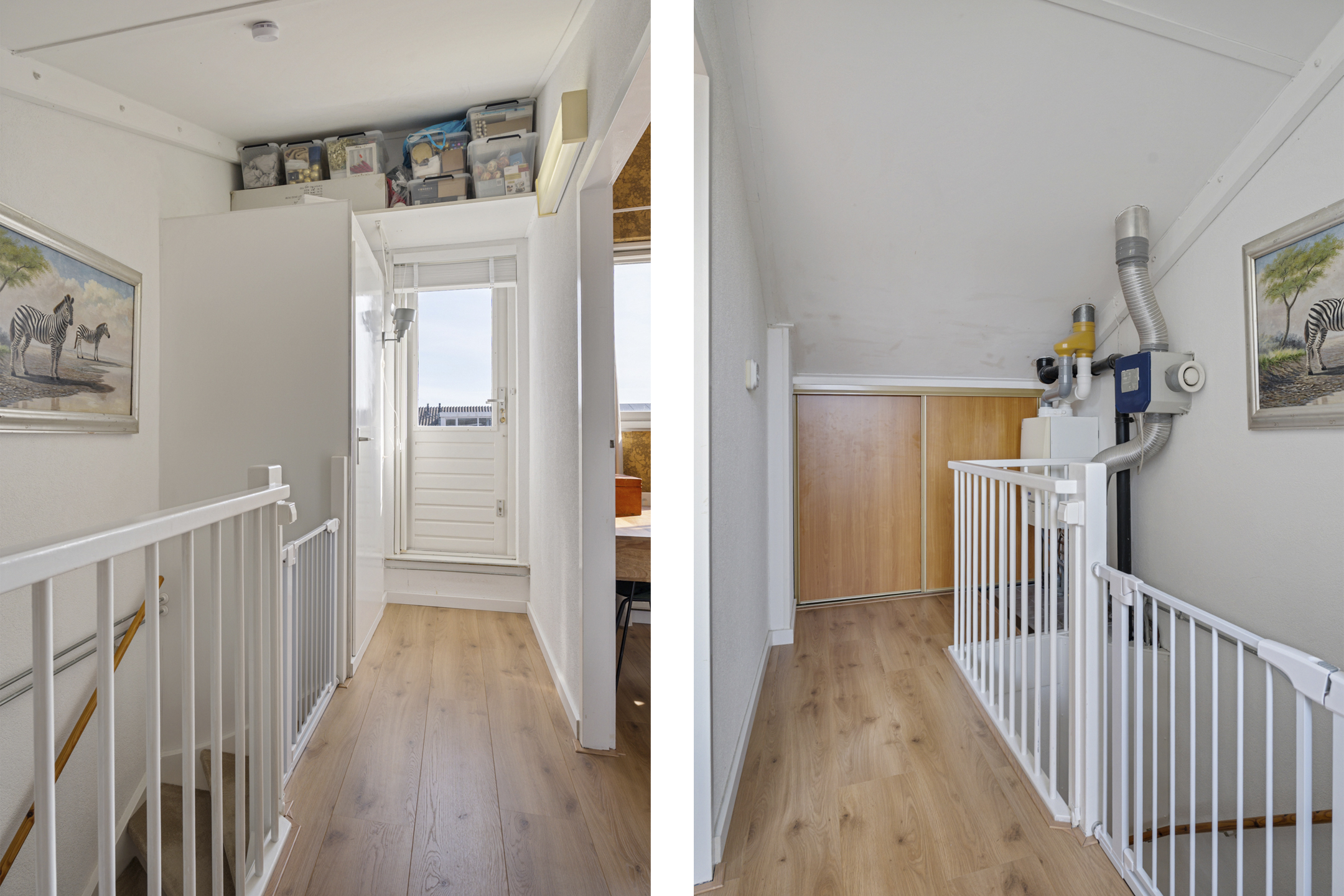 De zolderverdieping beschikt over een royale slaapkamer met dakkapel, een overloop met aansluitingen voor wasmachine en droger, en toegang tot het dakterras. Deze ruimte is ideaal als comfortabele ouderslaapkamer, maar leent zich ook perfect als werkplek of relaxruimte voor een opgroeiende tiener. Verder beschikt deze verdieping op de overloop over een dichte washok en extra opbergruimte in de hoogte en achter de knieschotten.