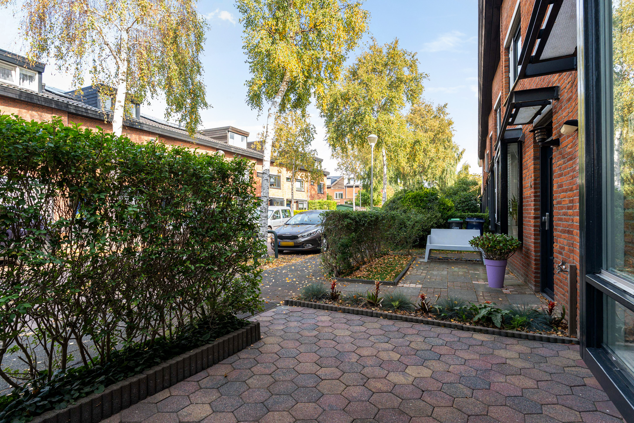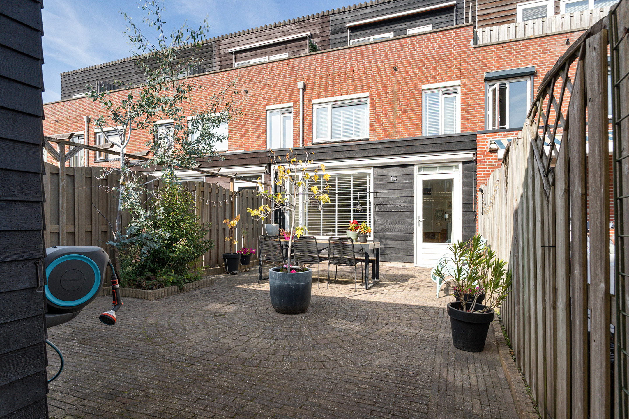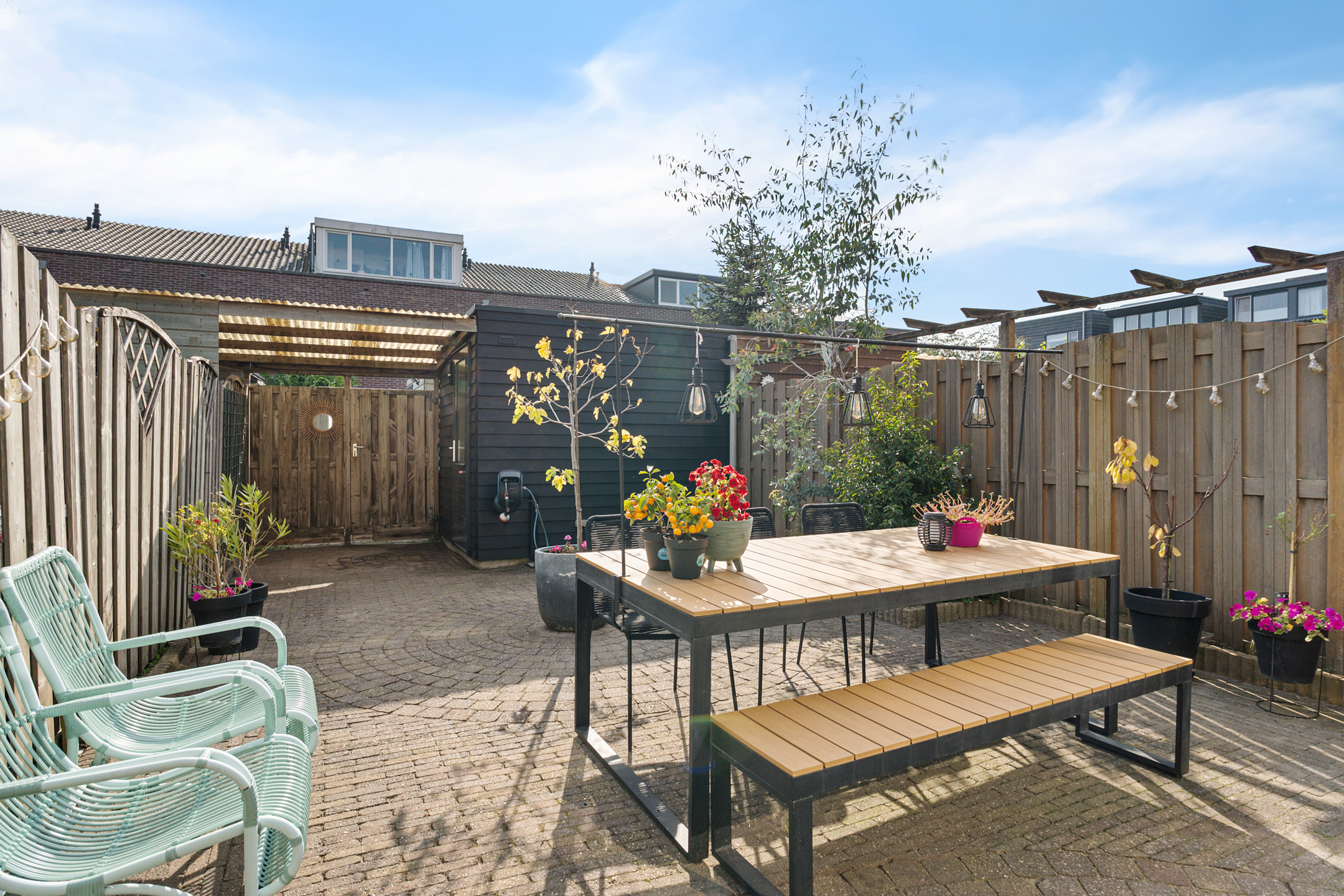 In de achtertuin op het zuidoosten kun je vanaf de ochtend tot in de avond van de zon genieten. De tuin is onderhoudsvriendelijk aangelegd met bestrating, een buitenkraan en een houten berging met elektra. Dankzij de achterom is je fiets zo gestald.