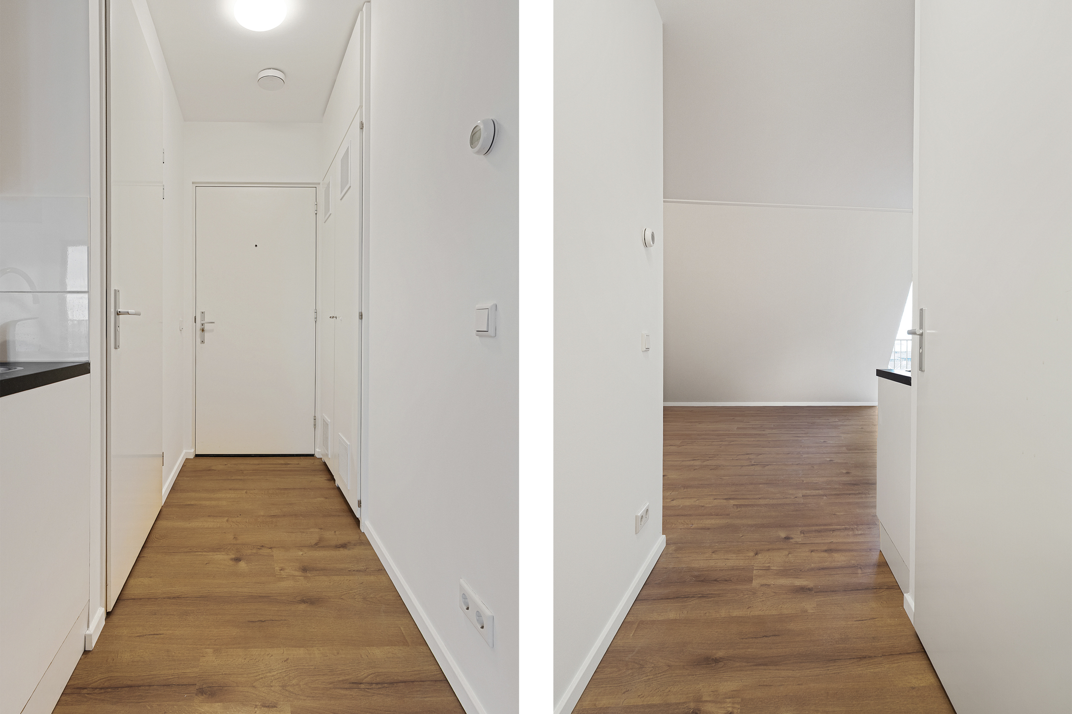 Deze nette studio is slim ingedeeld, voorzien van een moderne keuken en badkamer en klaar voor gebruik. De grote raampartijen zorgen voor veel licht en een vrij uitzicht aan de achterzijde. Een praktische woonruimte voor wie compact maar comfortabel wil wonen.