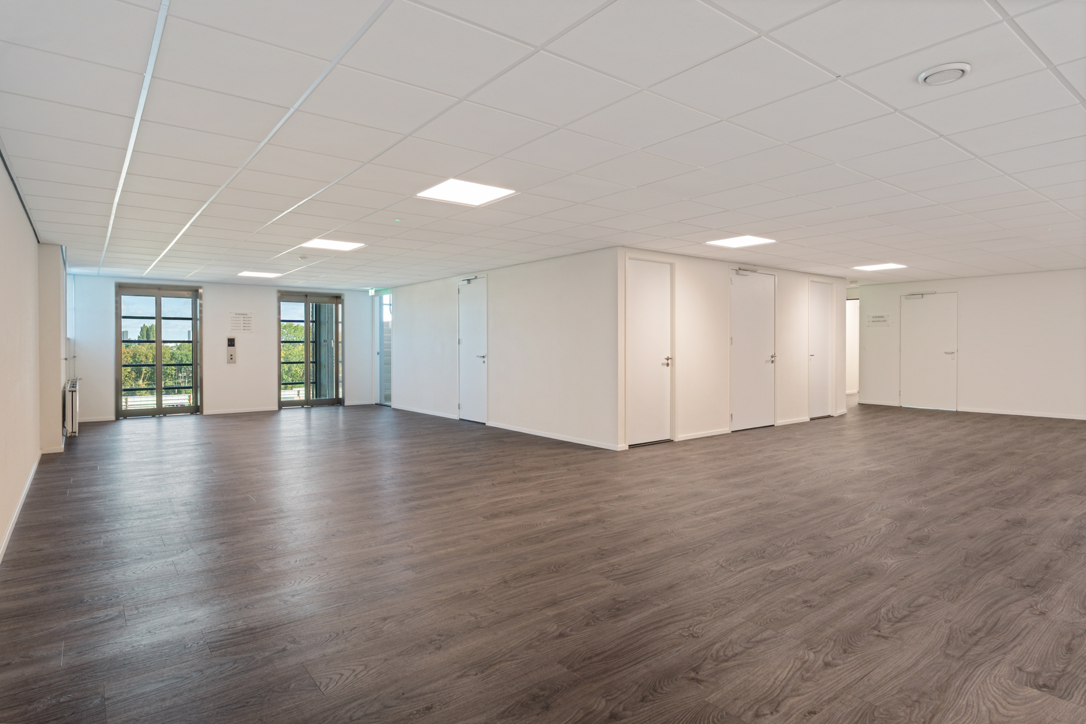De woonruimte is praktisch en licht dankzij de grote raampartijen aan de achterzijde, met uitzicht op de metrolijn richting Kamersche Zuid en Kapelsche Brug. De open keuken is uitgevoerd in wit met een grijs werkblad en voorzien van een koel-vriescombinatie, magnetron, vaatwasser, afzuigkap en spoelbak. De plafondlampen en laminaatvloer worden nog geplaatst.