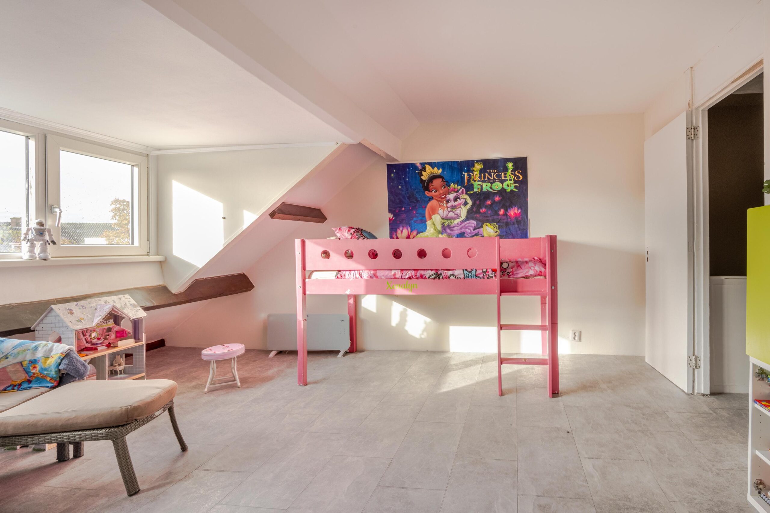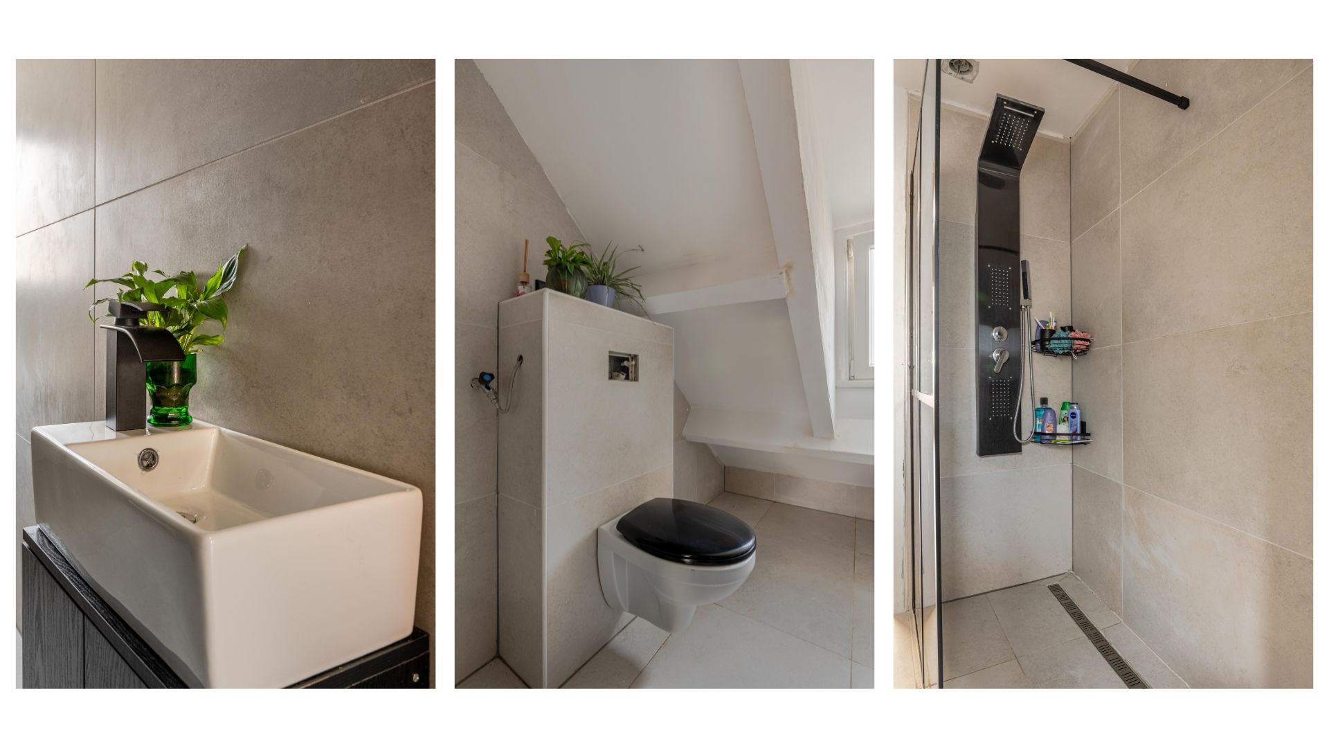 De overloop geeft toegang tot de bergzolder via een vlizotrap. Aan de achterzijde ligt een slaapkamer met dakkapel en aan de voorzijde een royale tweede slaapkamer, eveneens met dakkapel. De luxe badkamer is uitgerust met een inloopdouche met douchepaneel, wastafelmeubel, dakkapel en inbouwspots.