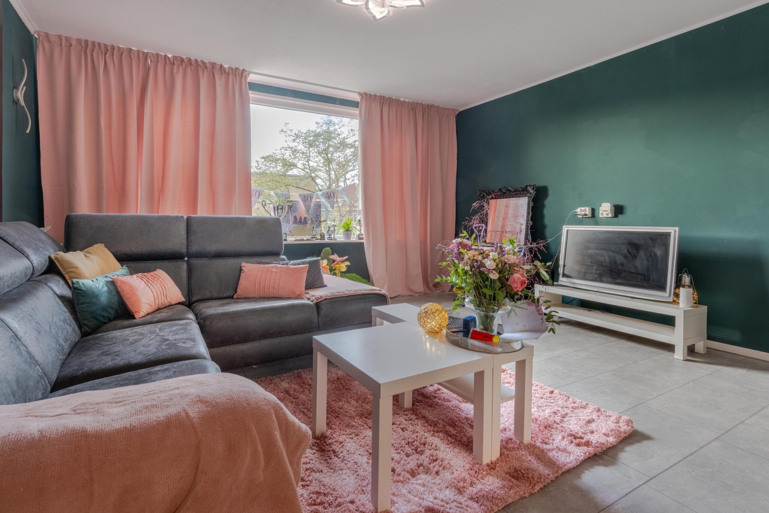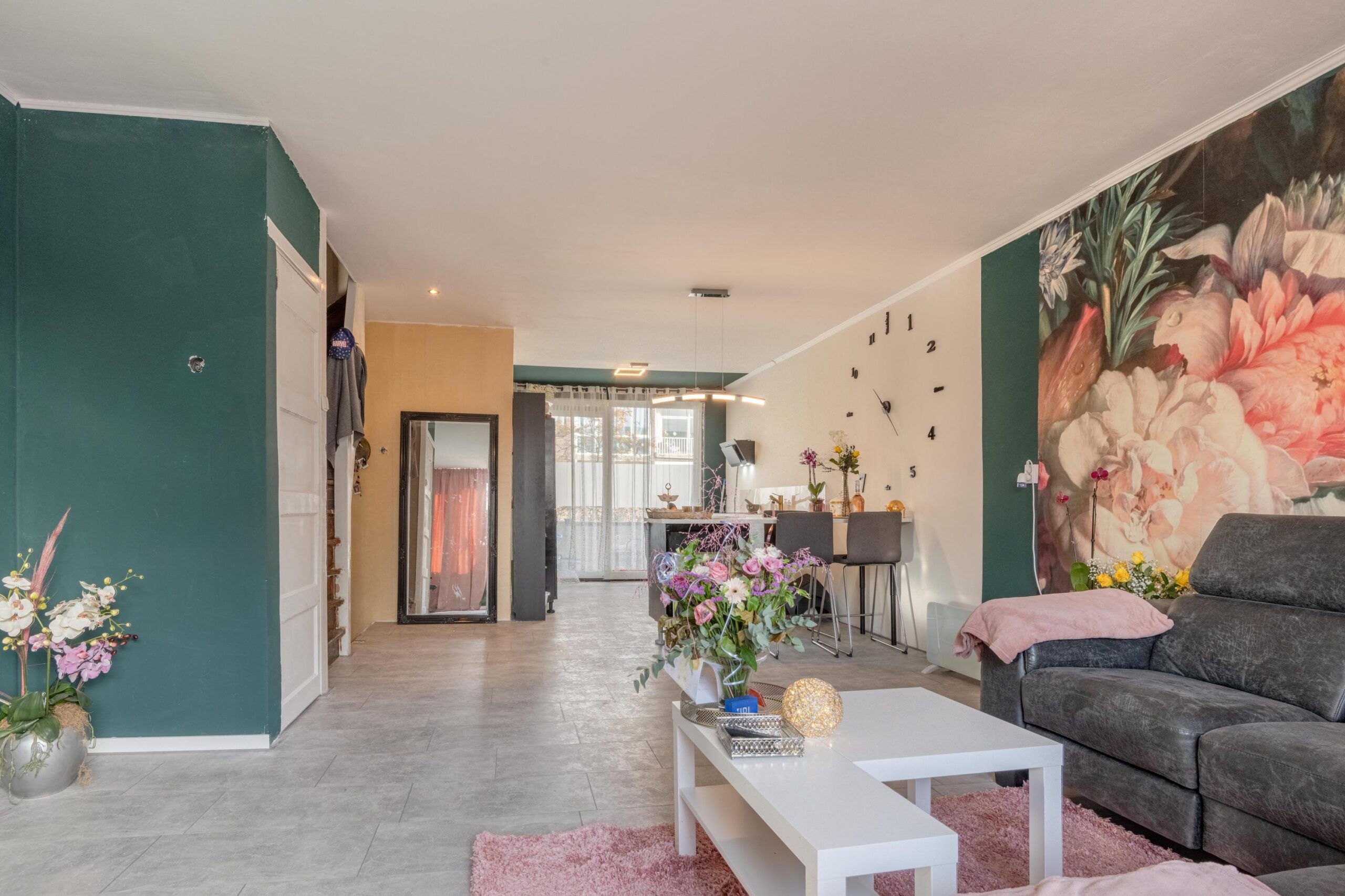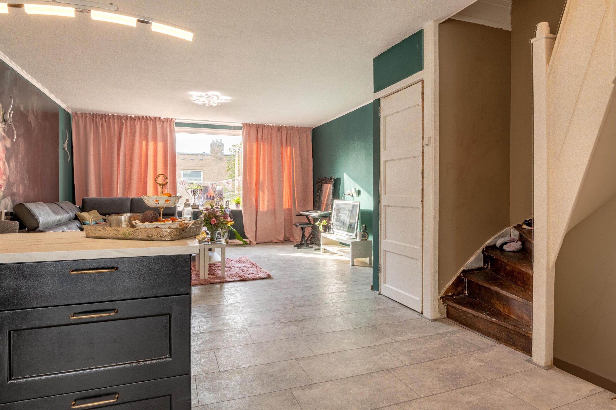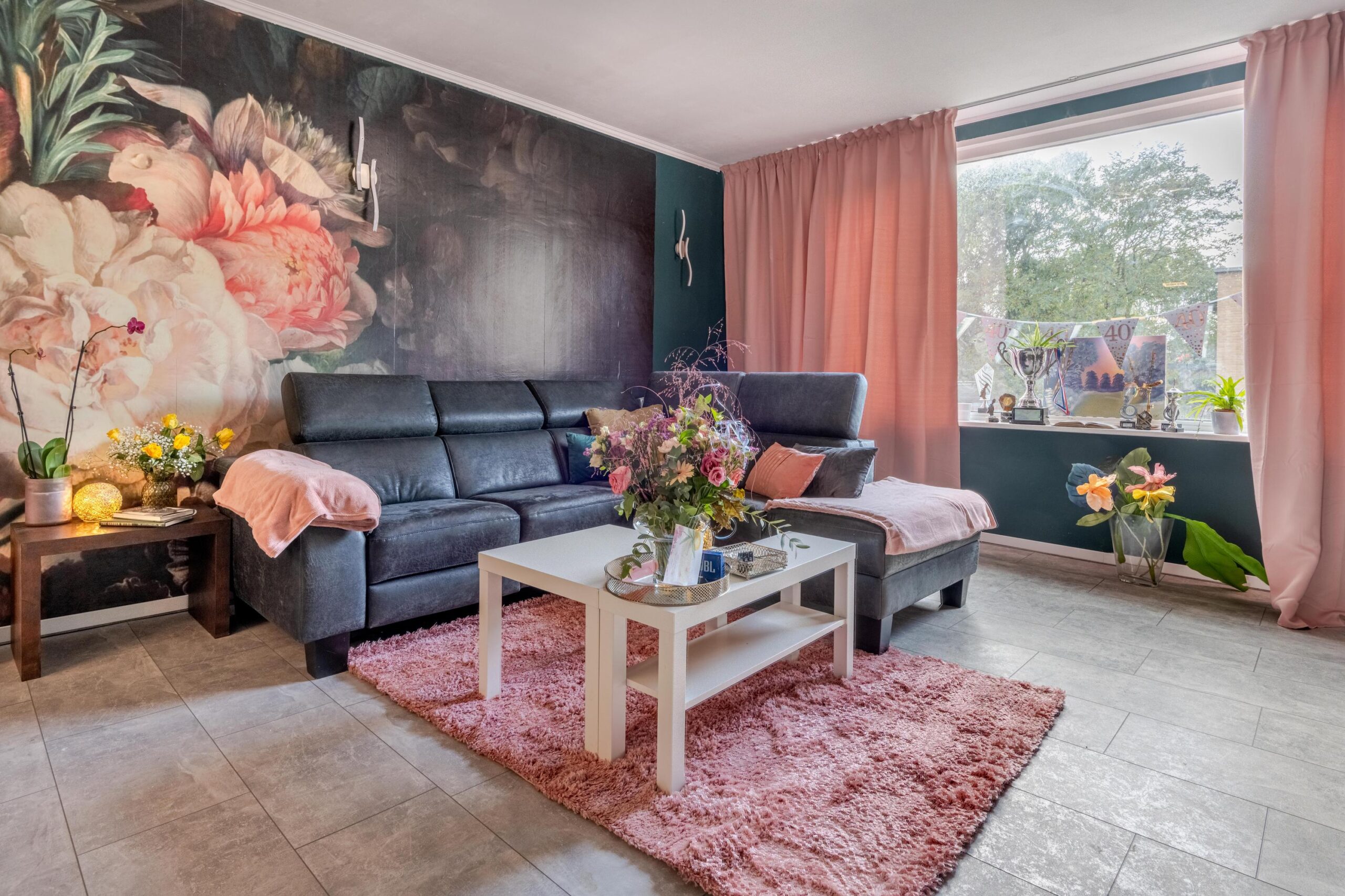 Via de trapopgang bereik je de woningentree. De lichte doorzonwoonkamer beschikt over een vaste kast en staat in open verbinding met de keuken.