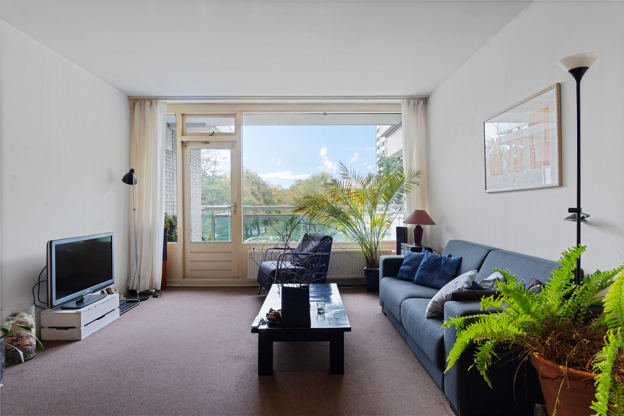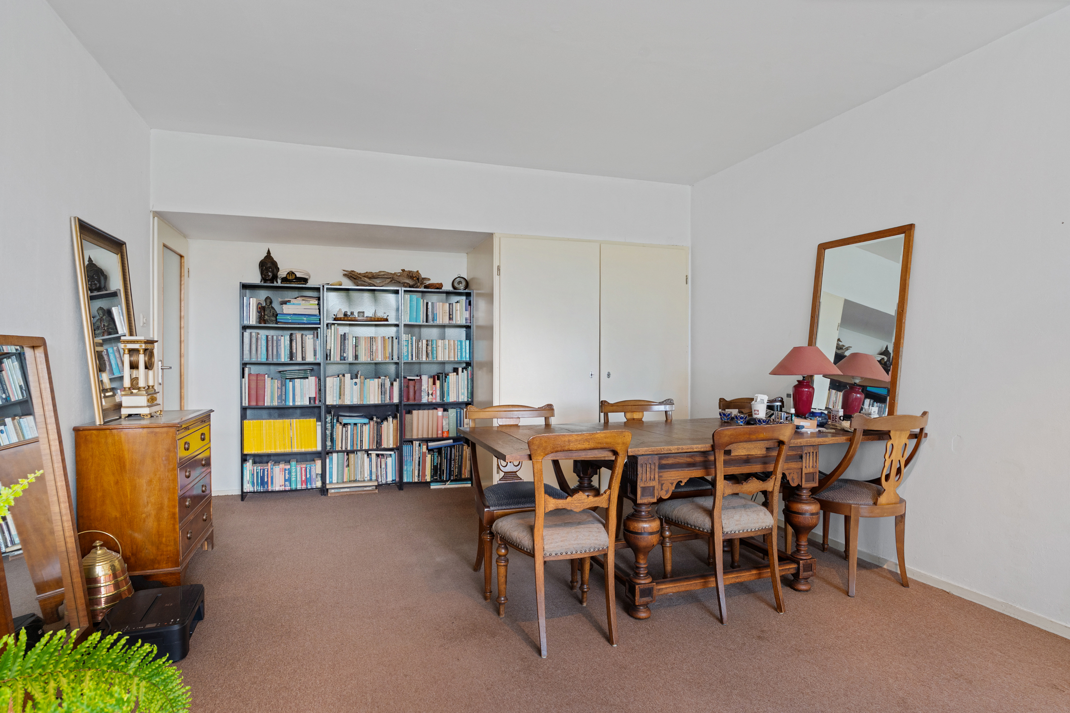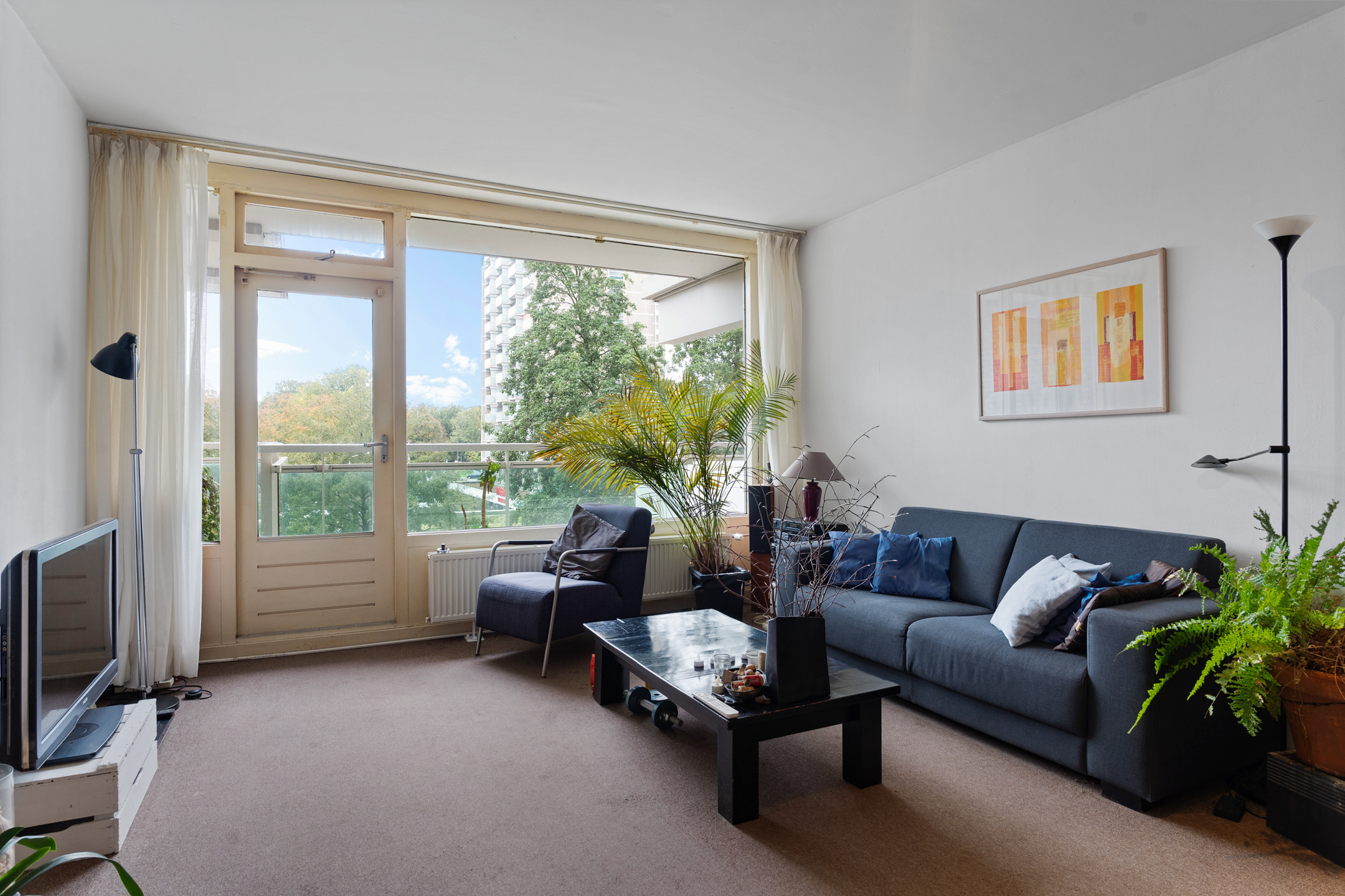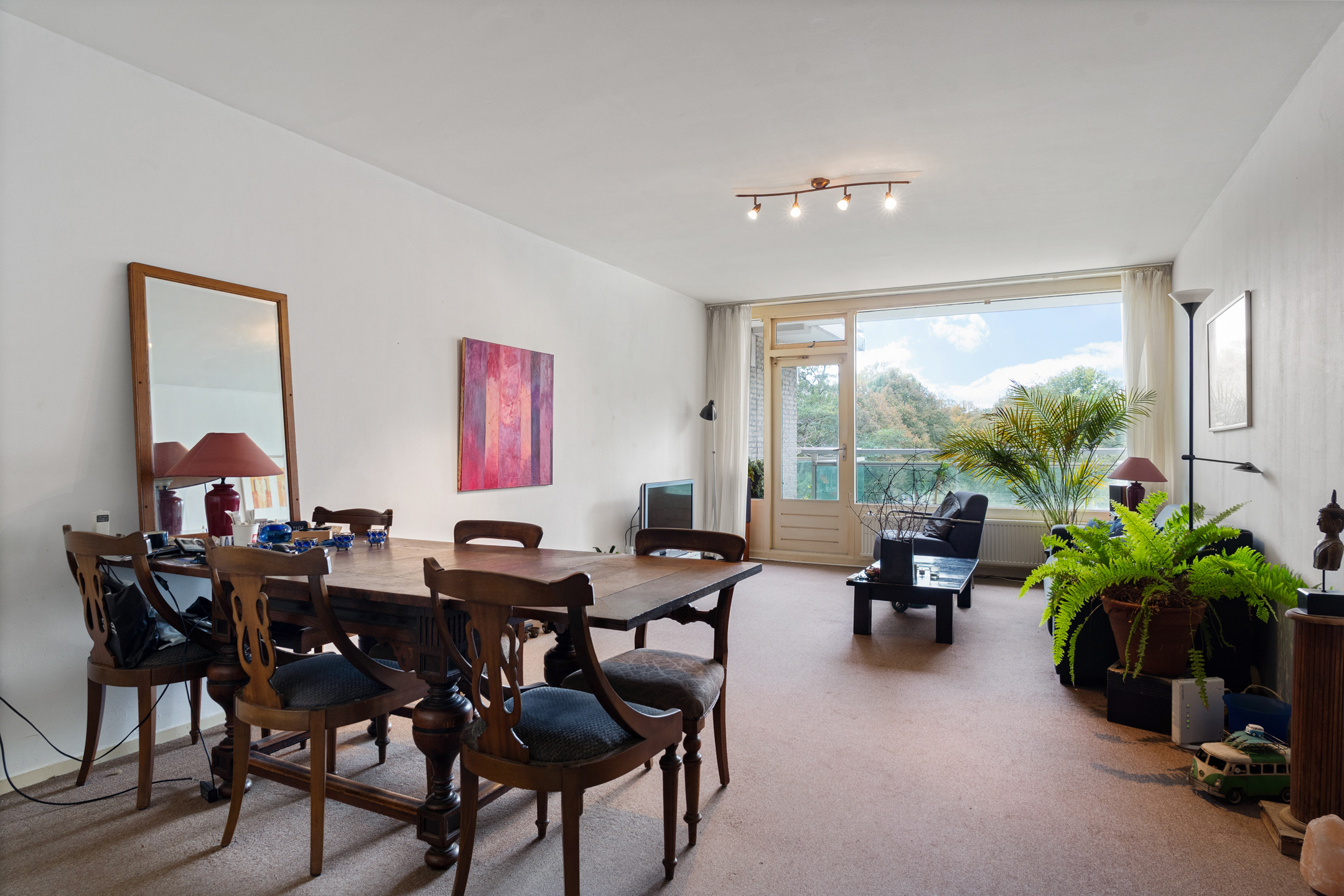 Het appartement bevindt zich op de derde verdieping van een goed onderhouden gebouw. De ruime woonkamer biedt een prettig gevoel van licht en ruimte, met een grote raampartij en toegang tot het balkon dat zich uitstrekt over de volle breedte van de woning. Hier geniet je volop van de middag- en avondzon.