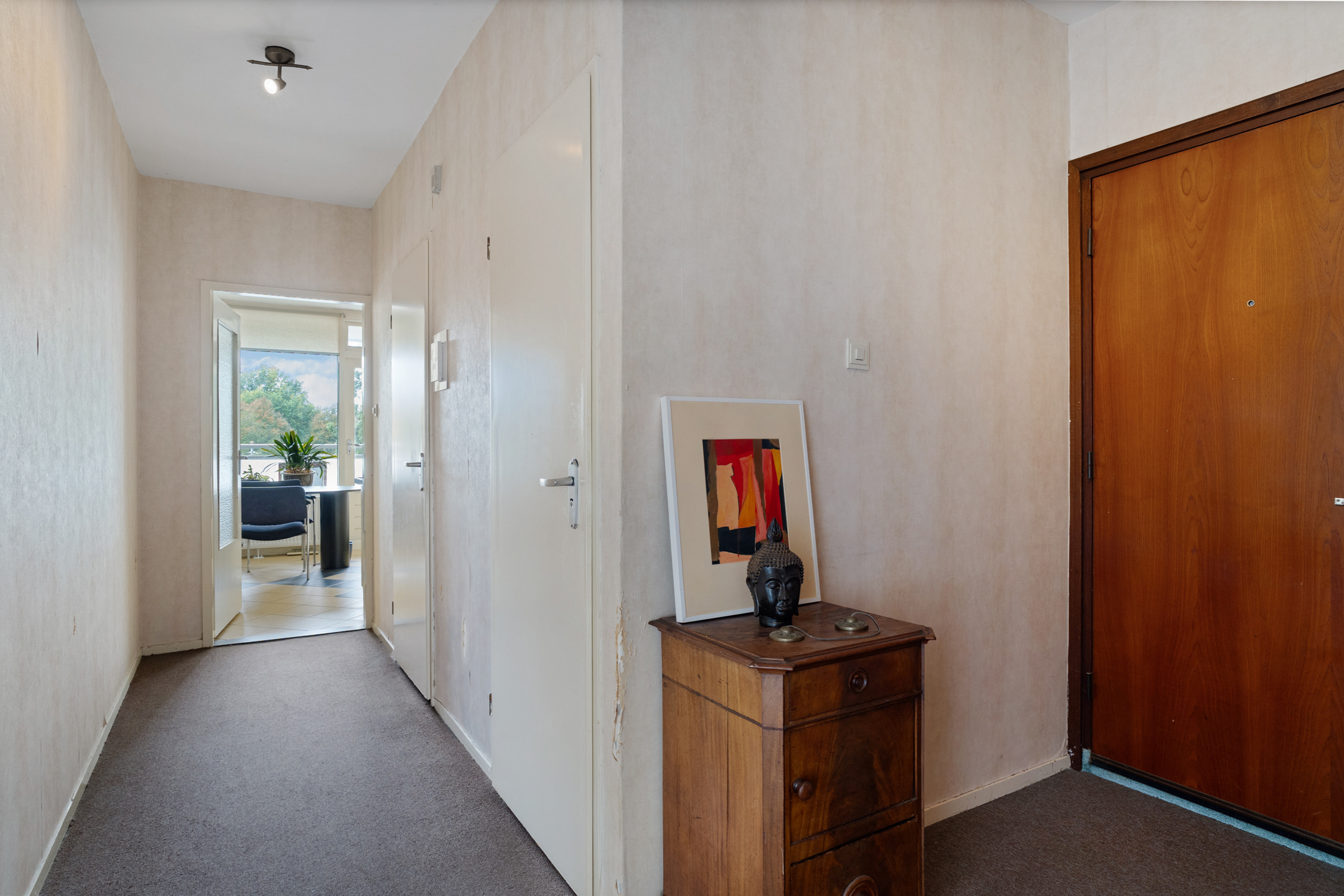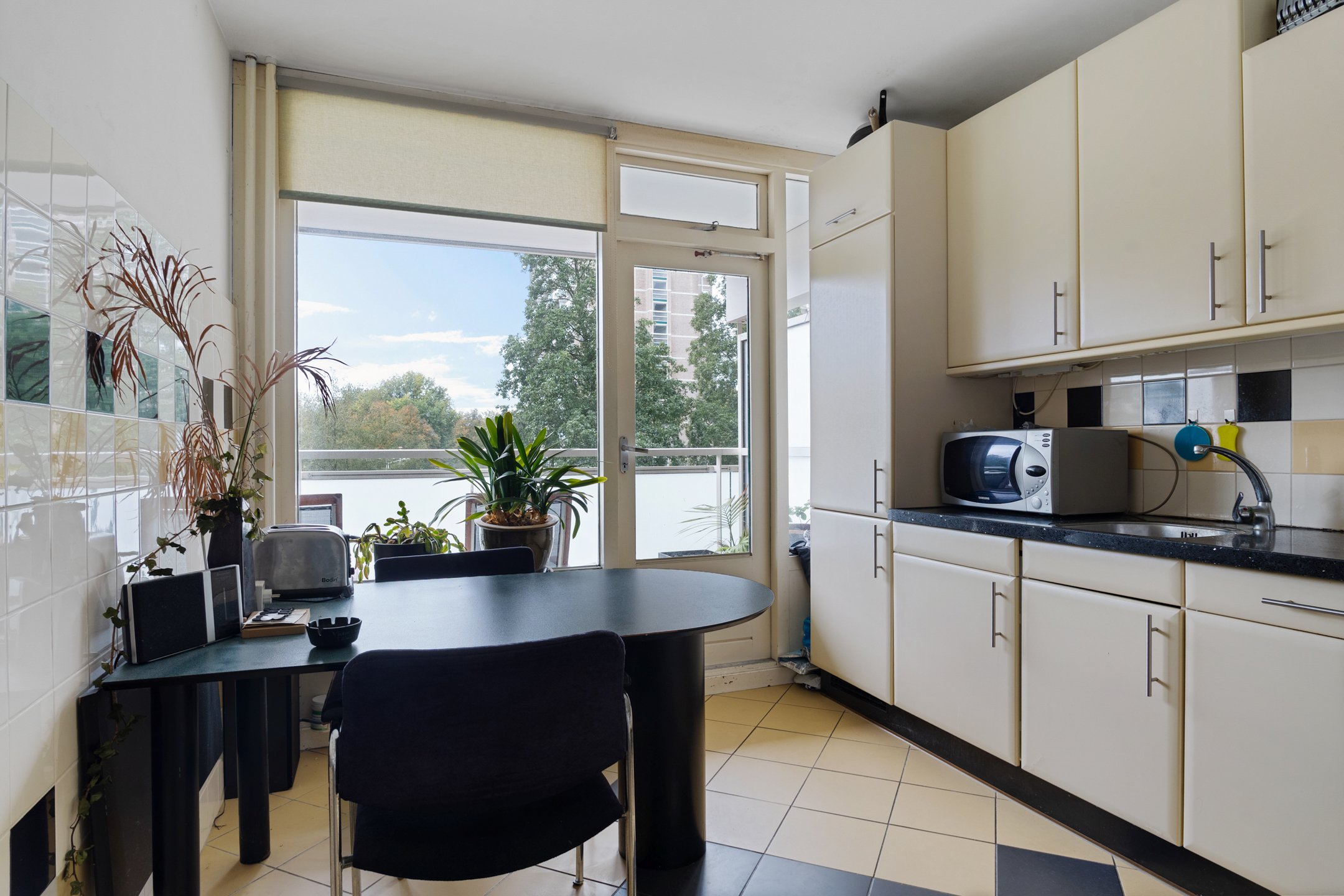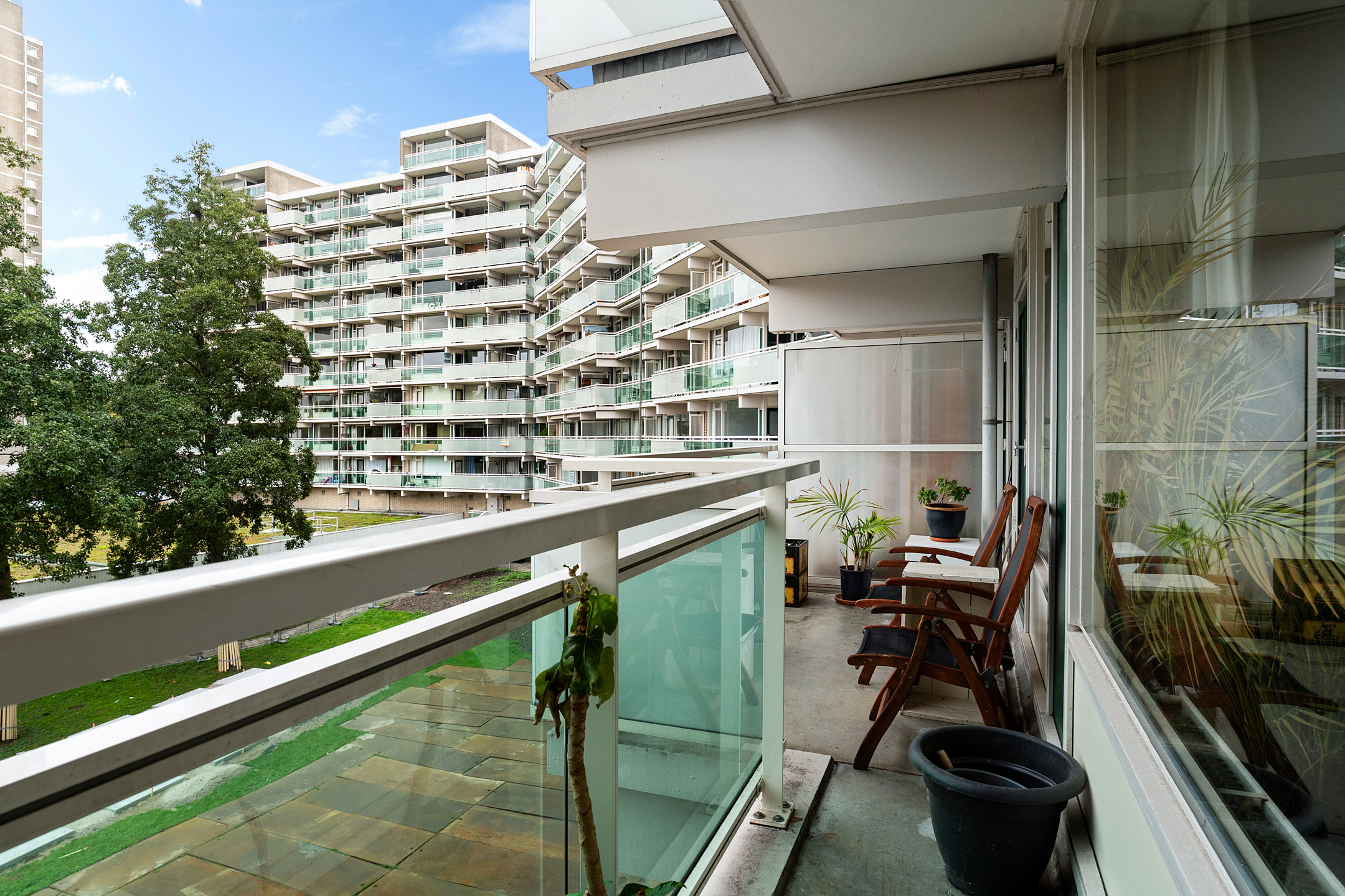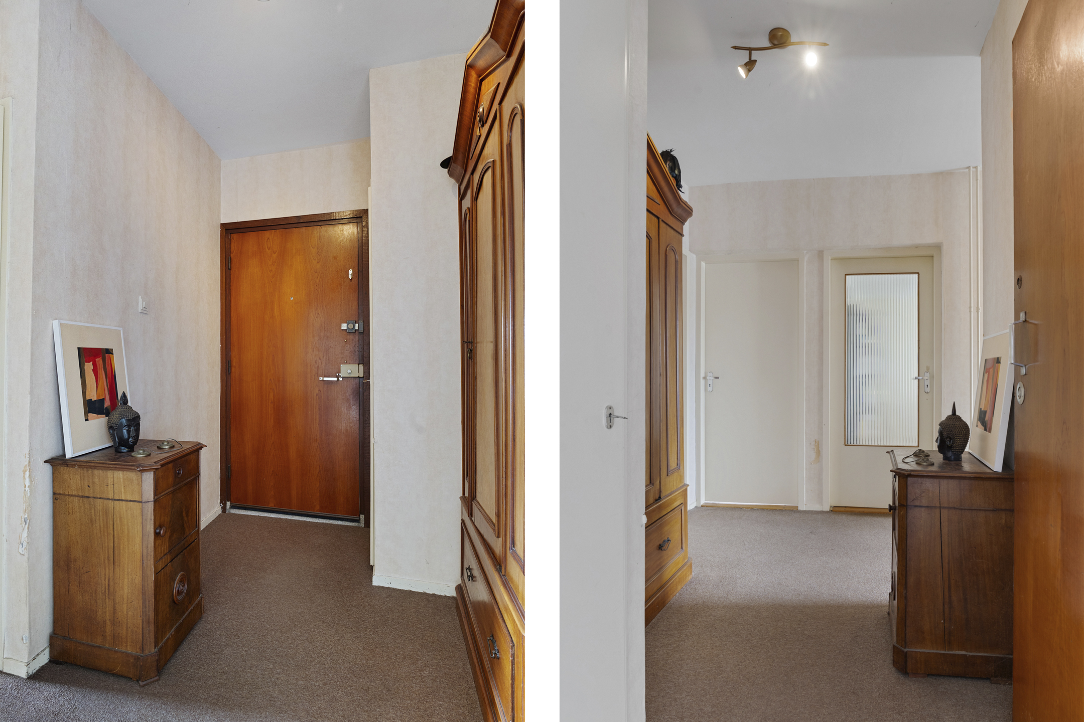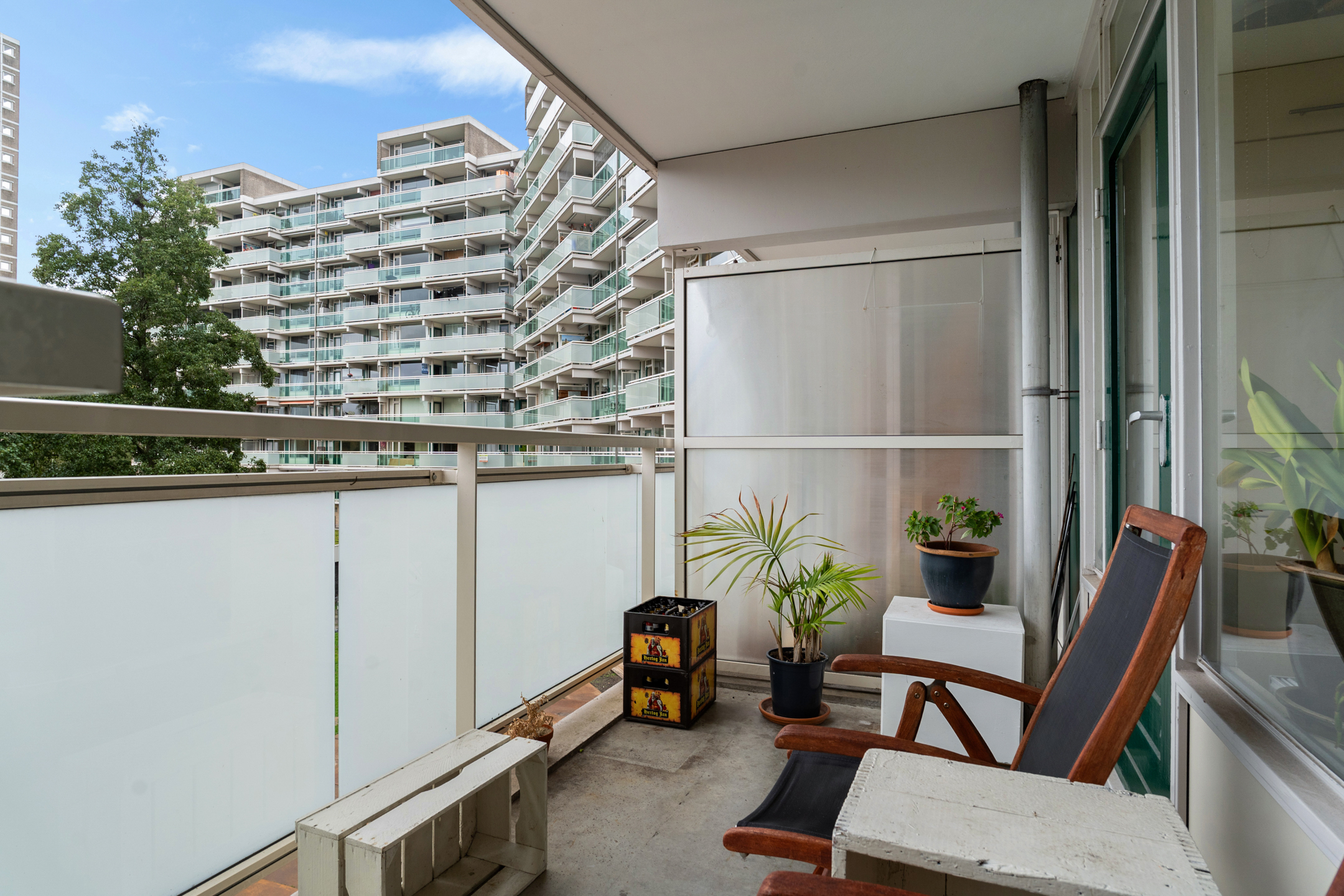 Het appartement bevindt zich op de derde verdieping van een goed onderhouden gebouw. De ruime woonkamer biedt een prettig gevoel van licht en ruimte, met een grote raampartij en toegang tot het balkon dat zich uitstrekt over de volle breedte van de woning. Hier geniet je volop van de middag- en avondzon.