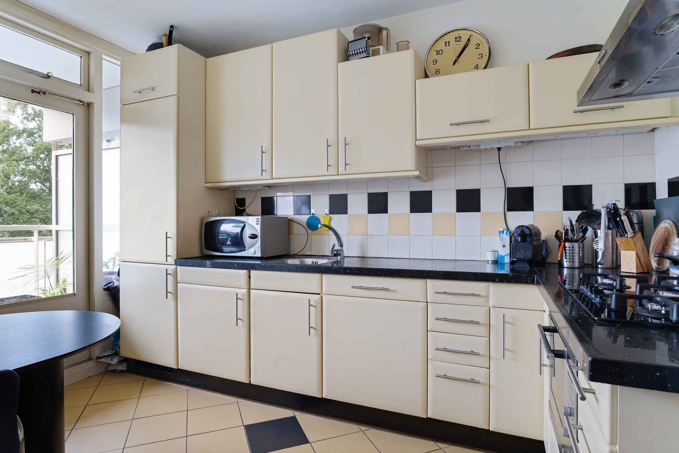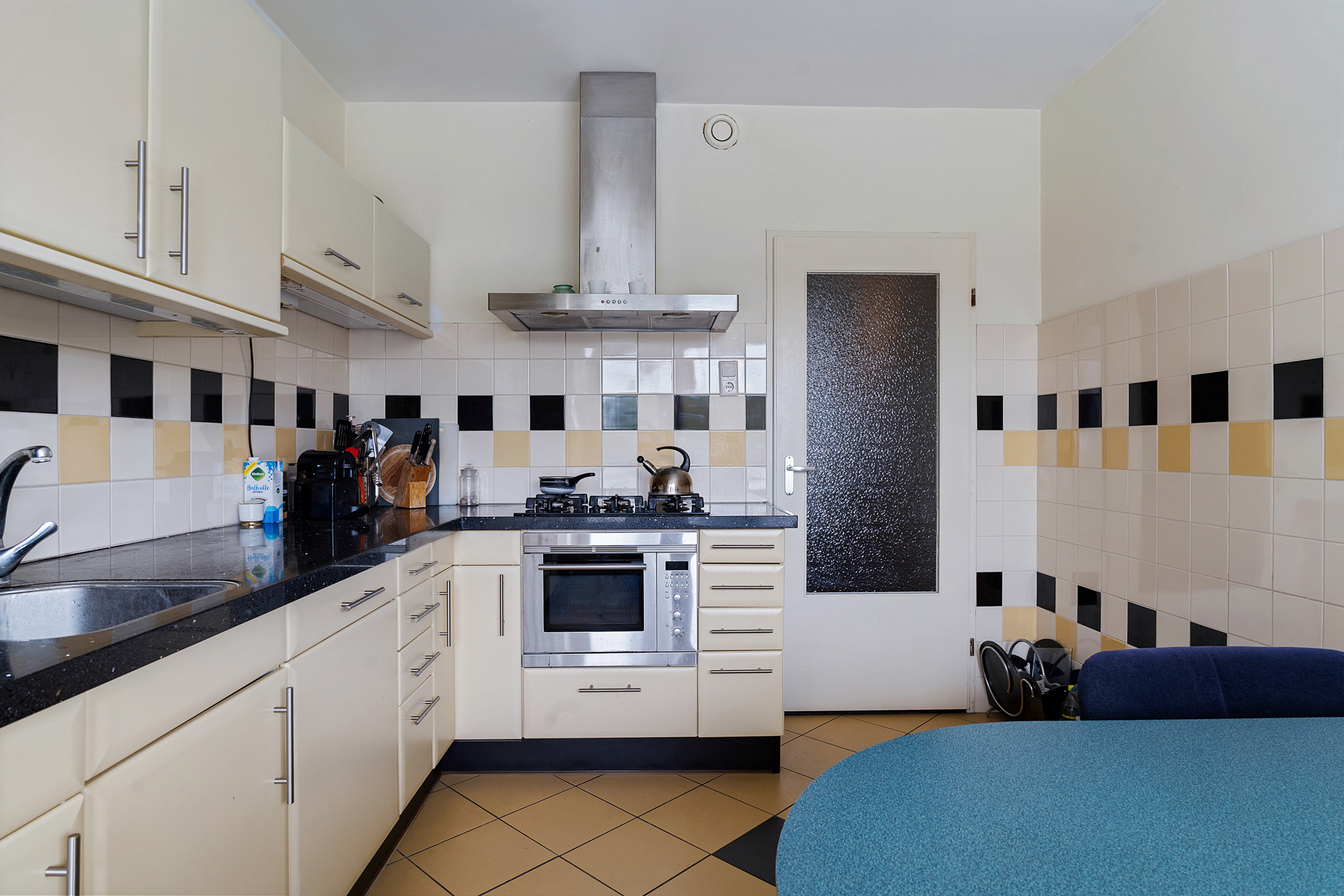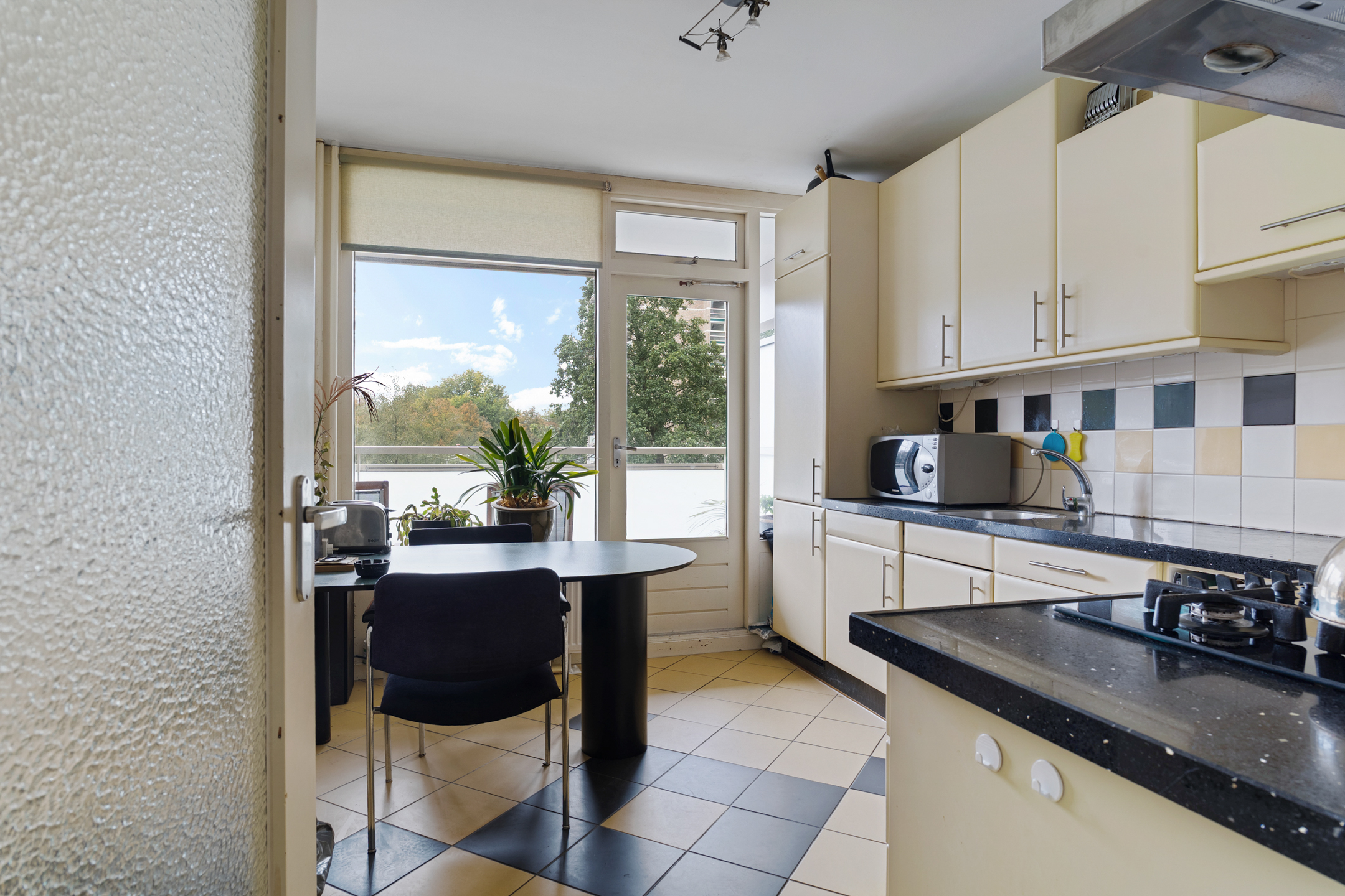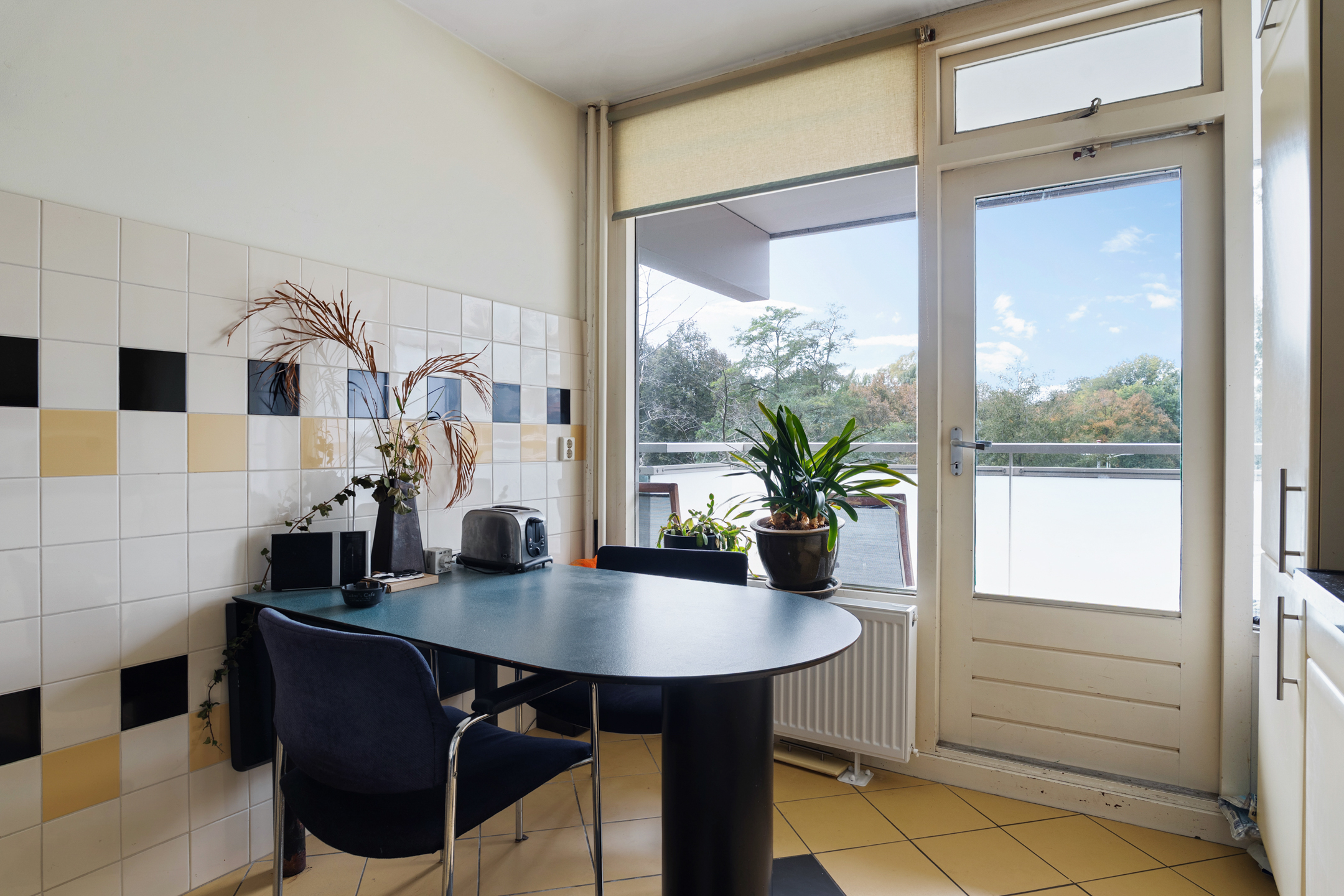 Het appartement bevindt zich op de derde verdieping van een goed onderhouden gebouw. De ruime woonkamer biedt een prettig gevoel van licht en ruimte, met een grote raampartij en toegang tot het balkon dat zich uitstrekt over de volle breedte van de woning. Hier geniet je volop van de middag- en avondzon.