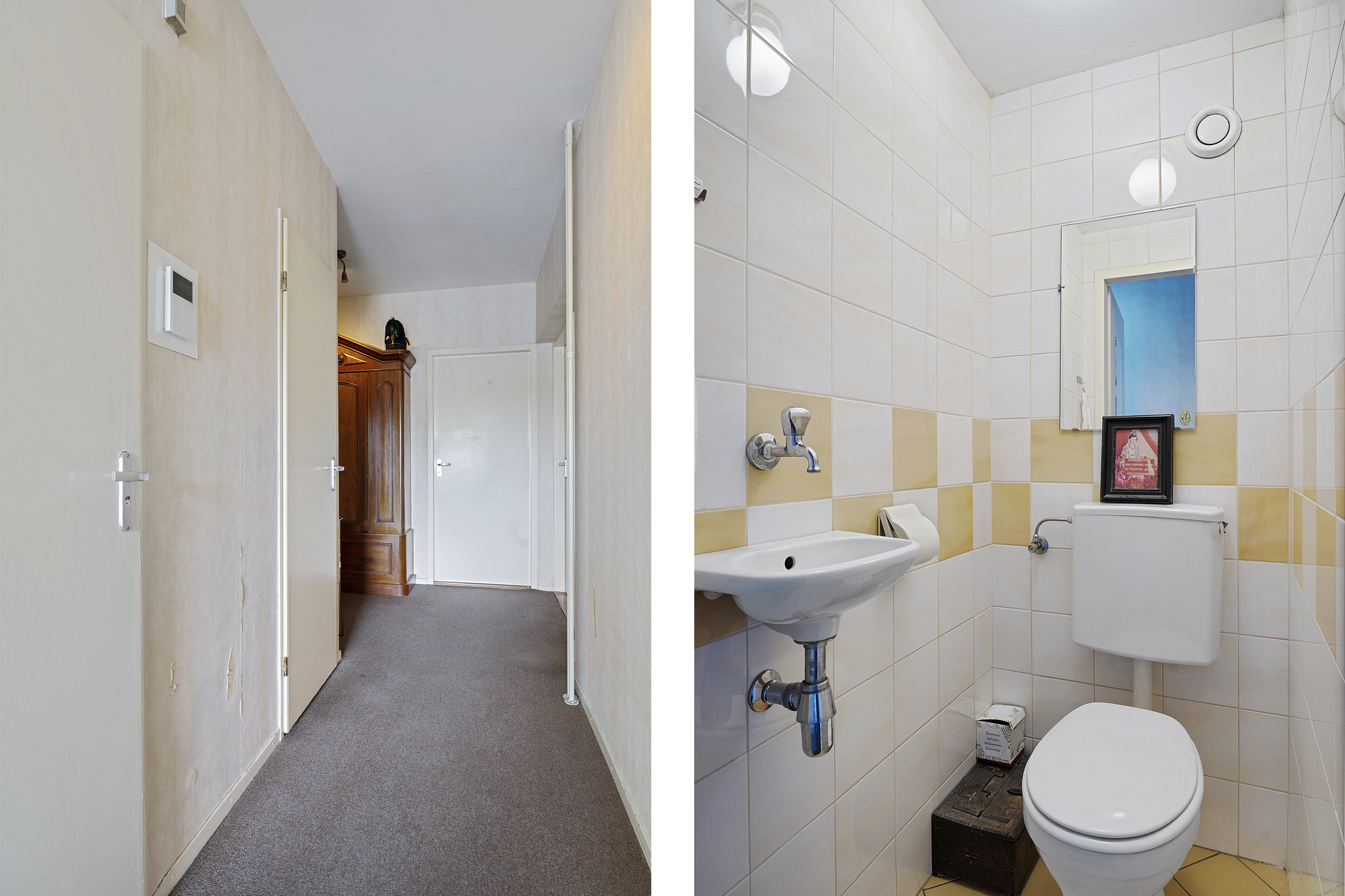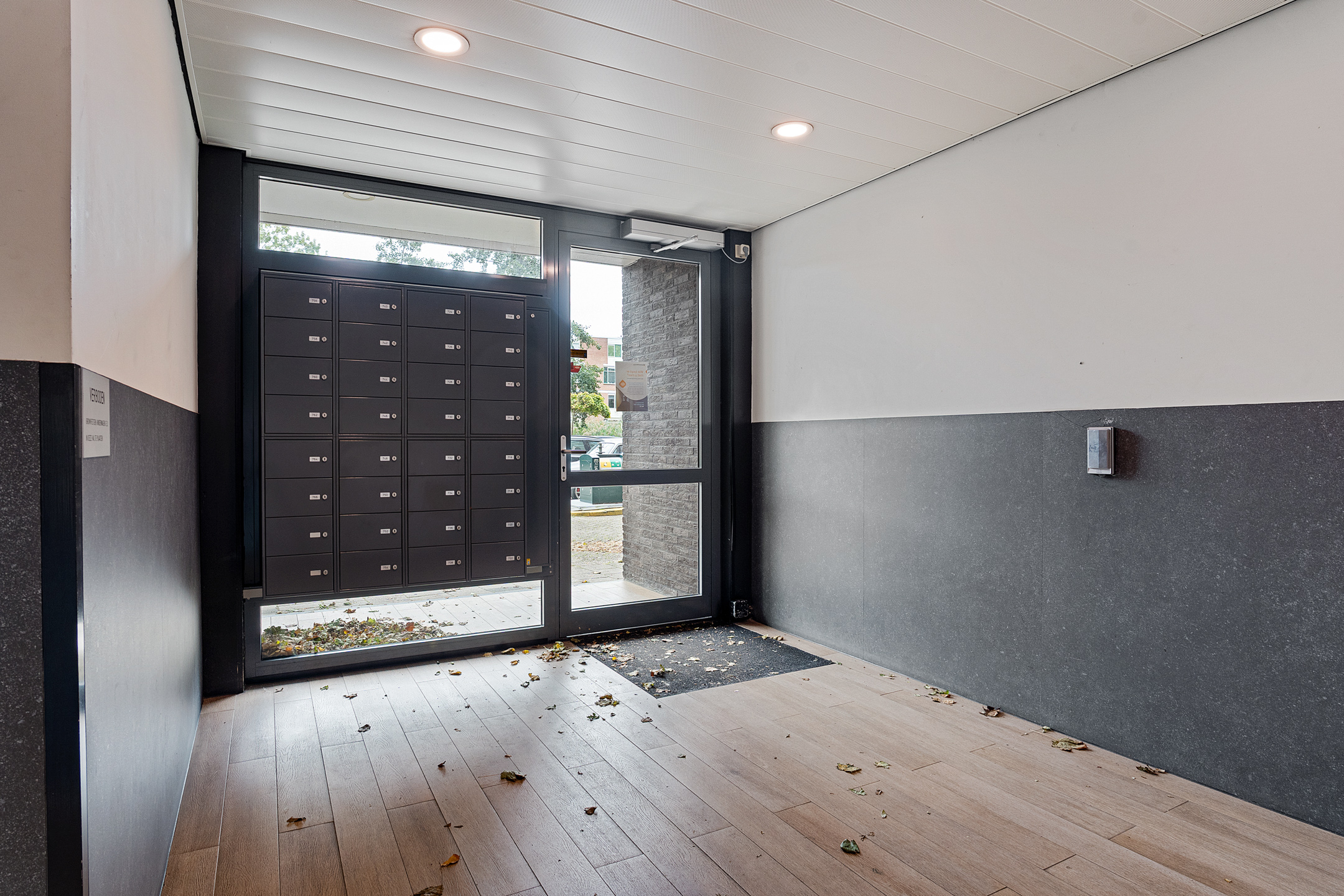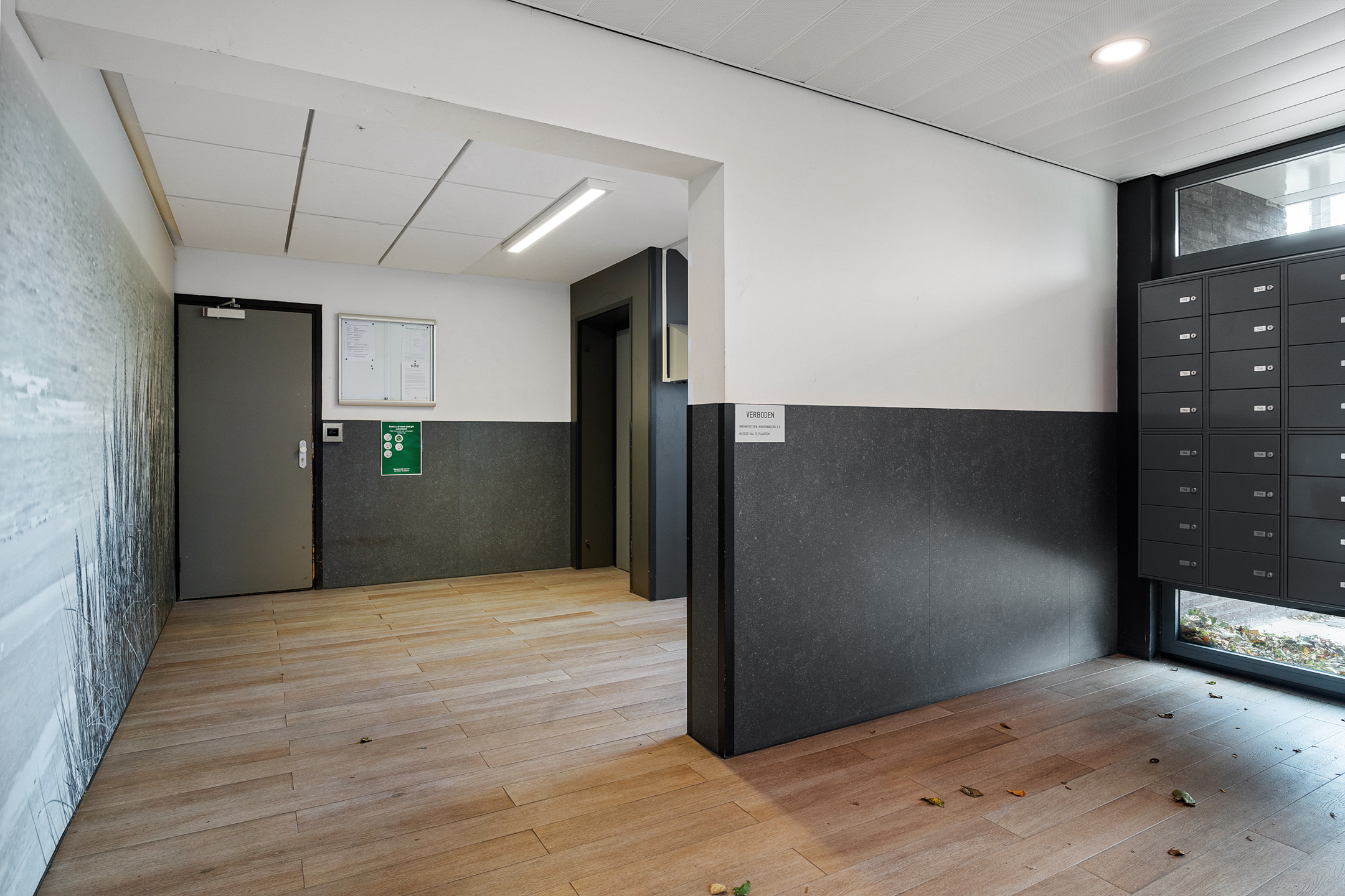 De centrale entree is netjes verzorgd en voorzien van brievenbussen, bellentableau, lift en trappenhuis naar de verdiepingen.