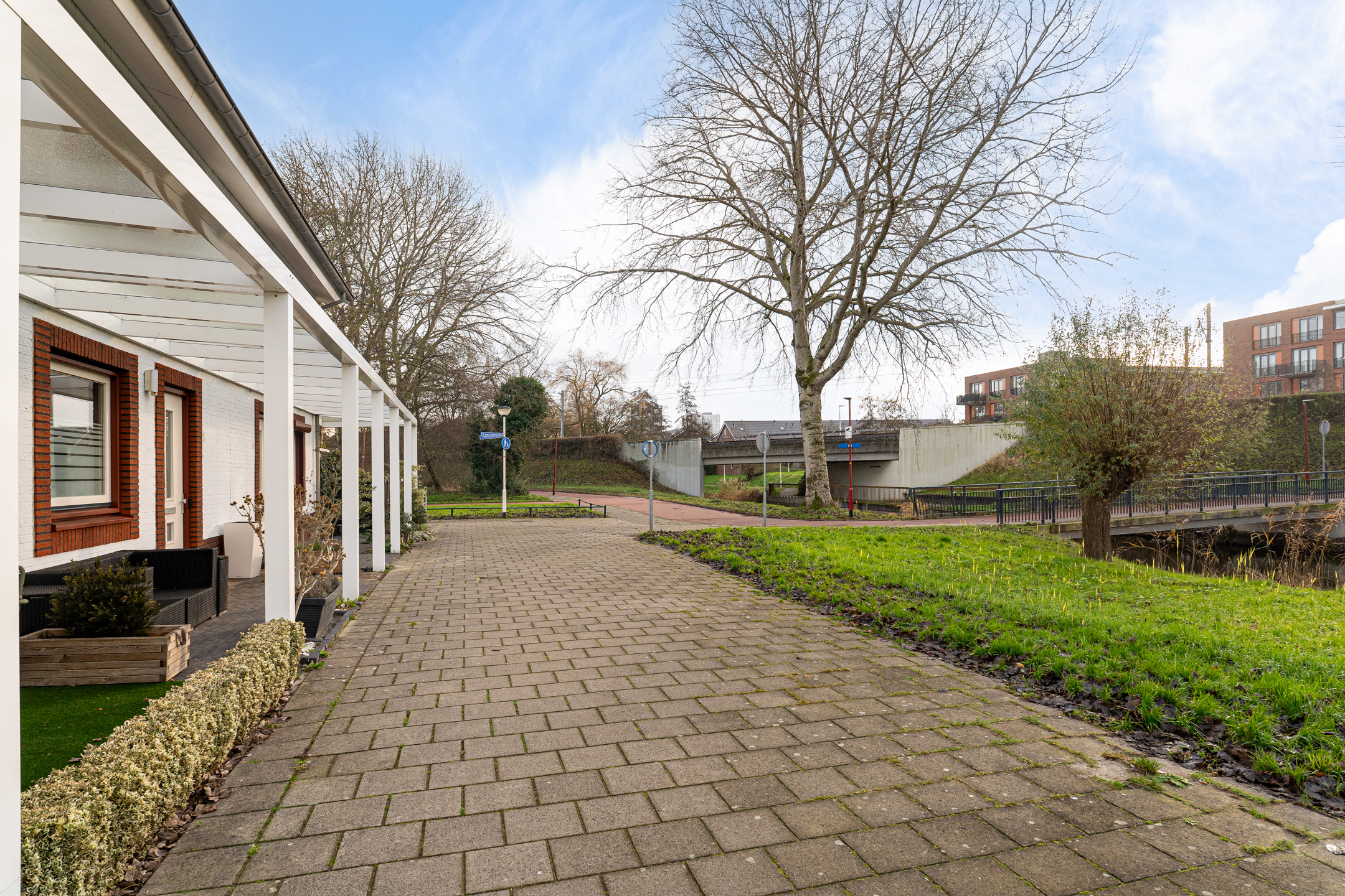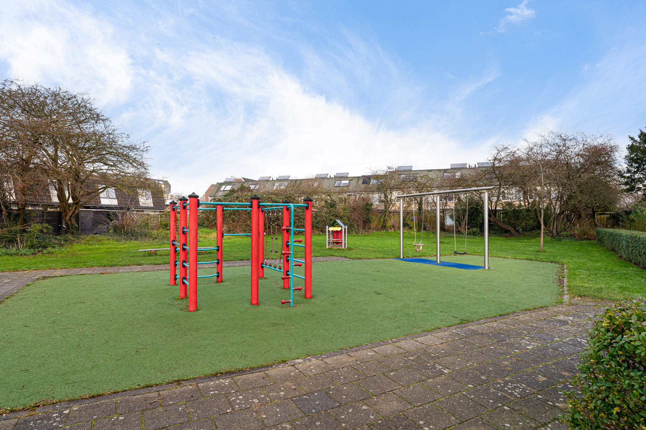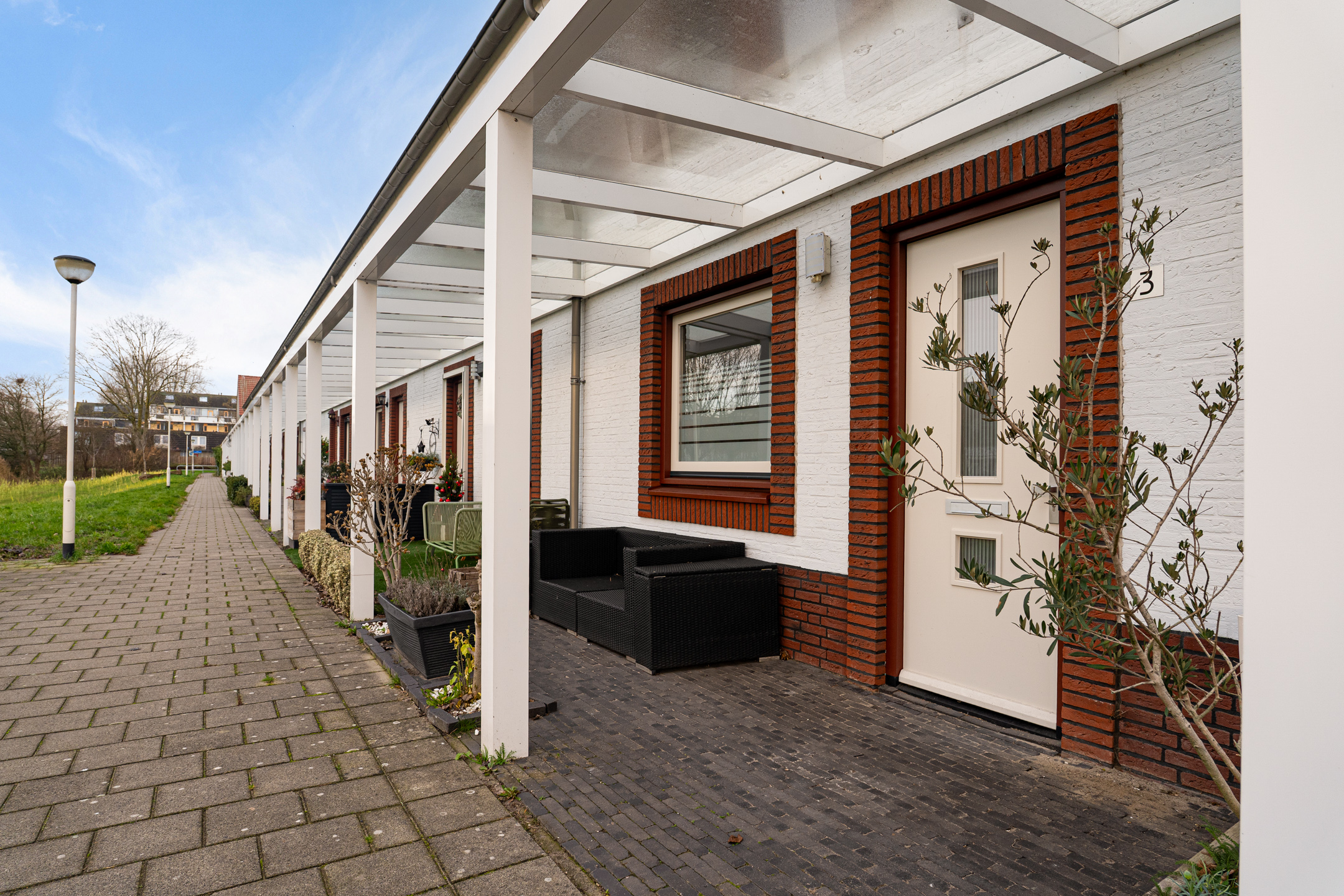De volledig betegelde achtertuin is onderhoudsvriendelijk aangelegd en beschikt over een achterom en een kunststof berging. Ondanks de noordoostelijke ligging zorgt de gunstige dakhelling voor een prettige zonligging. Aan de voorzijde bevindt zich een verzorgd voortuintje met overdekte entree.