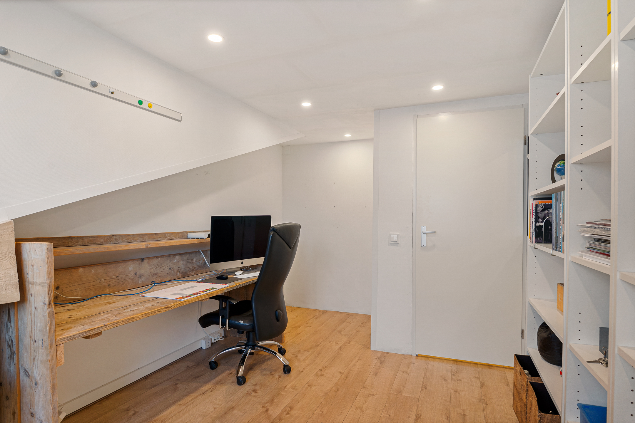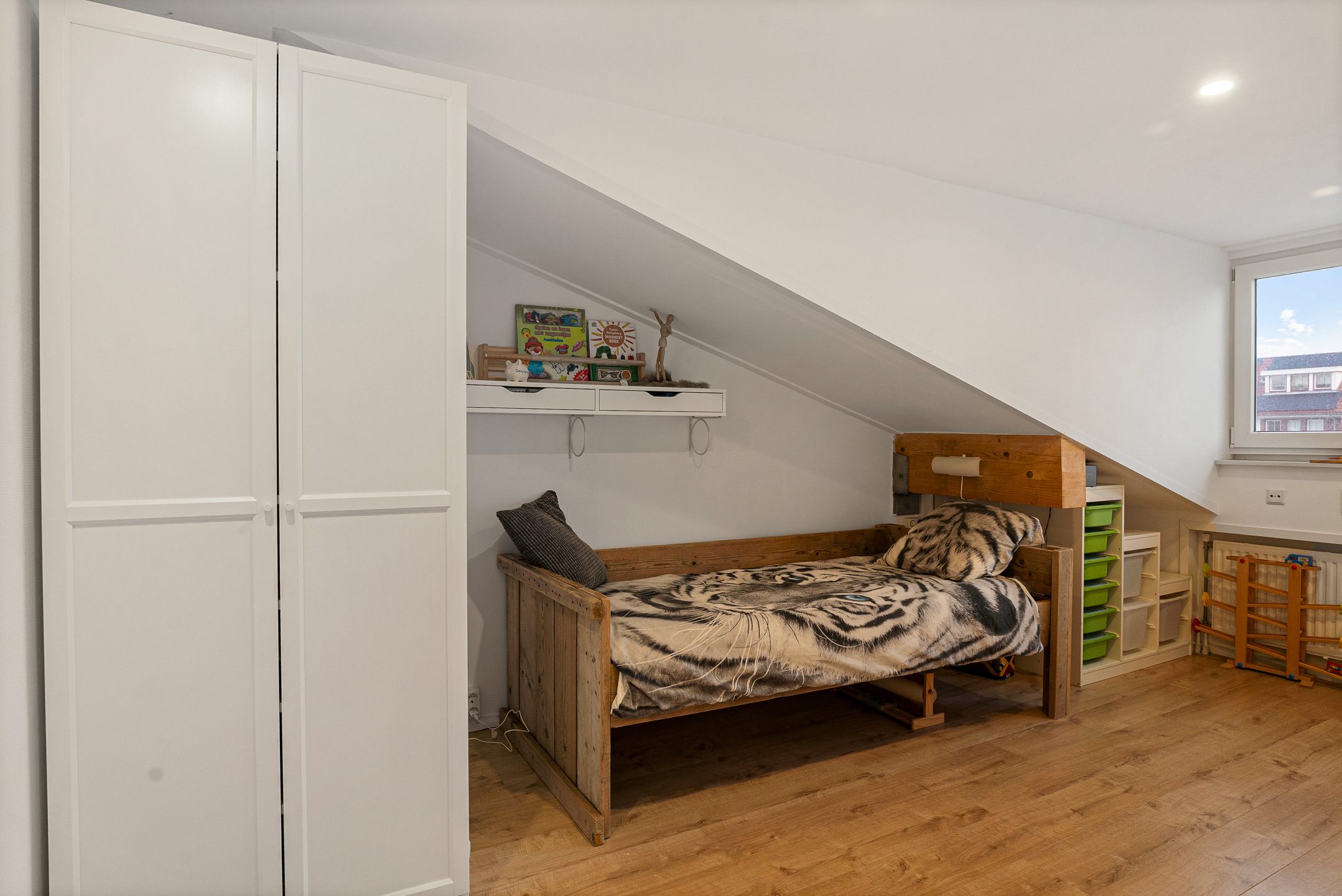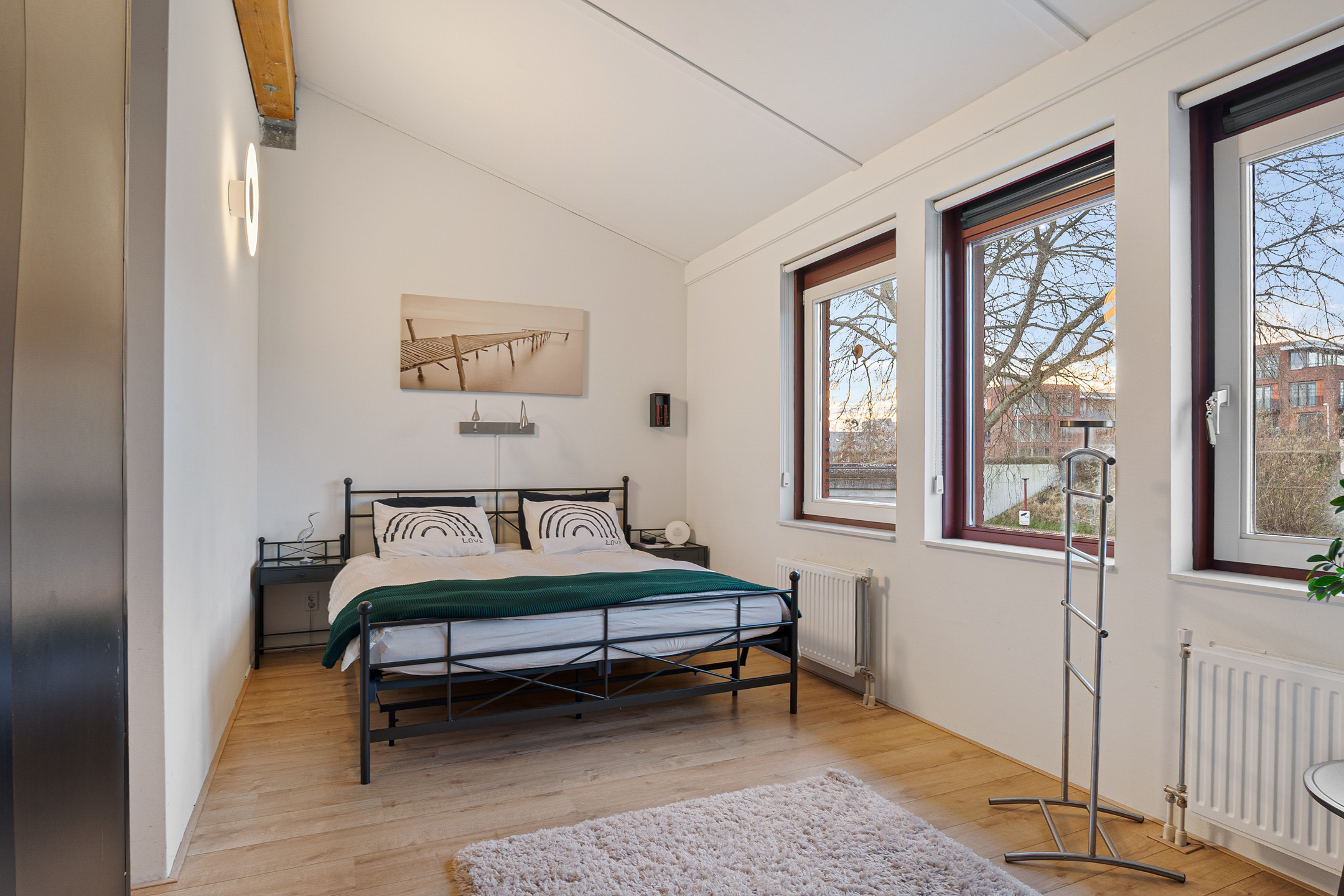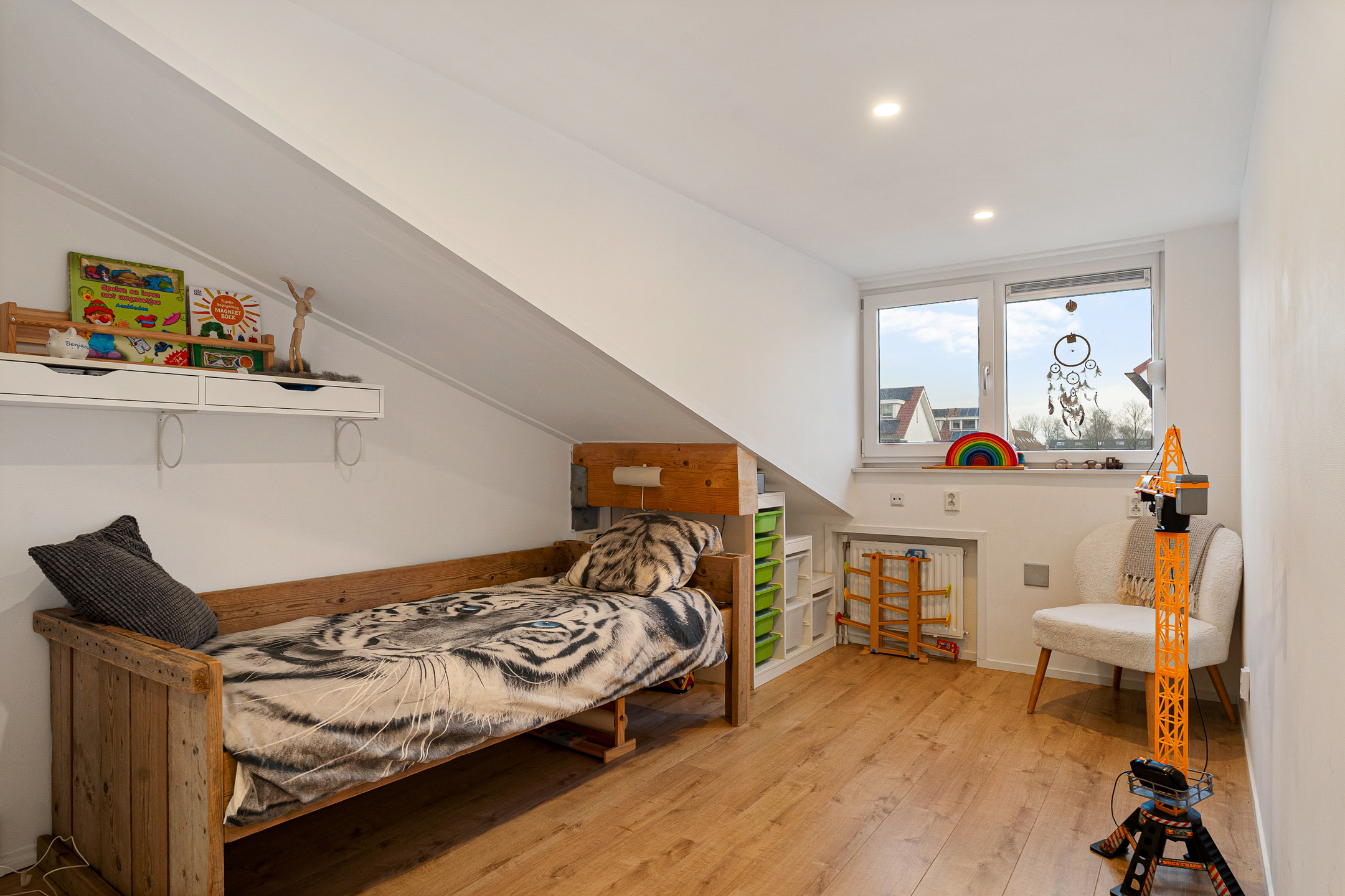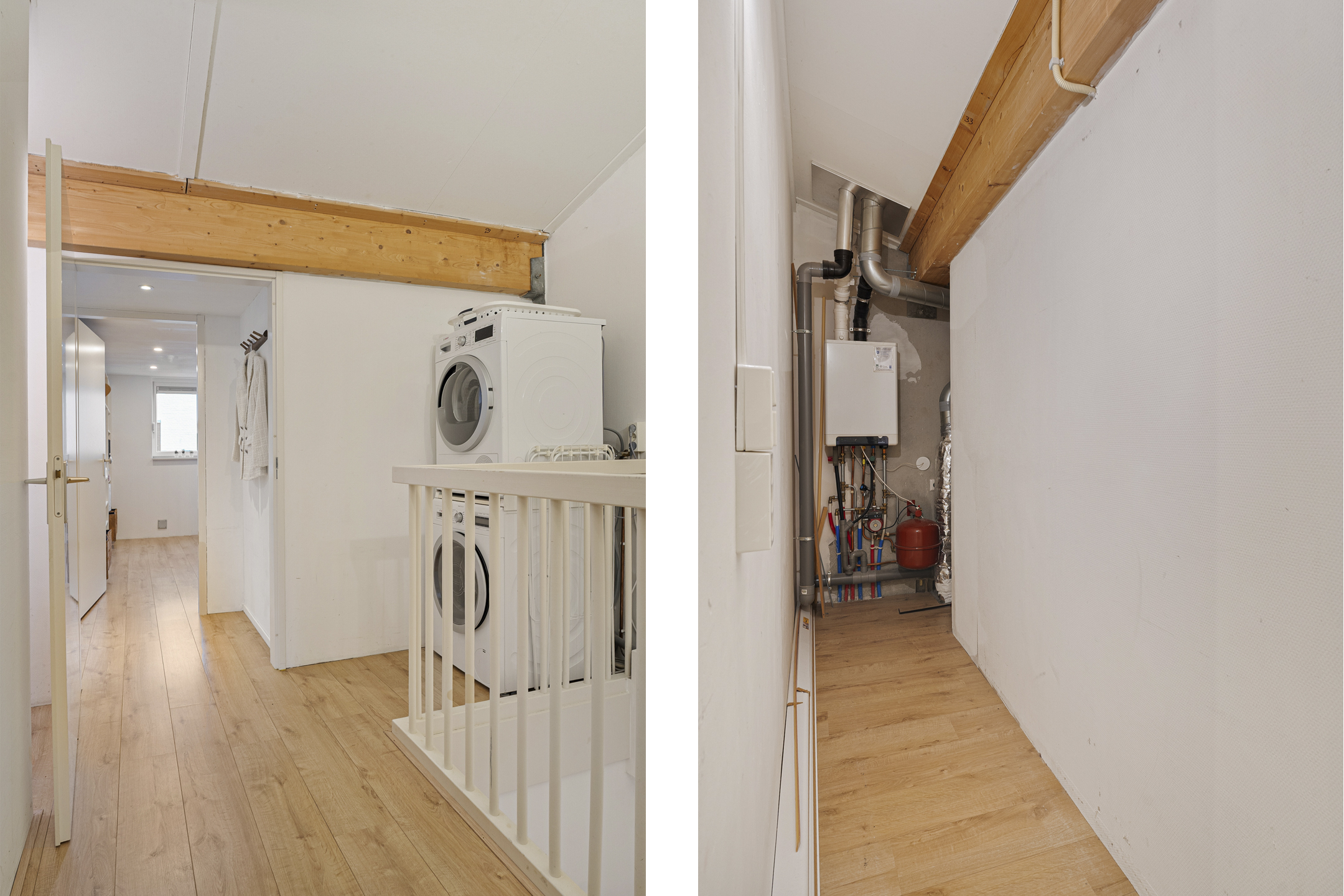 Op de eerste verdieping bevindt zich een ruime overloop met de cv-opstelling. Ook hier zijn aansluitingen en afvoer aanwezig voor wasmachine en droger, wat extra flexibiliteit biedt in het gebruik van de woning. Verder zijn er drie slaapkamers gesitueerd: een zeer royale slaapkamer aan de voorzijde met inloopkast en twee slaapkamers aan de achterzijde. De kunststof dakkapel aan de achterzijde (2021) heeft gezorgd voor een extra kamer en een vergroting van het totale woonoppervlak, evenals extra licht en comfort.