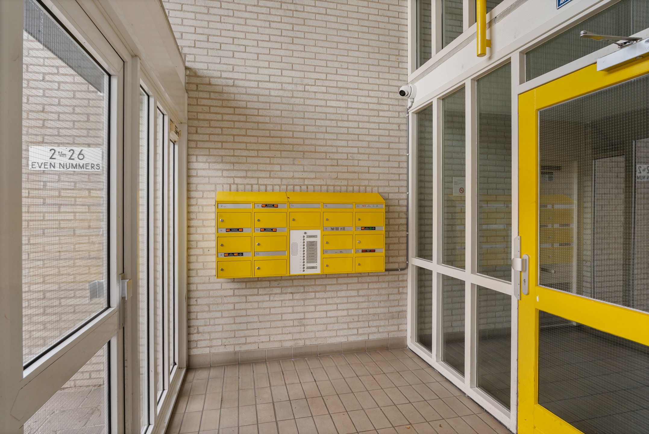 Afgesloten centrale entree op de begane grond met bellentableau en brievenbussen. Ruime en lichte hal met trappenhuis en toegang tot de inpandige (fietsen)bergingen. Het complex wordt netjes onderhouden en beschikt over een actieve VvE.