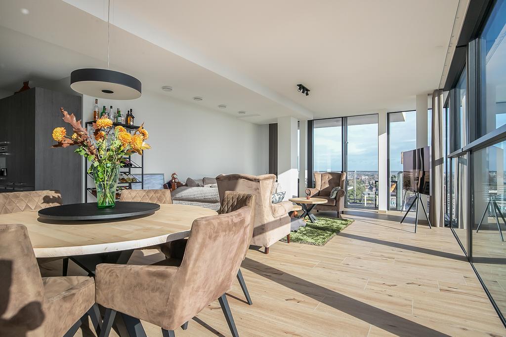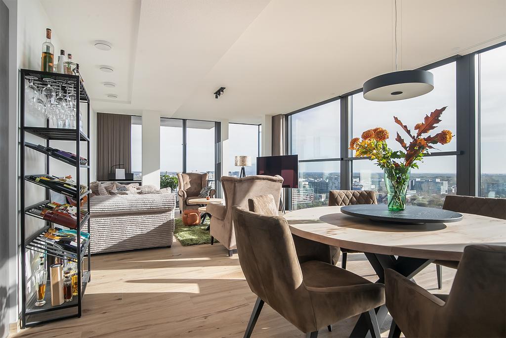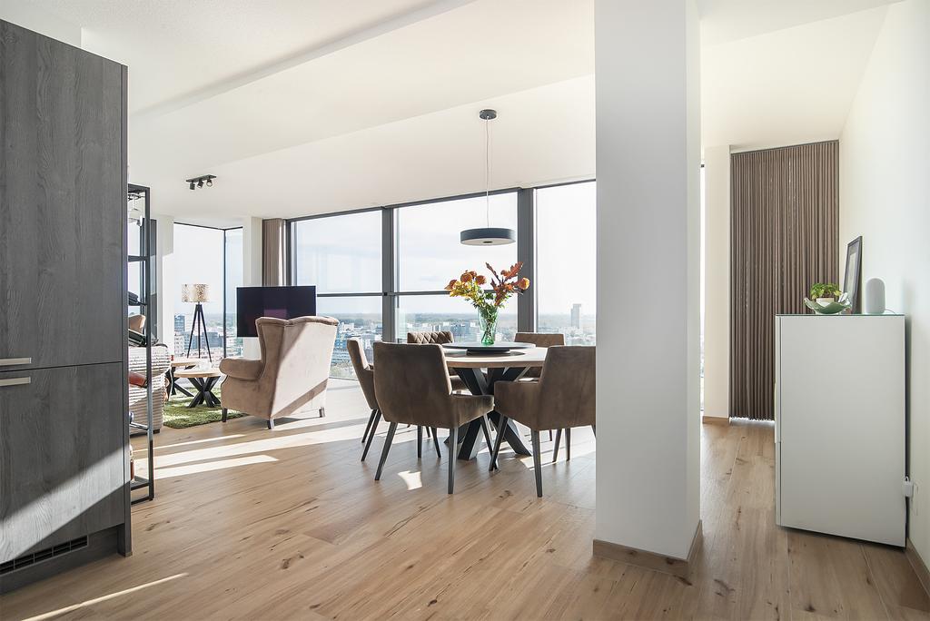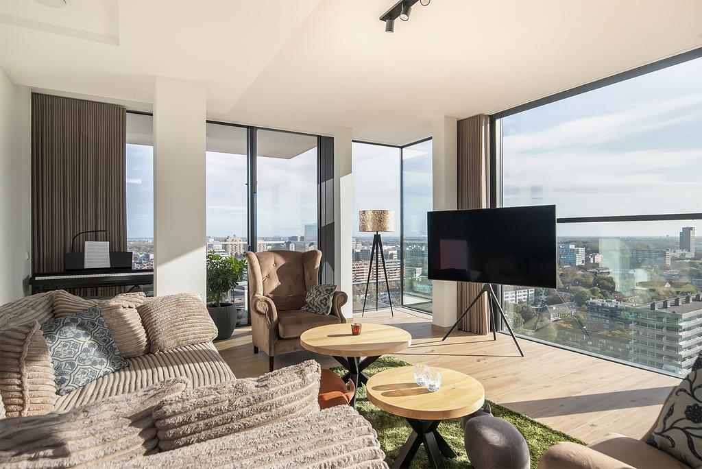 In één woord “WAUW’! Een fantastisch mooi 3-kamerappartement op 16 hoog met een panorama view over Leiden, Delft, Rotterdam en het Westland. Vanuit het ruime balkon heb je een prachtig uitzicht over Den Haag en Scheveningen. Bij helder weer is zelfs een glimp van de zee te zien. Elke ochtend is vanaf de bank in de woonkamer de zonsopgang te bewonderen! Dit luxe appartement ligt in het duurzame complex ‘De Generaal’ en daarmee op loopafstand van het openbaar vervoer, winkelcentrum ‘De Bogaard’ en park ‘Steenvoorde’. Wil je de gehele woning zien en de sfeer proeven? Bekijk dan de woningvideo en loop digitaal door de woning.