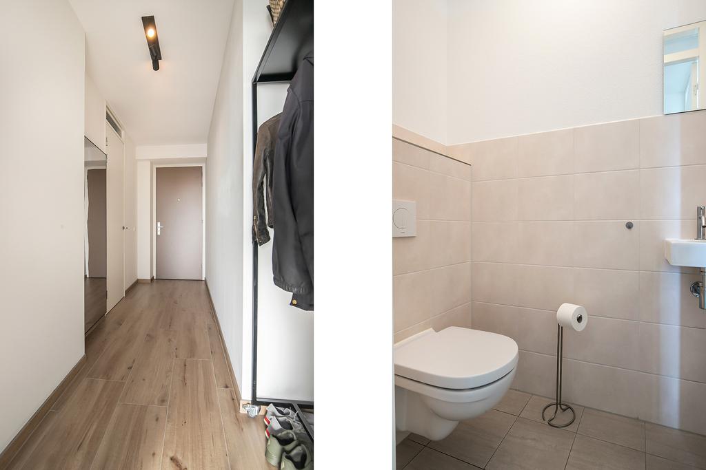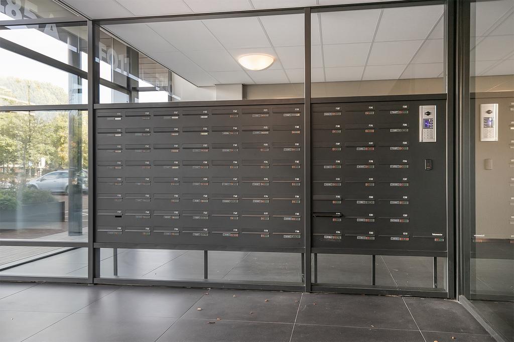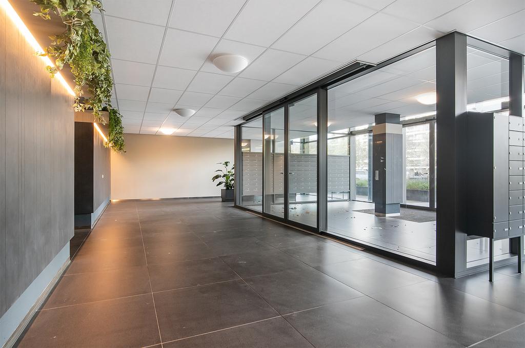 Afgesloten entree met intercom, brievenbussen en bellentableau. Toegang tot de kelder, de liften en het trappenhuis.
