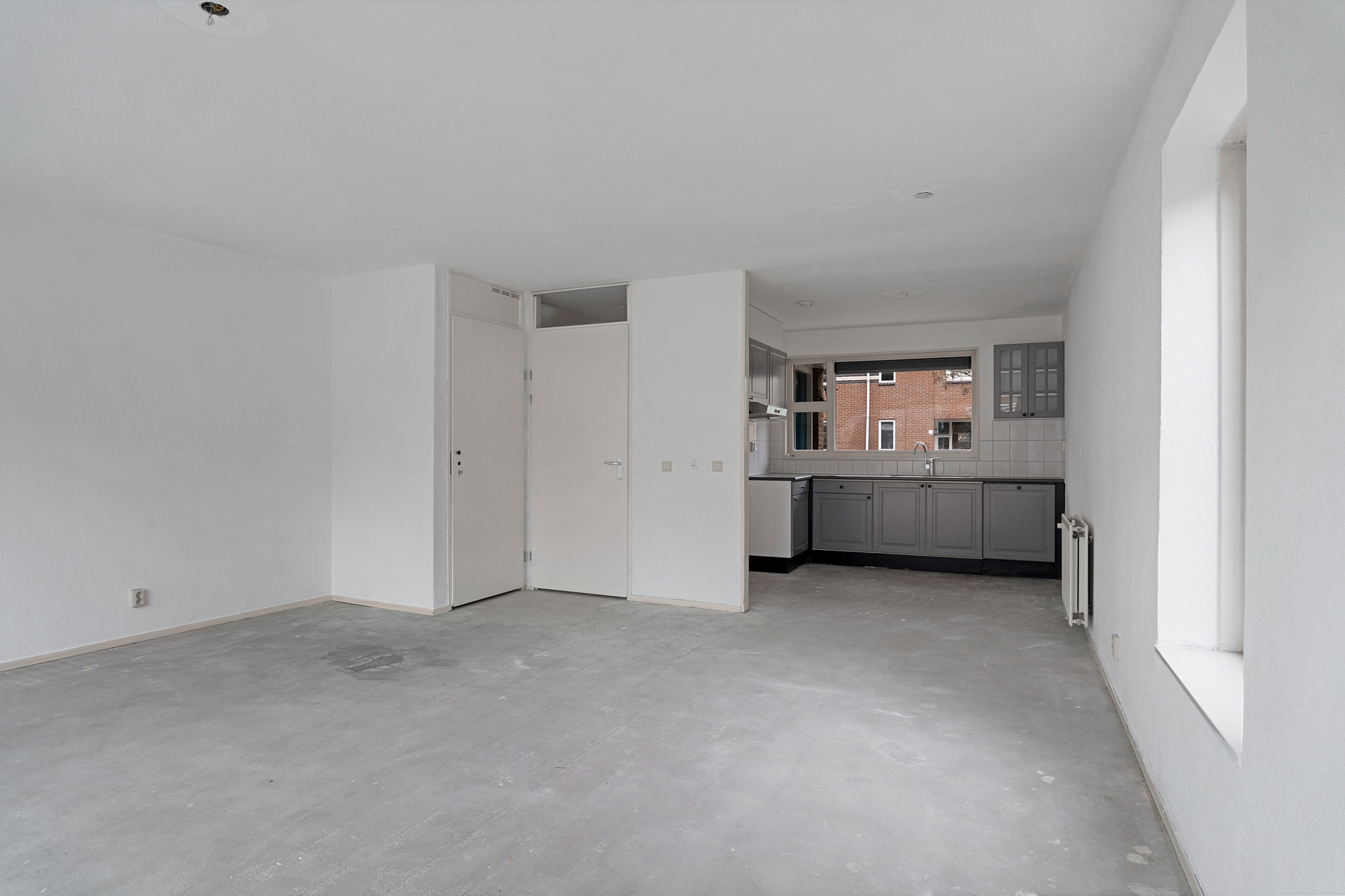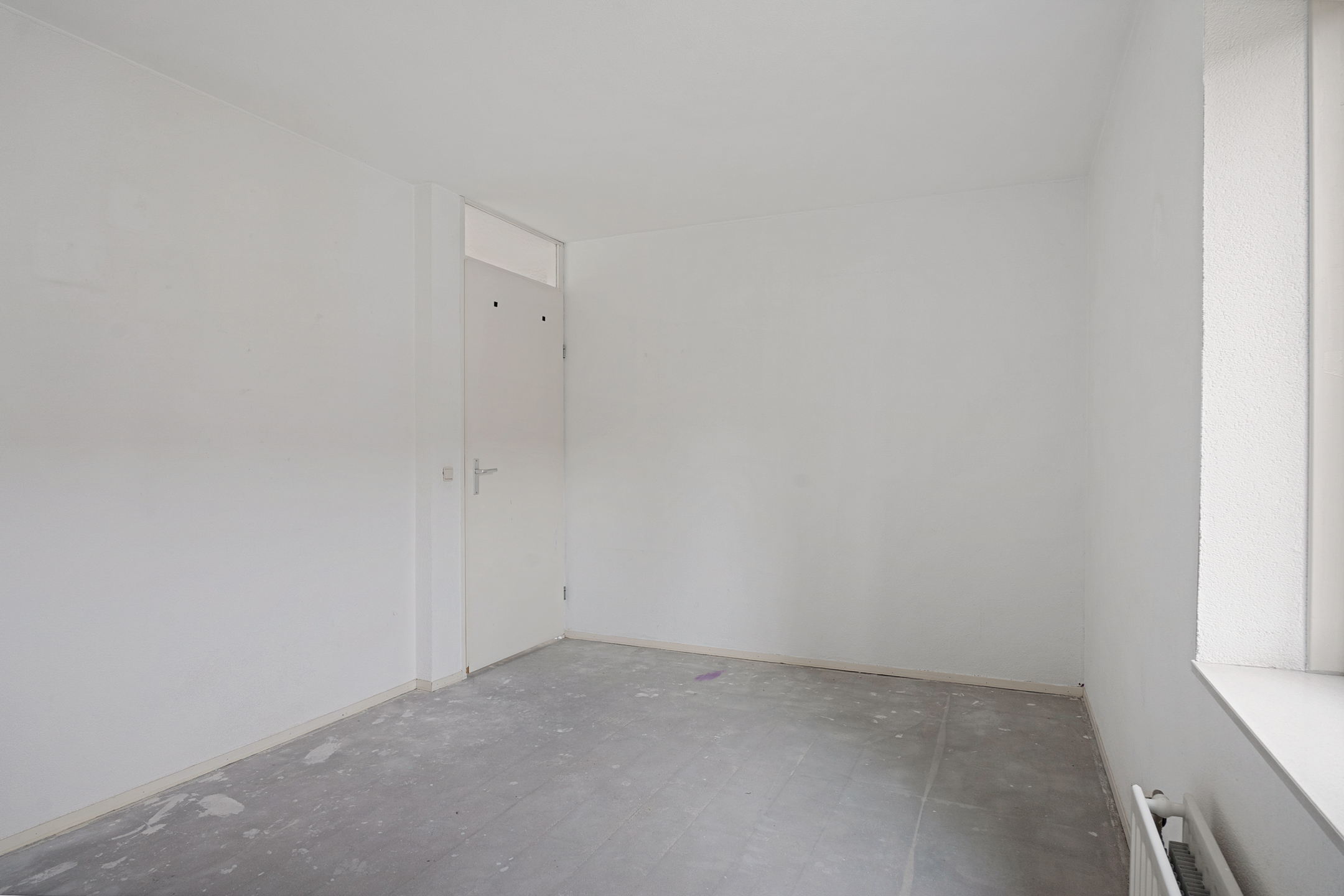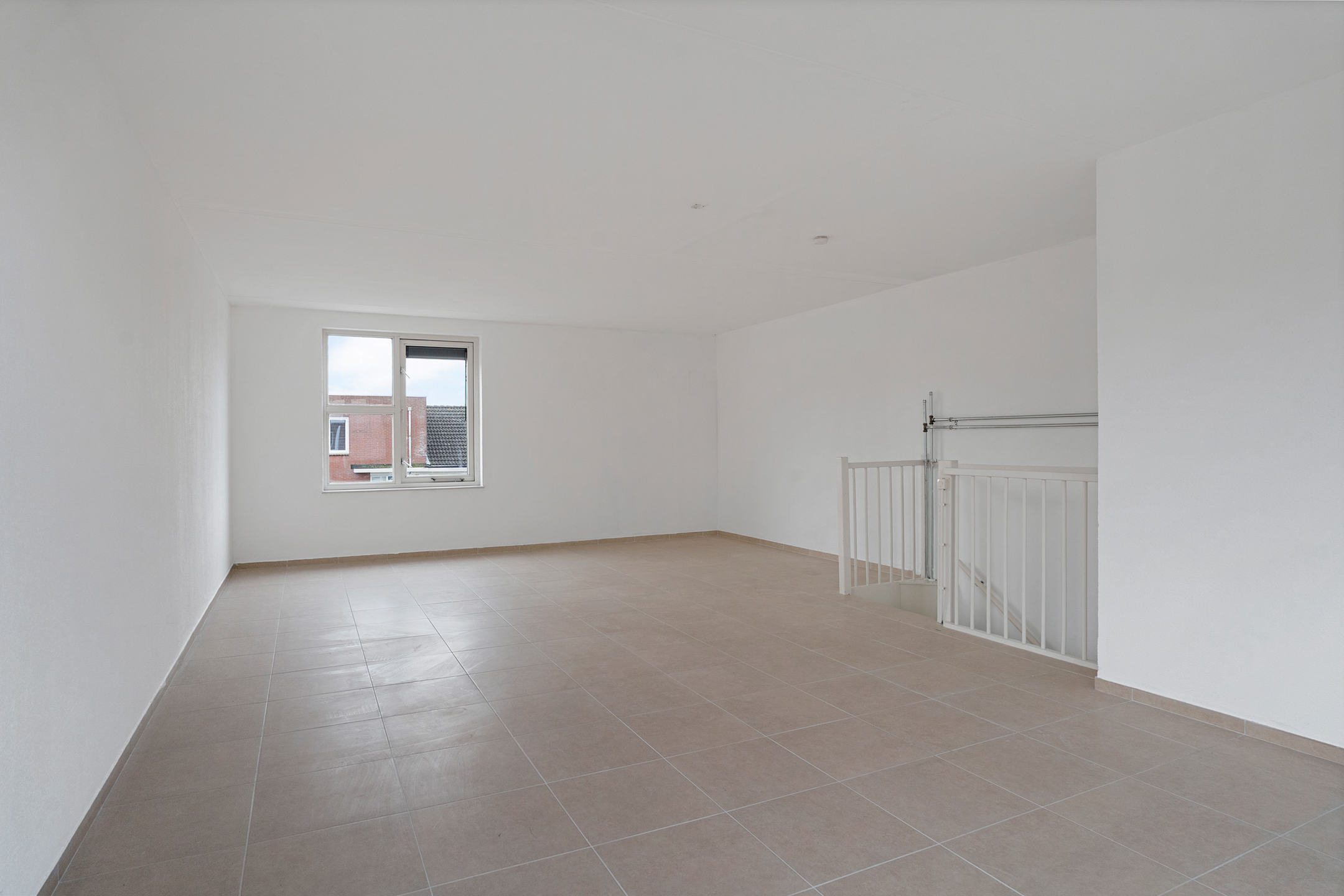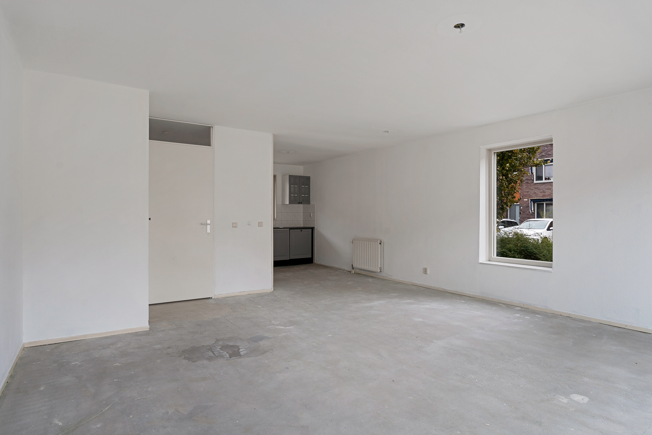 Via de nette hal met meterkast, trapopgang en toilet bereik je de woonkamer. De grote raampartijen zorgen voor een prettige lichtinval en geven de ruimte een open uitstraling. De woonkamer is overzichtelijk ingedeeld en biedt voldoende mogelijkheden voor een comfortabele zit- en eethoek.