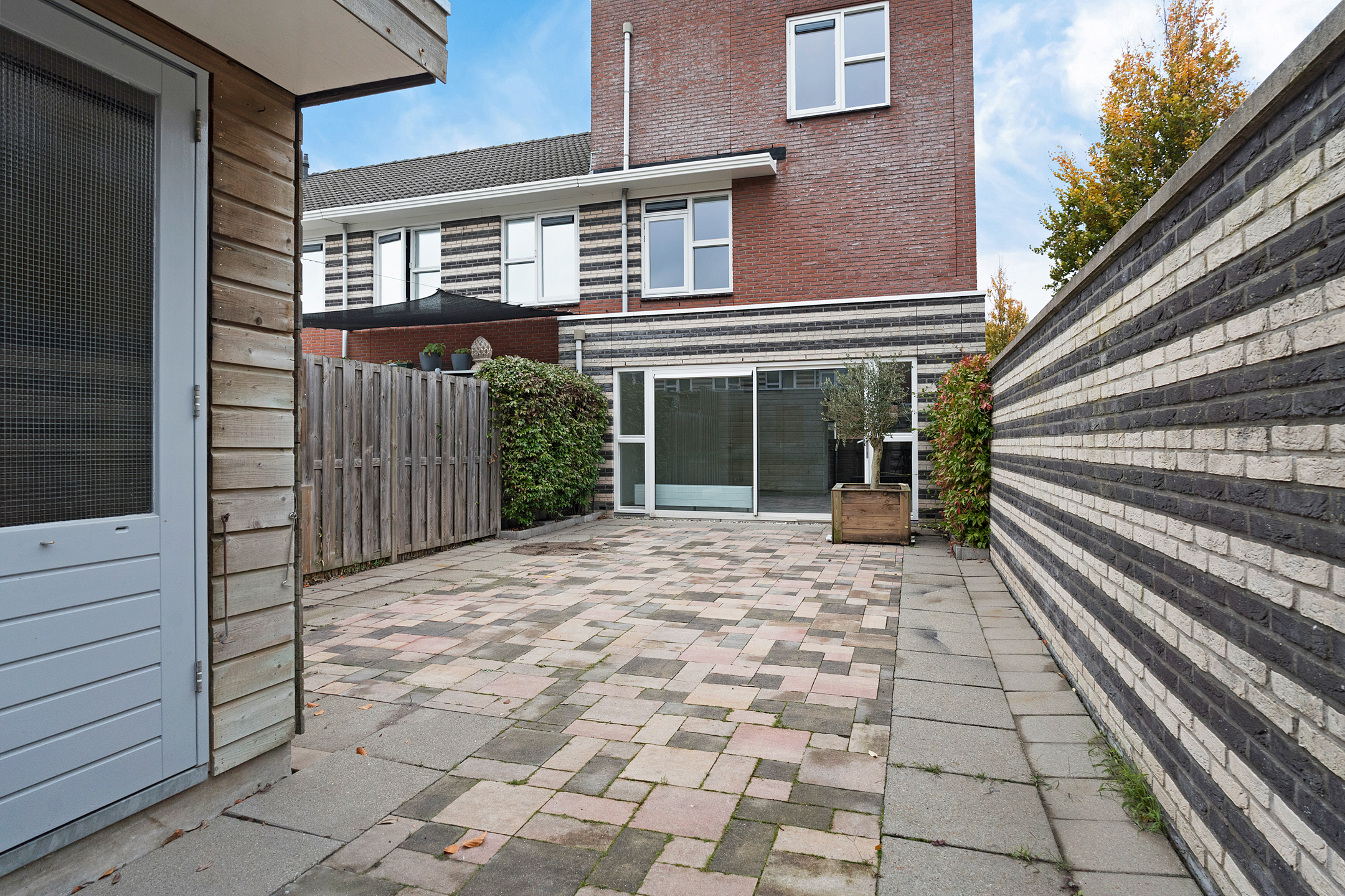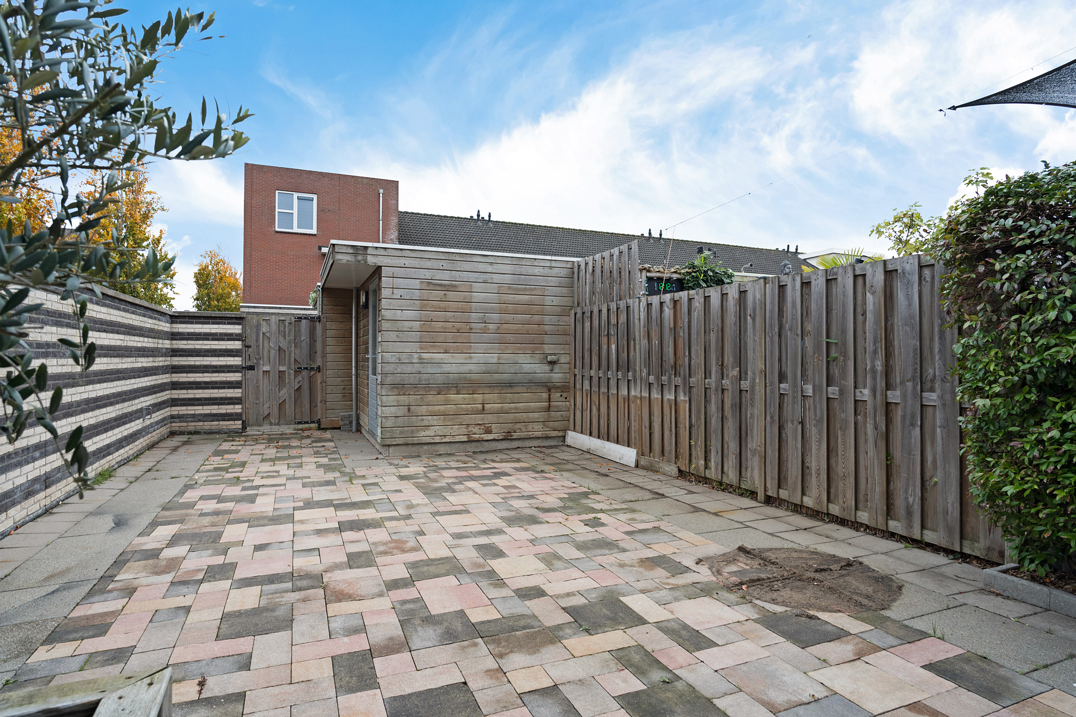 De achtertuin heeft een gunstige ligging op het zuiden, waardoor je de hele dag zon kunt meepakken. De tuin is grotendeels betegeld en daardoor onderhoudsvriendelijk. Achterin staat een praktische berging met elektra, ideaal voor het stallen van fietsen, tuingereedschap of als kleine werkplek. Dankzij de vrije ligging aan de achterzijde geniet je van veel privacy.