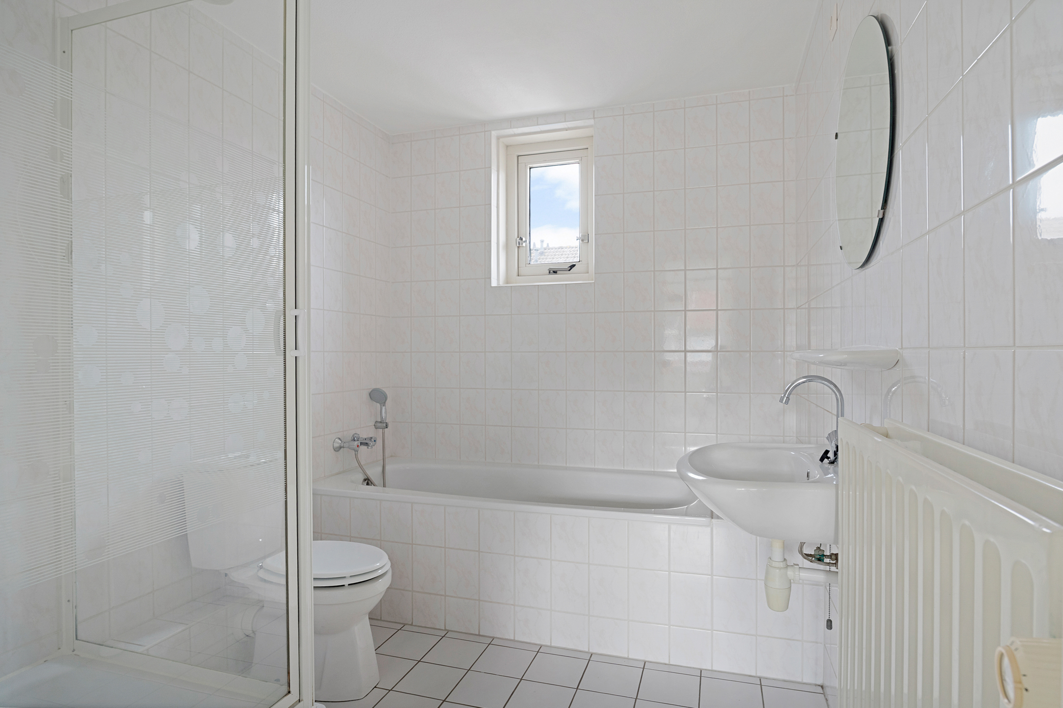 Op de eerste verdieping liggen drie slaapkamers: één aan de voorzijde en twee aan de achterzijde. Alle kamers zijn van goed formaat en geschikt als slaap-, kinder- of werkkamer. De badkamer is compleet uitgerust met een ligbad, aparte douche, wastafelmeubel en een tweede toilet.
