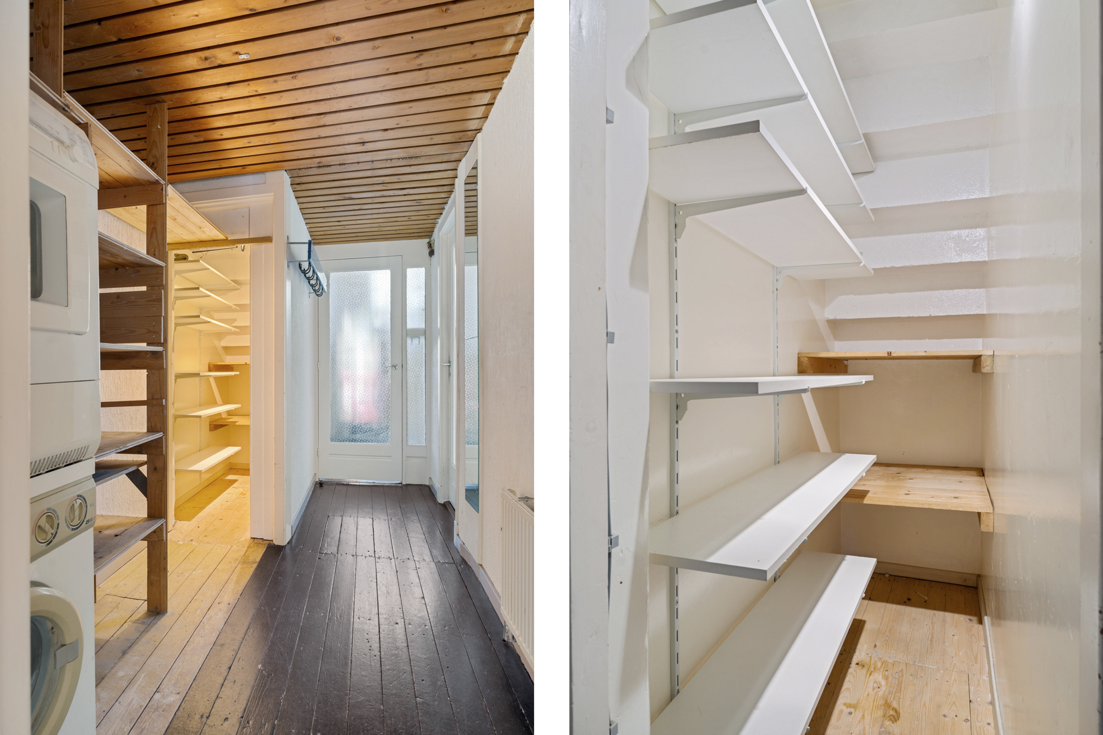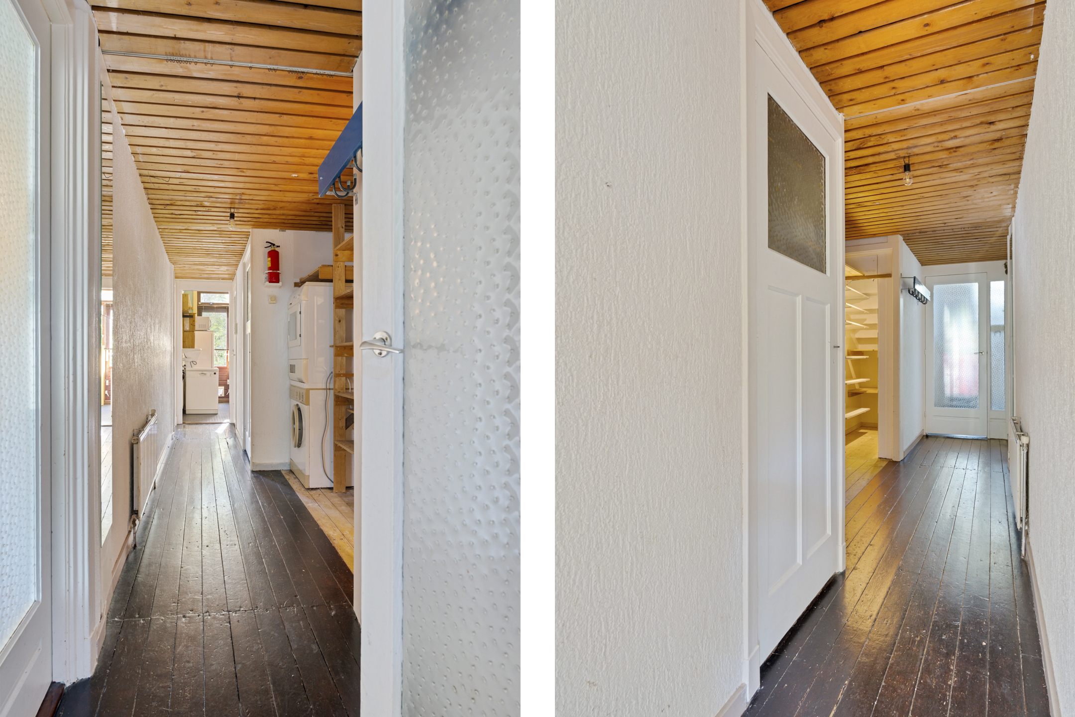 In de hal vind je het separate toilet, de aansluiting voor de wasmachine en extra bergruimte. De woning is praktisch ingedeeld en biedt volop mogelijkheden om het naar je eigen smaak in te richten.