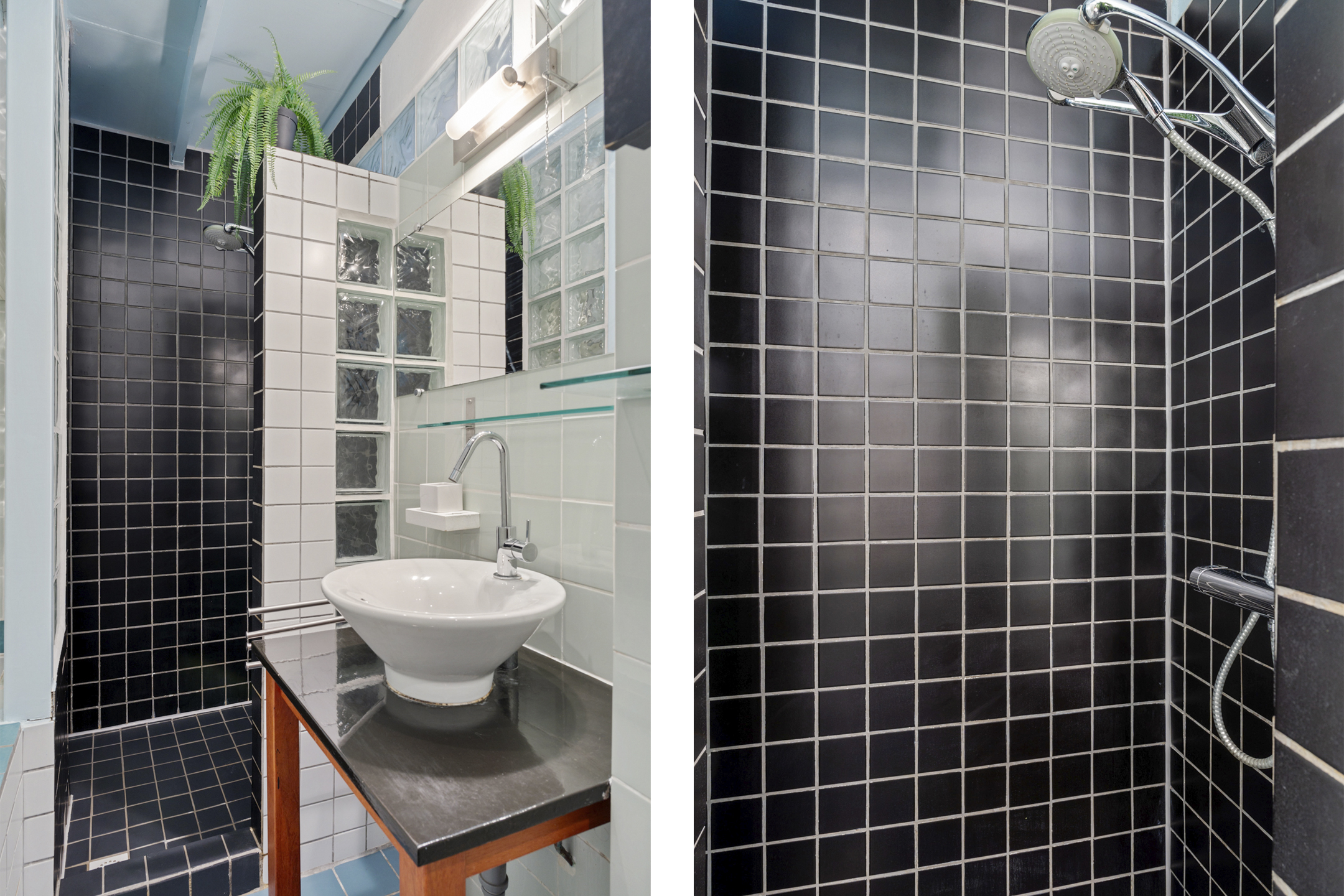 Aan de voorzijde bevindt zich de royale slaapkamer, met grote raampartijen die voor veel natuurlijk licht zorgen. Vanuit deze kamer bereik je de volledig betegelde badkamer, uitgerust met een ligbad, inloopdouche en een wastafelmeubel.