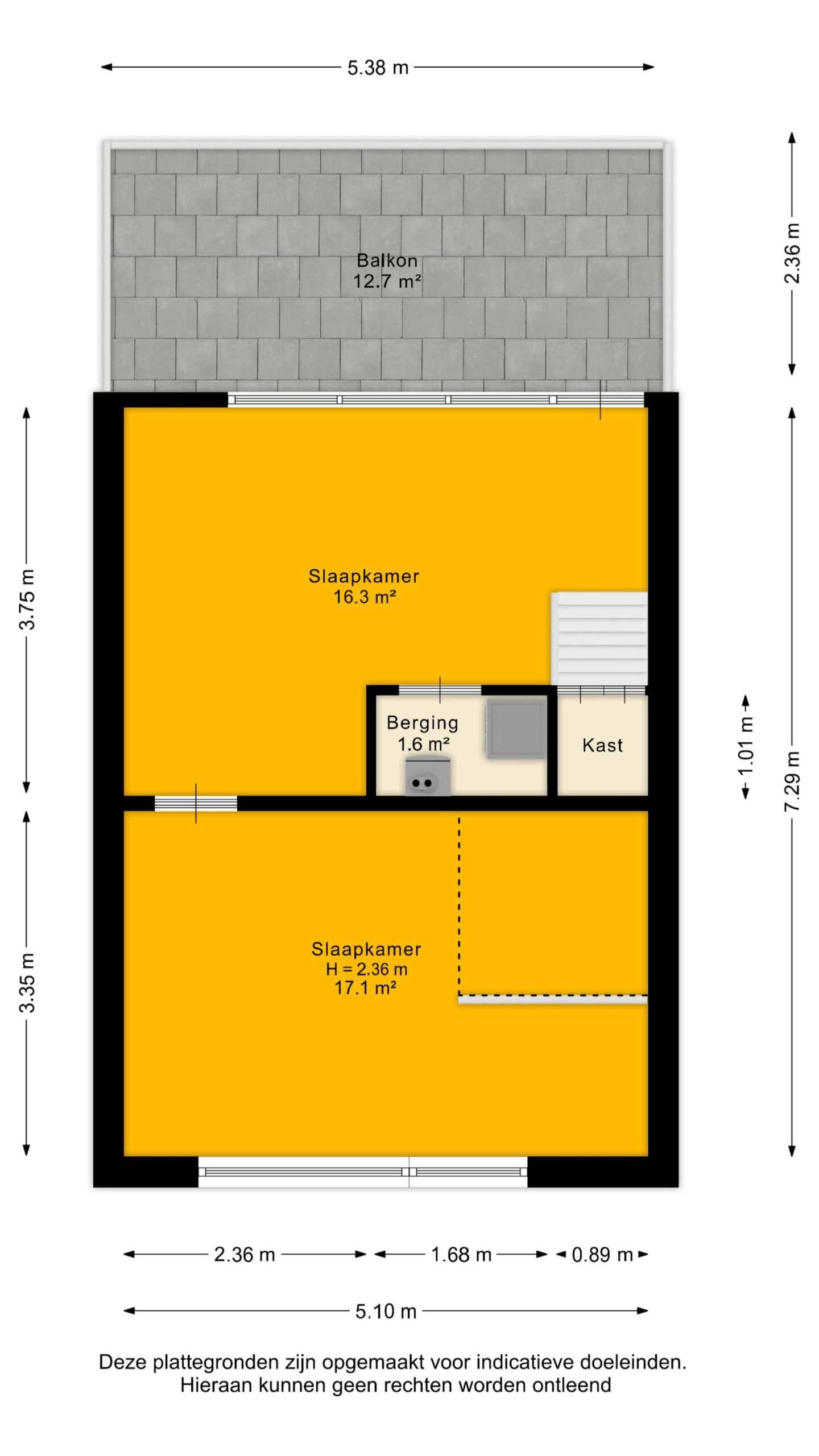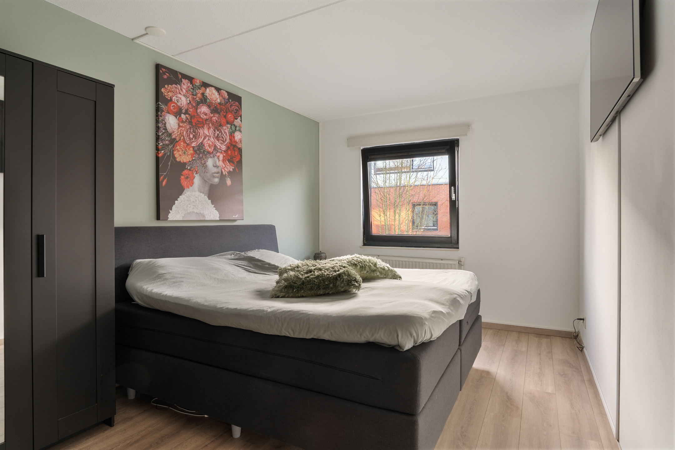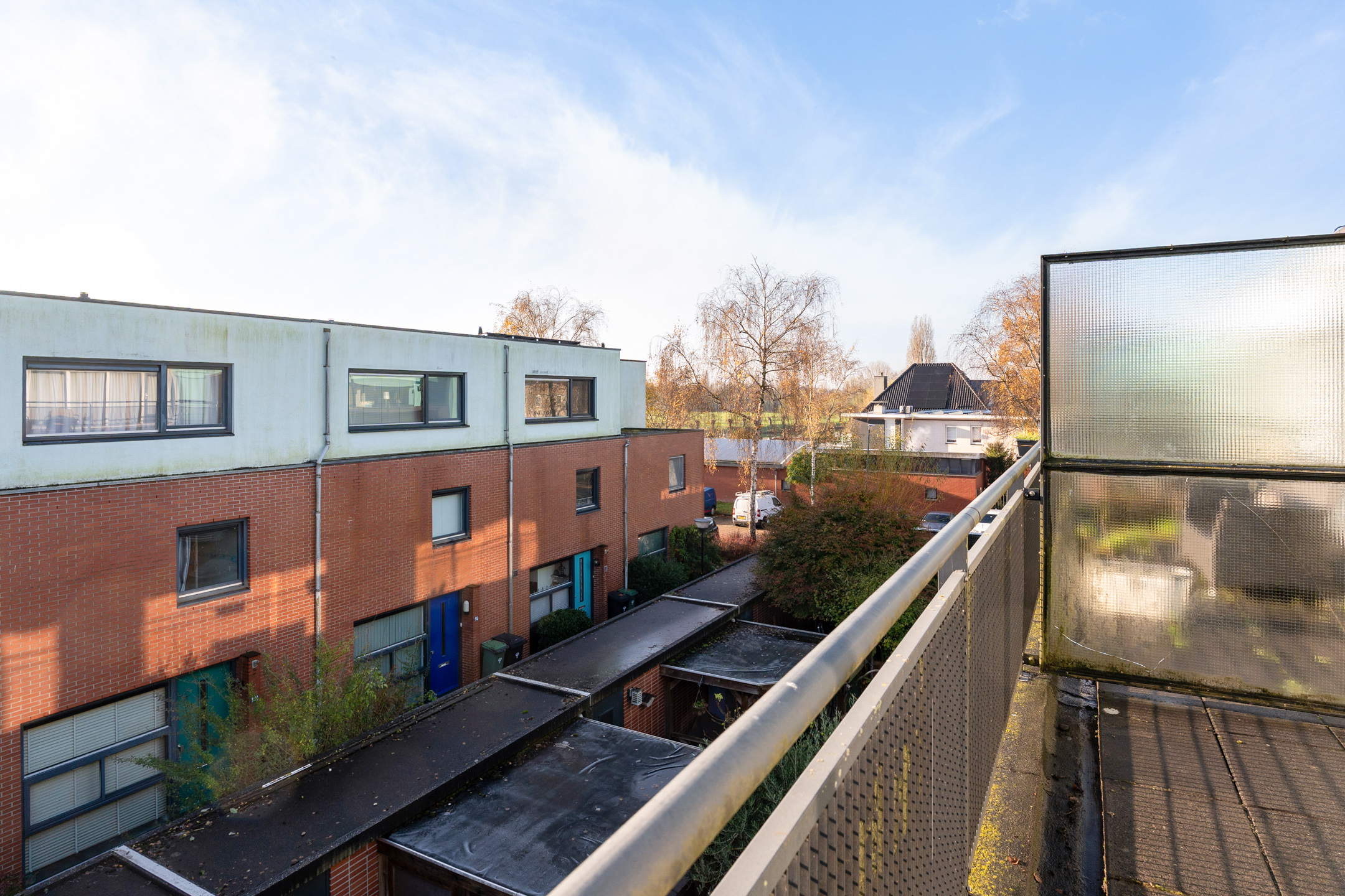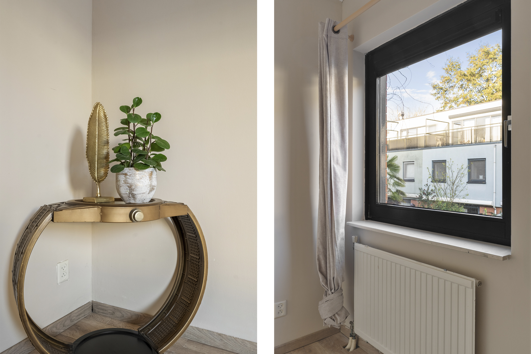 De tweede verdieping is een volwaardige woonlaag met twee ruime slaapkamers. De slaapkamer aan de achterzijde beschikt over een zonnig balkon met uitzicht op de tuin. In de aangrenzende bergruimte bevinden zich de cv-ketel en de aansluitingen voor wasmachine en droger.