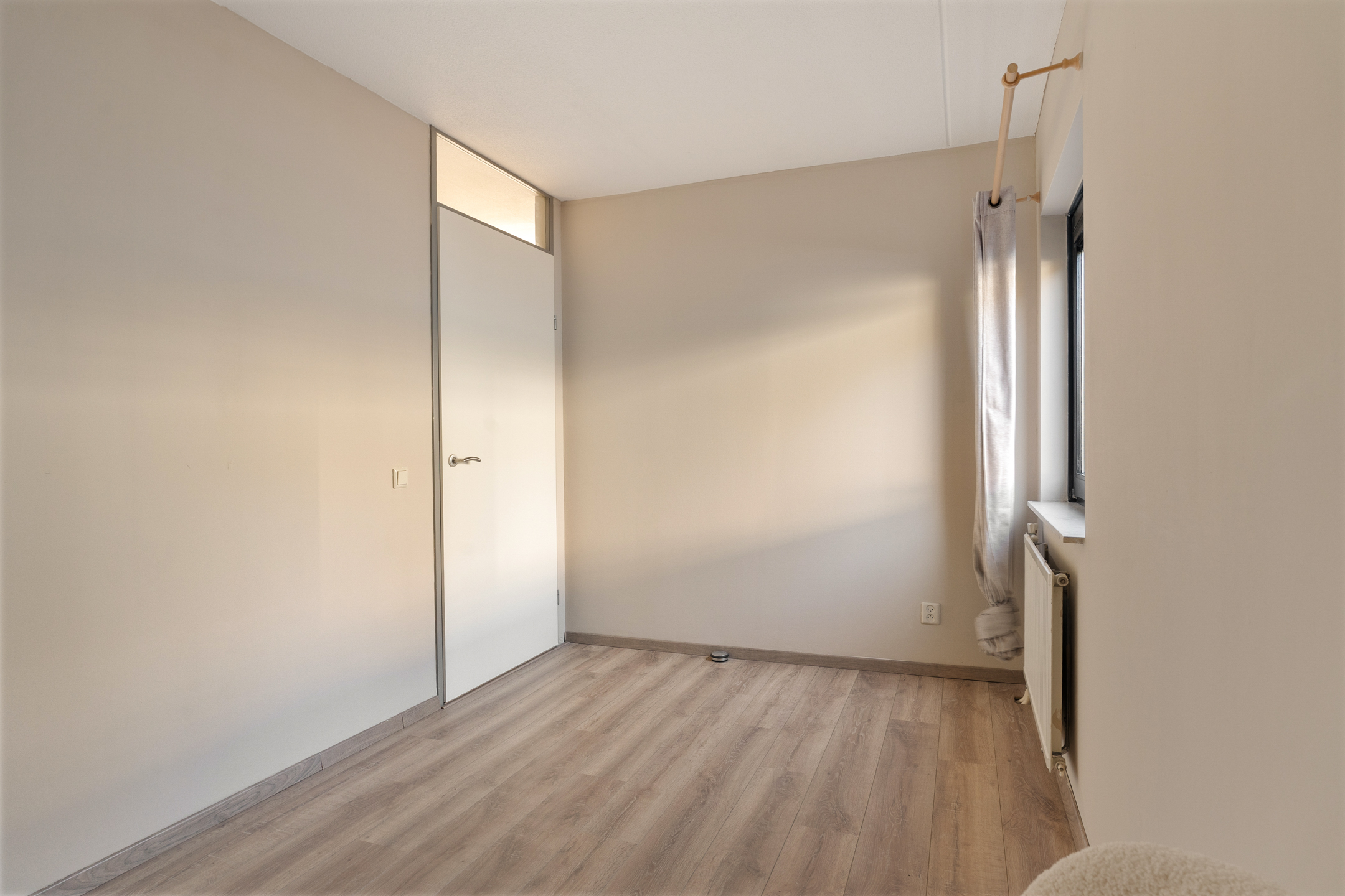 De derde slaapkamer ligt aan de voorzijde en is aangenaam licht dankzij het grote raam.
