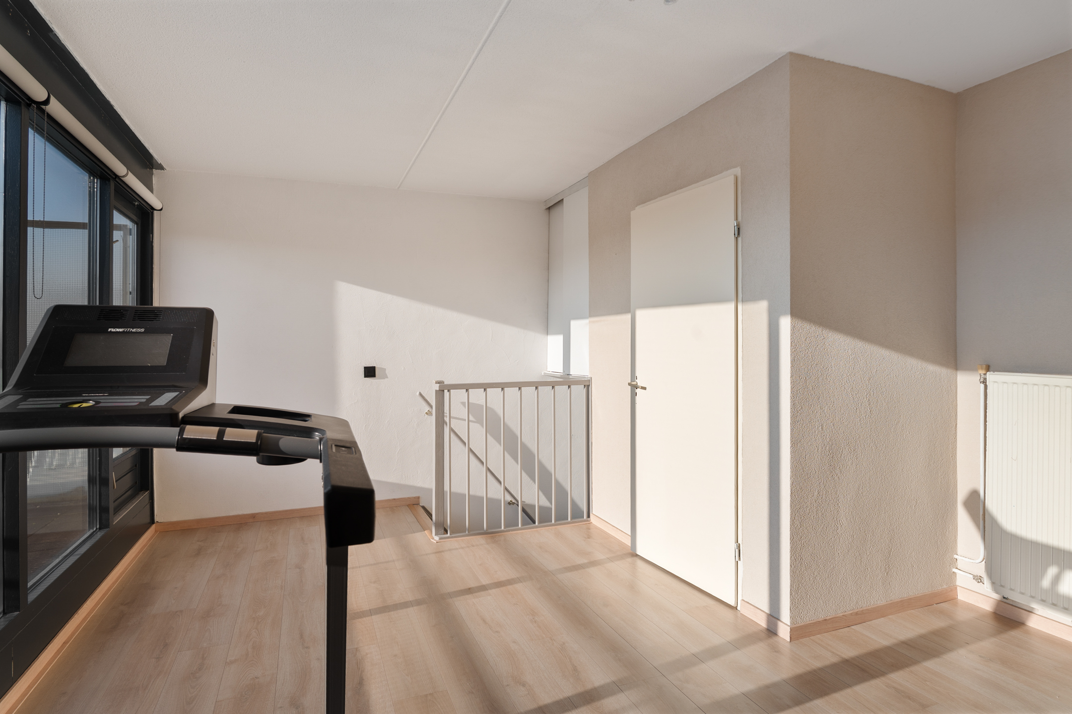De overloop verbindt alle vertrekken en beschikt over een vaste kast voor extra bergruimte.